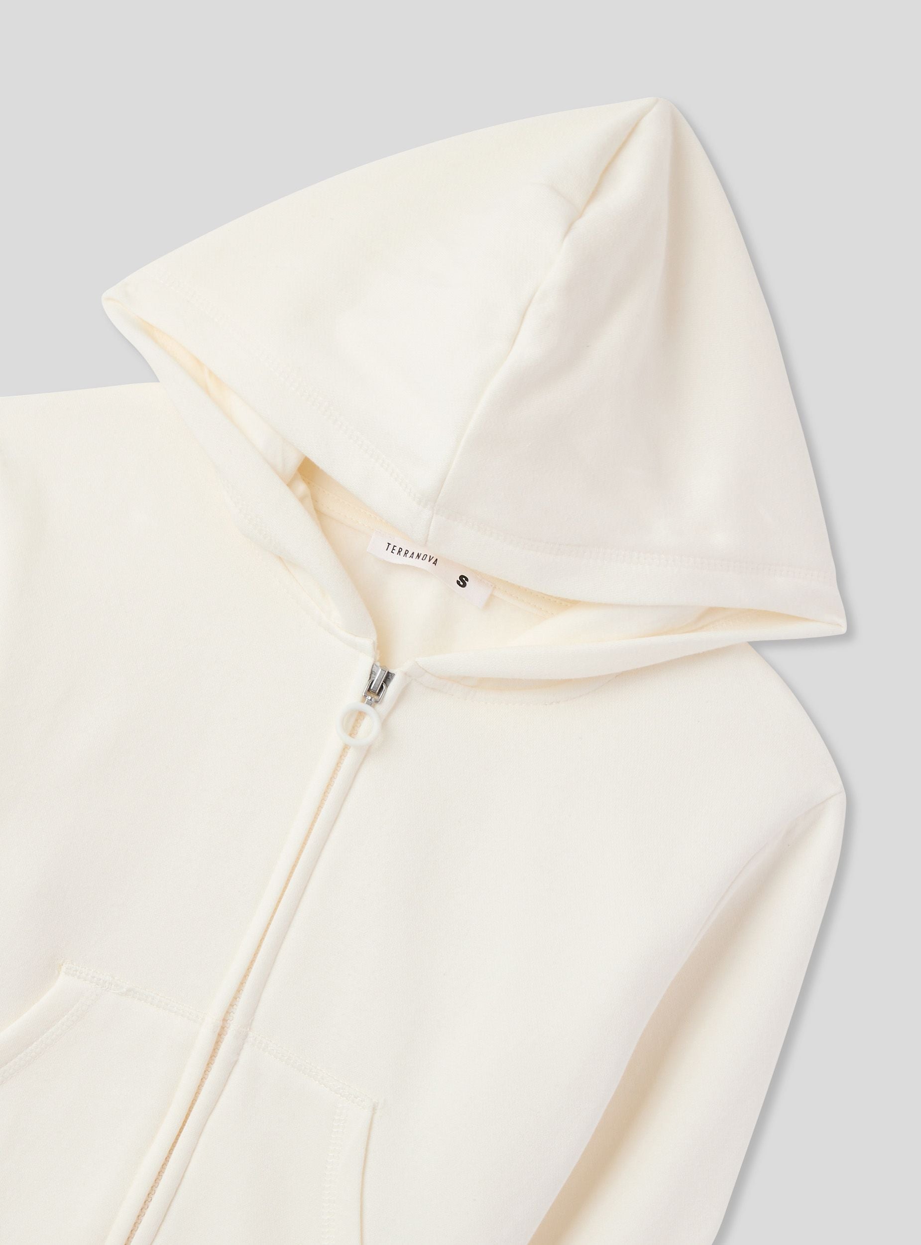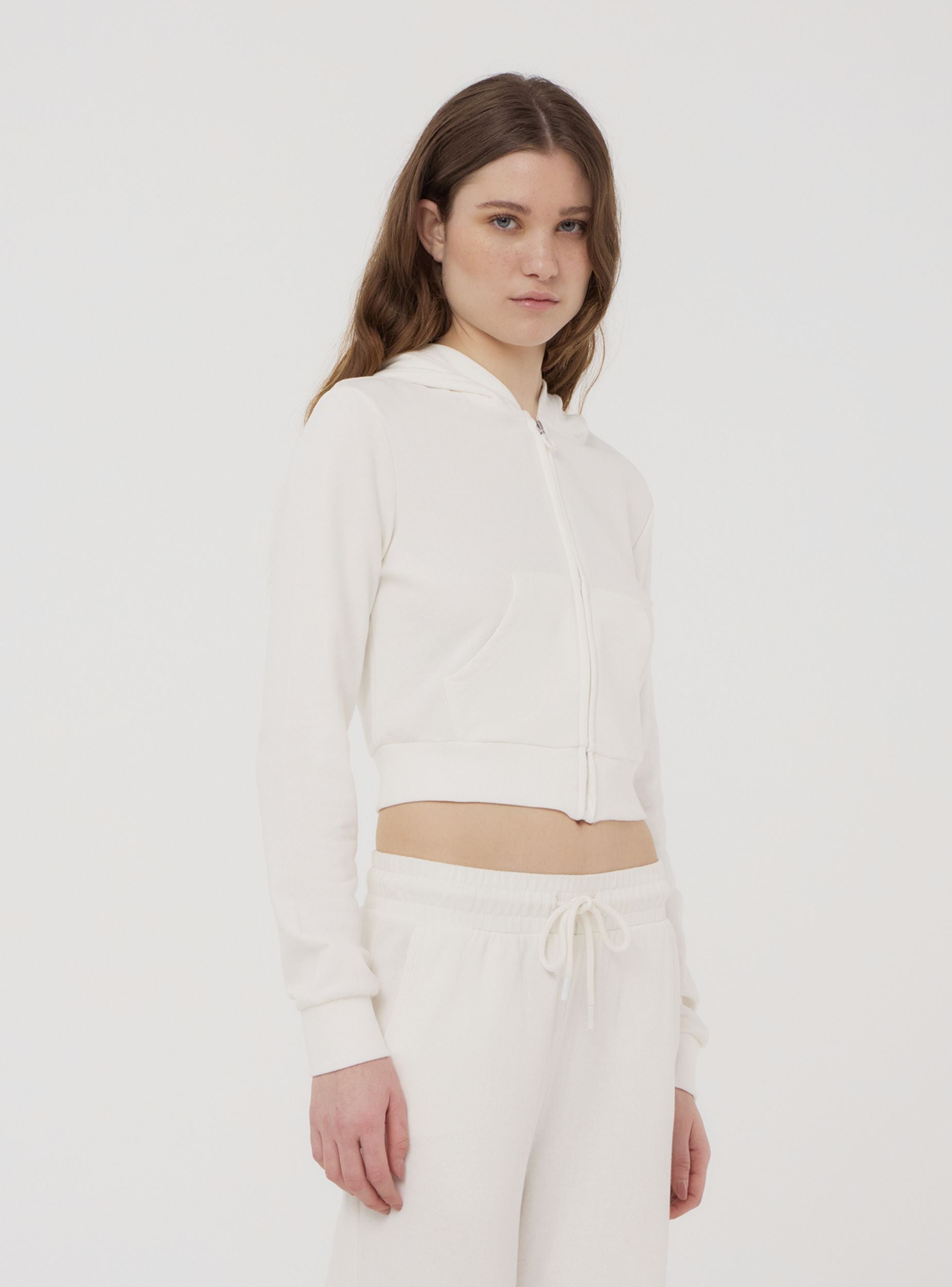 Felpa crop da donna ideale per un look casual e dinamico, perfetta per il tempo libero e le giornate di relax. Il design a tinta unita presenta maniche lunghe e una pratica chiusura con zip frontale, che garantisce comfort e praticità. Dotata di cappuccio per proteggerti nelle giornate più fresche e tasche a marsupio per riporre piccoli oggetti. Realizzata in tessuto leggero e confortevole, si adatta facilmente a qualsiasi outfit, da abbinare a jeans, leggings o pantaloni sportivi per un look moderno e funzionale.Dettagli