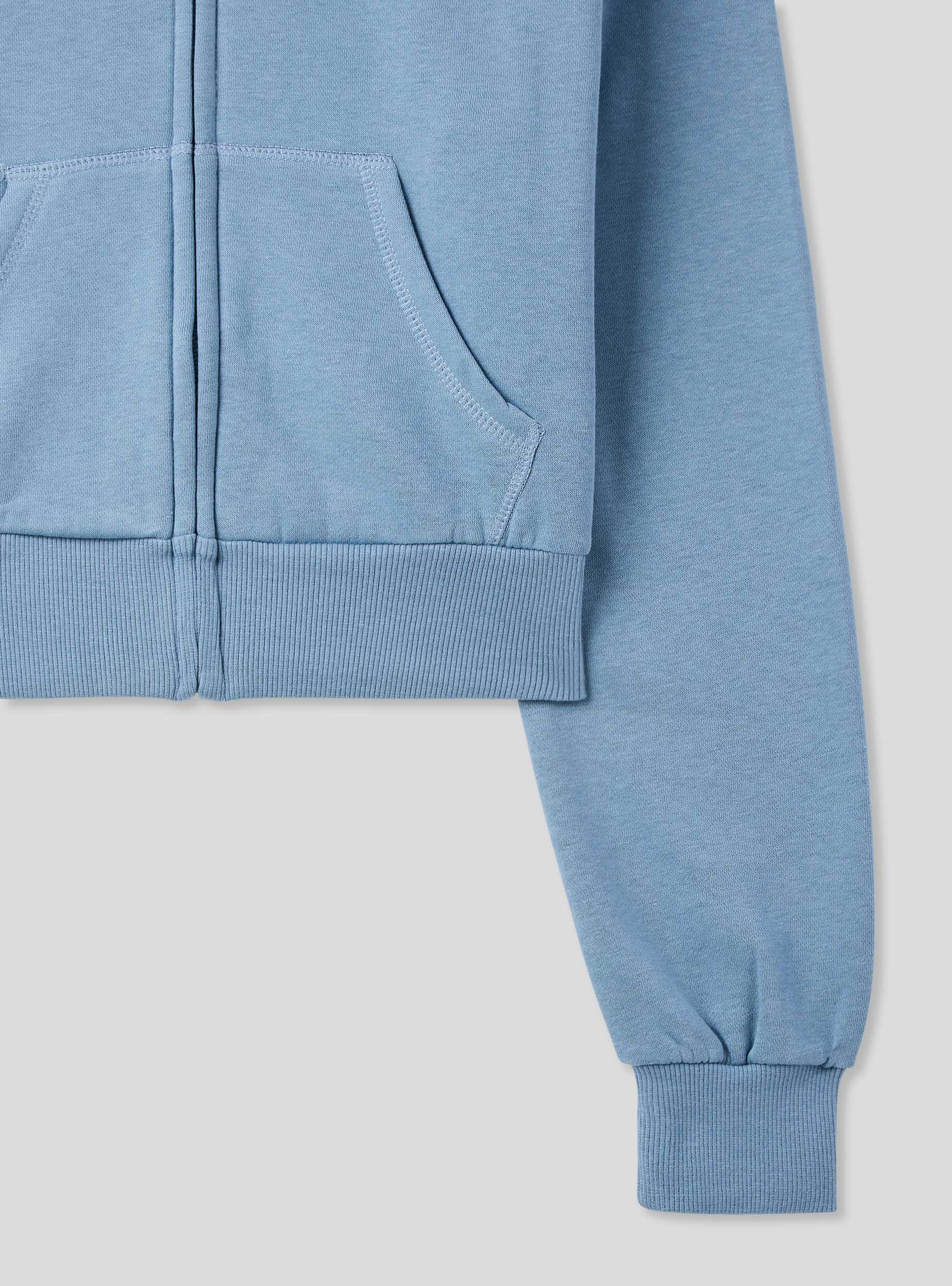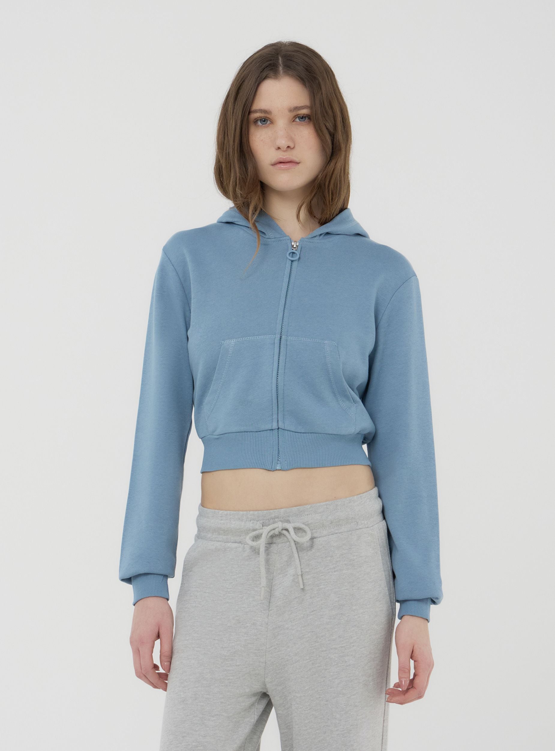 Felpa crop da donna ideale per un look casual e dinamico, perfetta per il tempo libero e le giornate di relax. Il design a tinta unita presenta maniche lunghe e una pratica chiusura con zip frontale, che garantisce comfort e praticità. Dotata di cappuccio per proteggerti nelle giornate più fresche e tasche a marsupio per riporre piccoli oggetti. Realizzata in tessuto leggero e confortevole, si adatta facilmente a qualsiasi outfit, da abbinare a jeans, leggings o pantaloni sportivi per un look moderno e funzionale.Dettagli