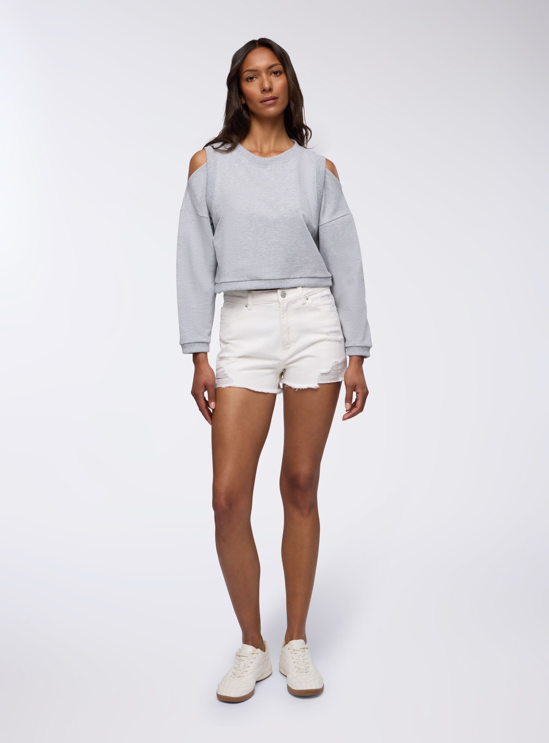 Felpa leggera da donna ideale per un look casual e moderno. Design senza cappuccio e senza zip. Perfetta per il tempo libero, si abbina facilmente a jeans o pantaloni sportivi per un outfit comodo e alla moda. Il design con dettagli cut-out aggiunge un tocco di originalità. Ideale per giornate rilassate o per un'uscita informale.Dettagli