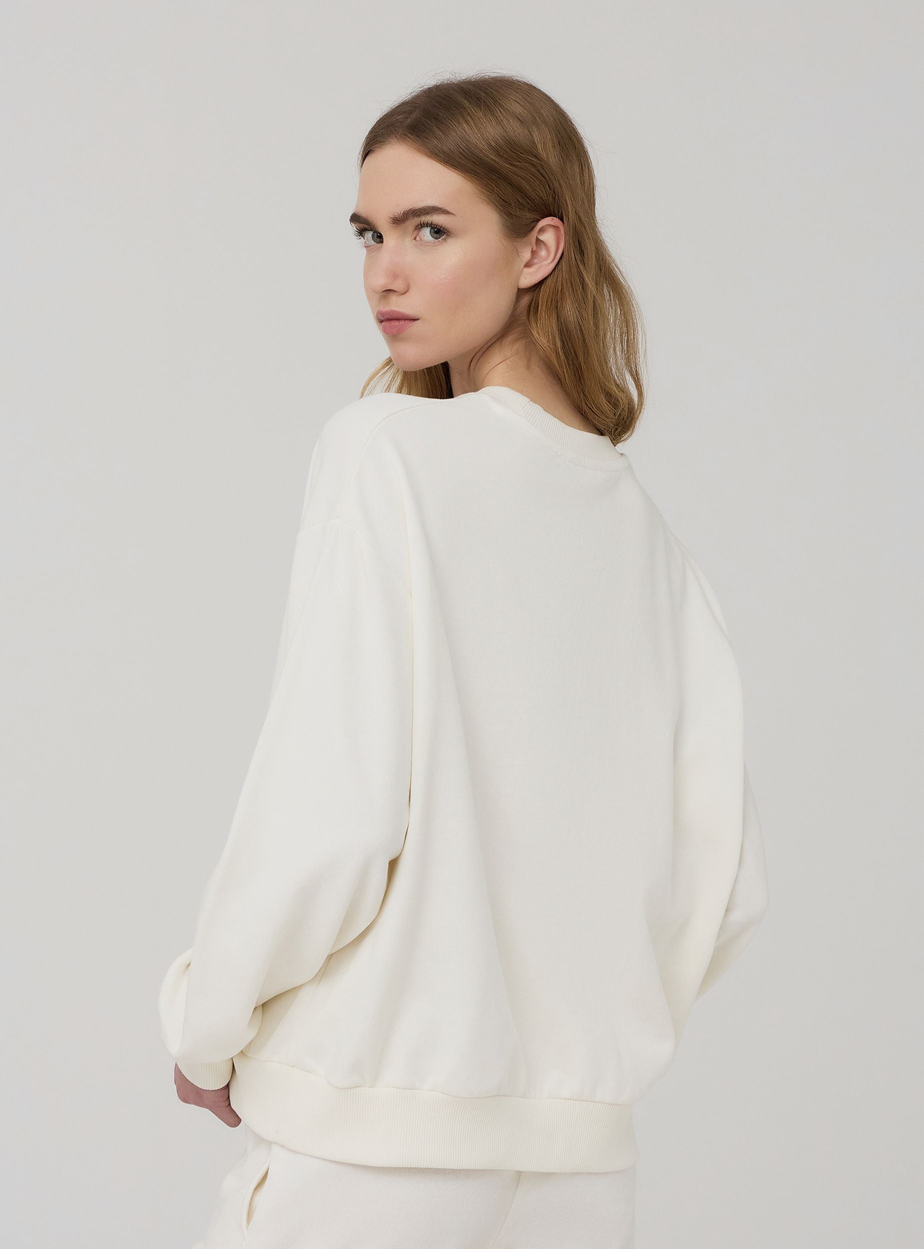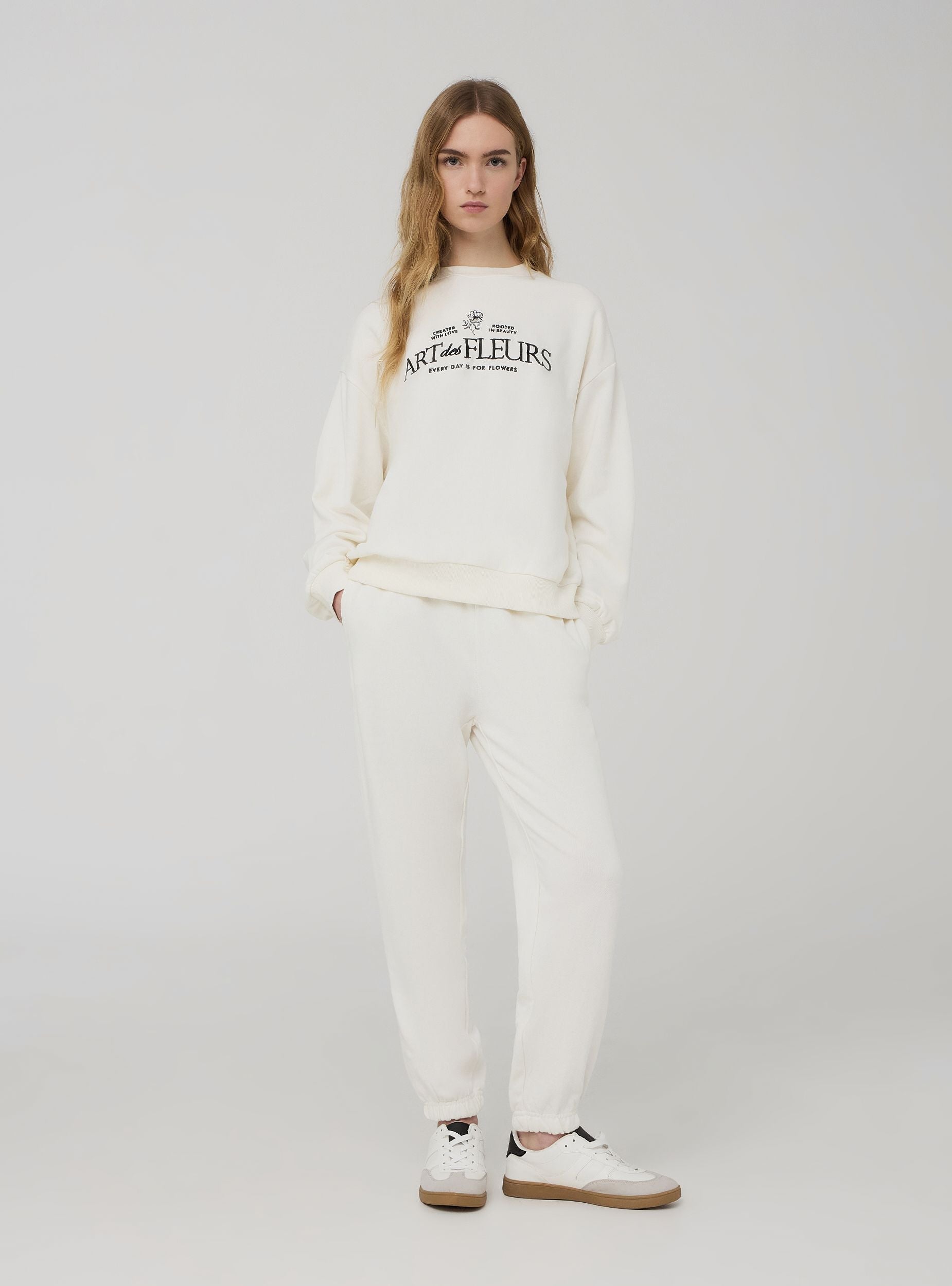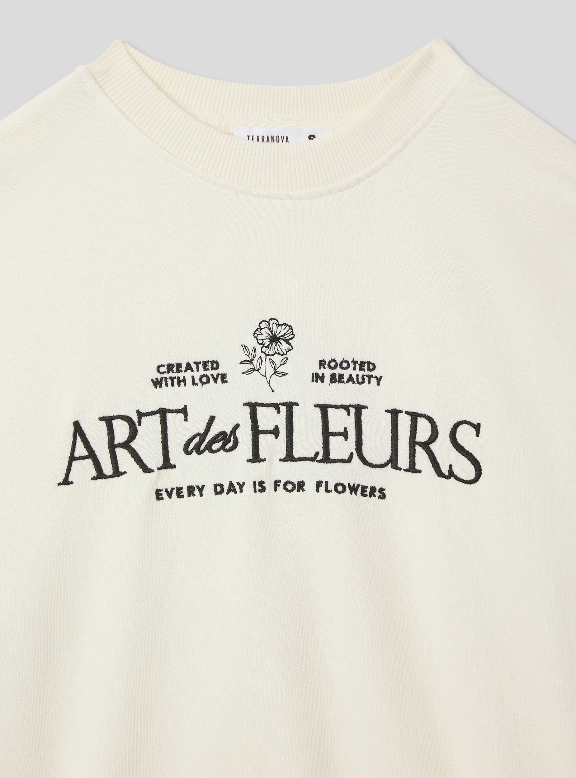 Felpa leggera da donna a tinta unita, arricchita da un raffinato ricamo con scritta e decorazioni floreali sul davanti, che le conferiscono un tocco romantico e originale. Senza cappuccio e senza zip, offre una vestibilità confortevole e un design essenziale, ideale per outfit casual e femminili. Perfetta da abbinare a jeans o gonne per un look rilassato ma curato.Dettagli