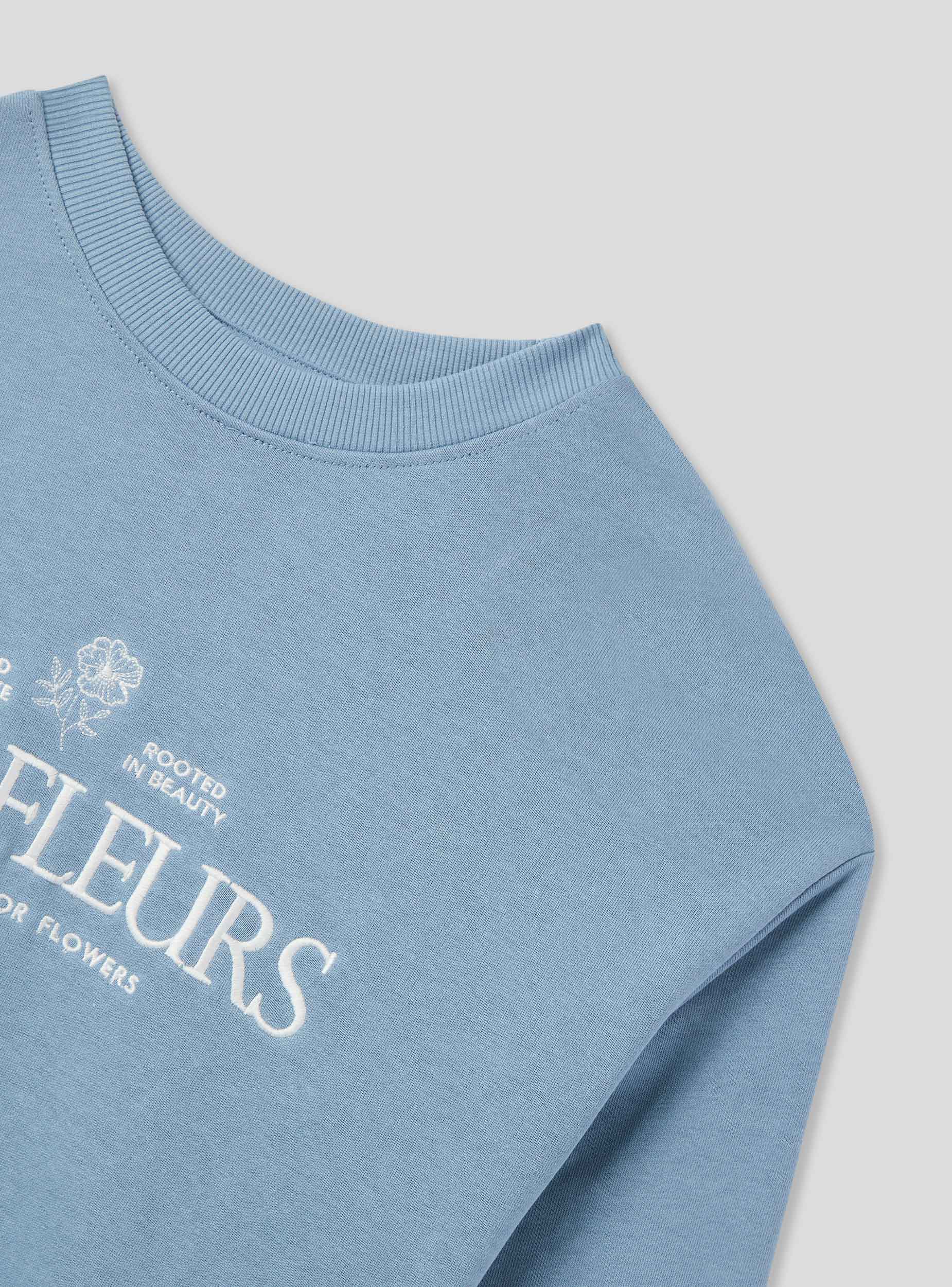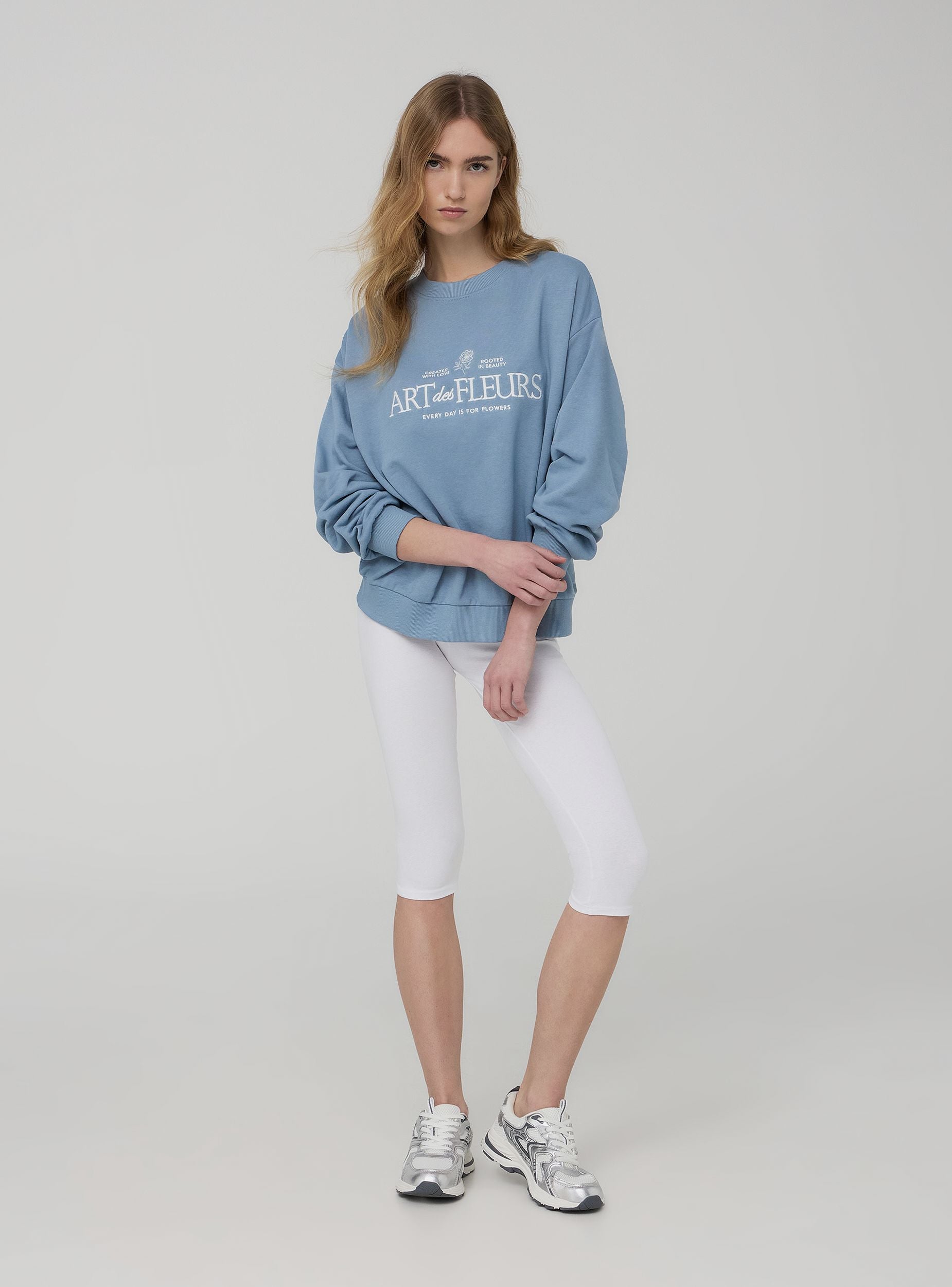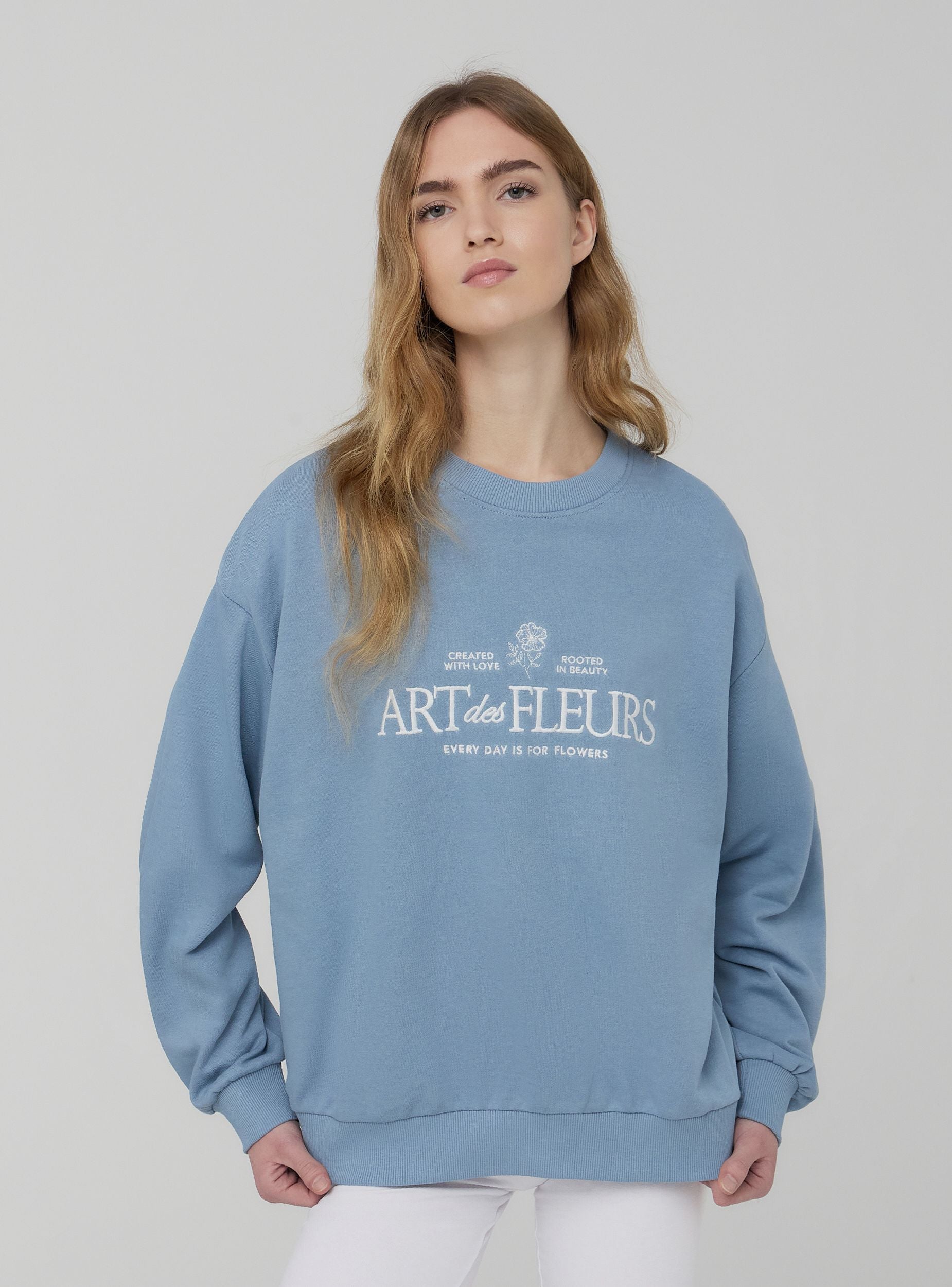 Felpa leggera da donna a tinta unita, arricchita da un raffinato ricamo con scritta e decorazioni floreali sul davanti, che le conferiscono un tocco romantico e originale. Senza cappuccio e senza zip, offre una vestibilità confortevole e un design essenziale, ideale per outfit casual e femminili. Perfetta da abbinare a jeans o gonne per un look rilassato ma curato.Dettagli