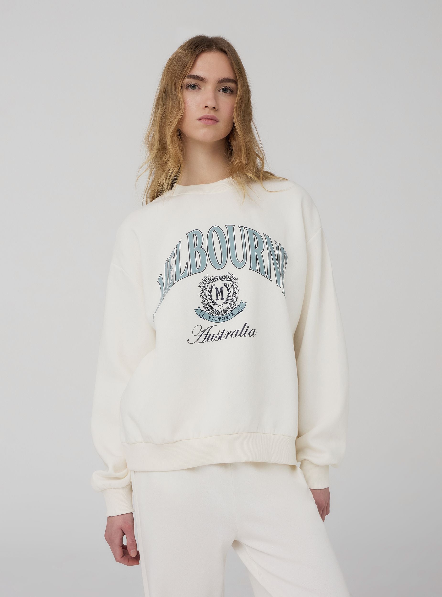 Felpa leggera da donna con stampa ispirata allo stile college, che dona un tocco accattivante e sportivo. Caratterizzata da un design senza cappuccio e senza zip, offre una vestibilità comoda e pratica. Perfetta per completare outfit casual, è ideale da indossare con jeans o pantaloni sportivi per un look rilassato ma di tendenza.Dettagli