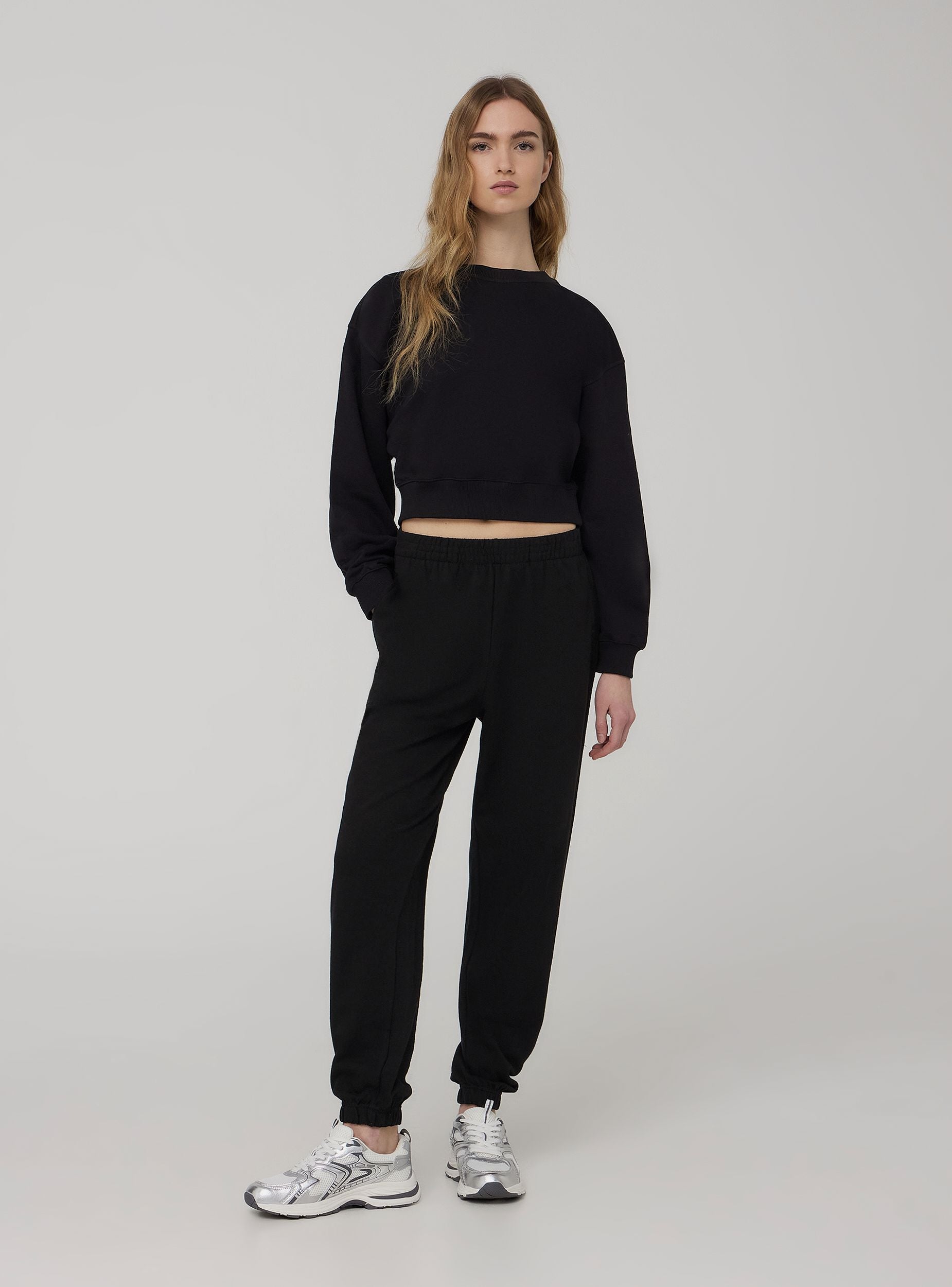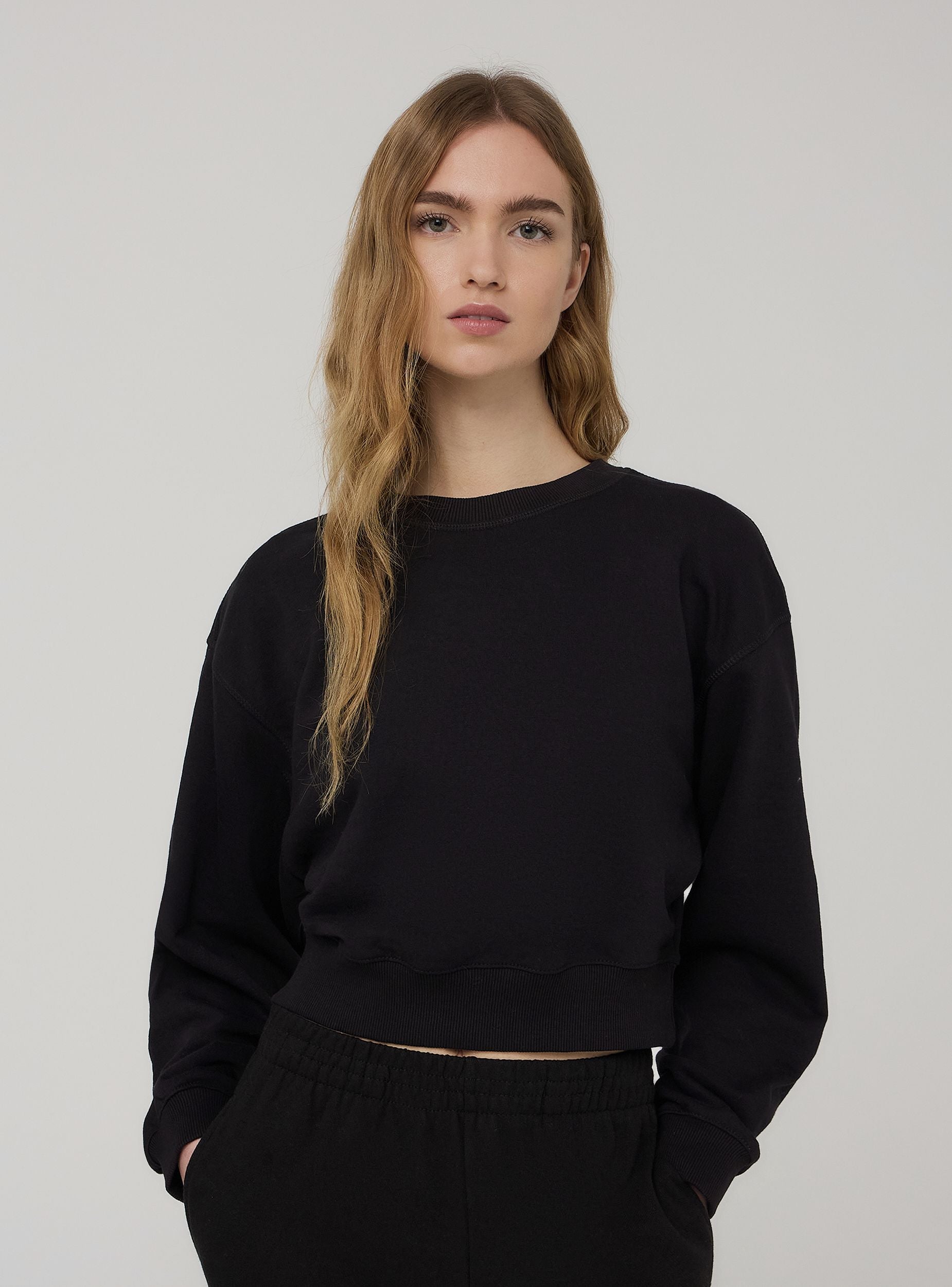 Felpa leggera da donna a tinta unita, perfetta per uno stile casual e moderno. Caratterizzata da un taglio crop, offre un look attuale e versatile. Il design senza cappuccio e senza zip la rende minimalista e ideale da abbinare a jeans a vita alta o gonne. Un capo essenziale per completare il guardaroba con comodità e tendenza.Dettagli