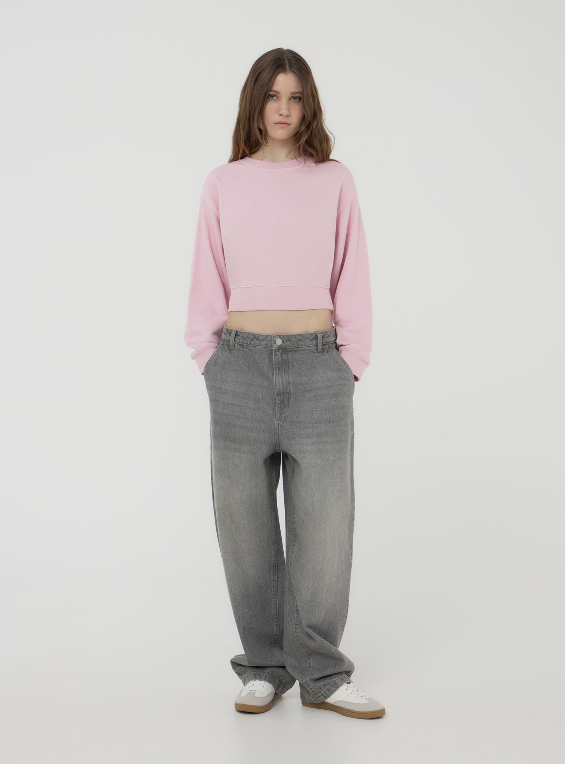 Felpa leggera da donna a tinta unita, perfetta per uno stile casual e moderno. Caratterizzata da un taglio crop, offre un look attuale e versatile. Il design senza cappuccio e senza zip la rende minimalista e ideale da abbinare a jeans a vita alta o gonne. Un capo essenziale per completare il guardaroba con comodità e tendenza.Dettagli