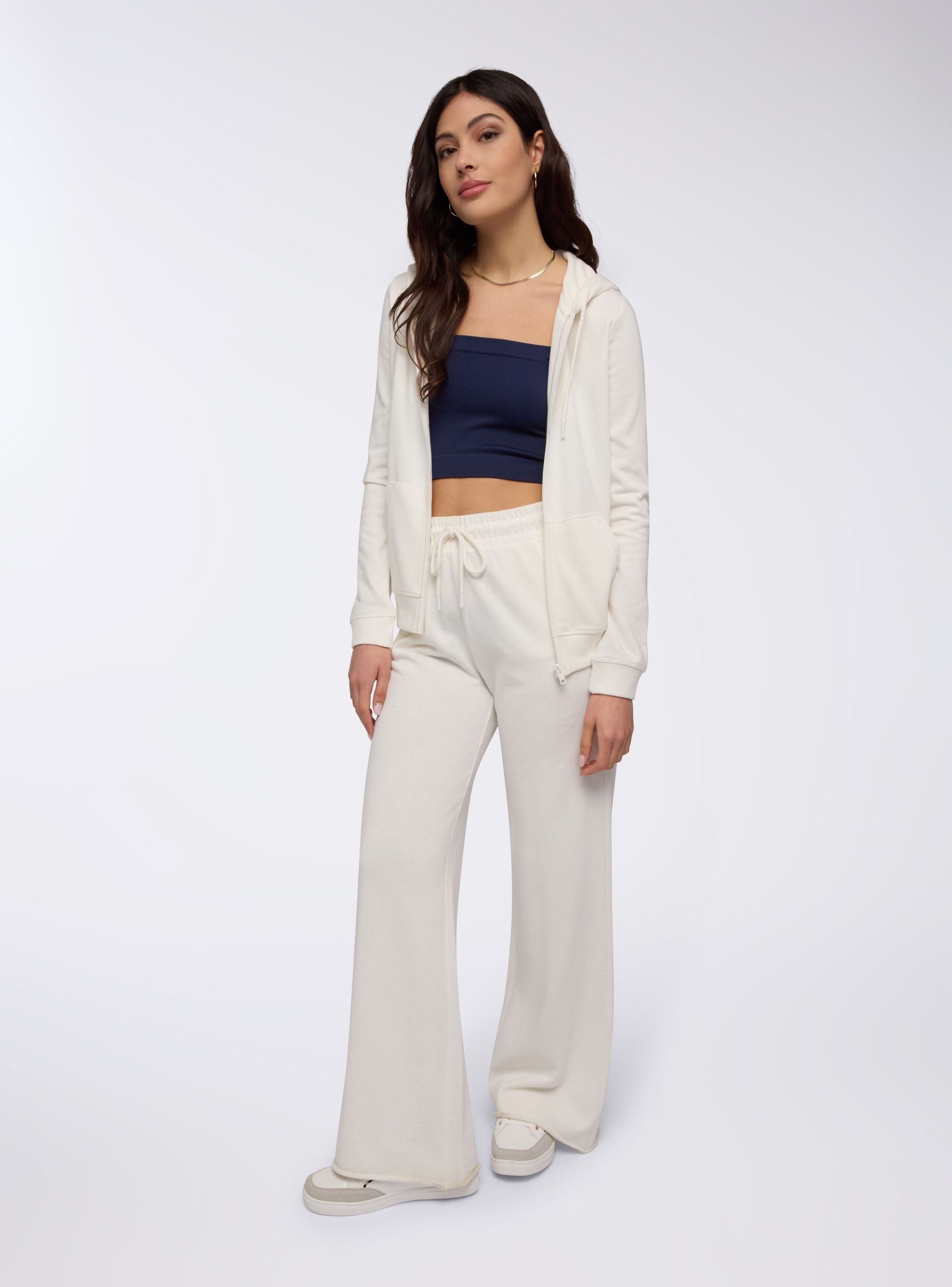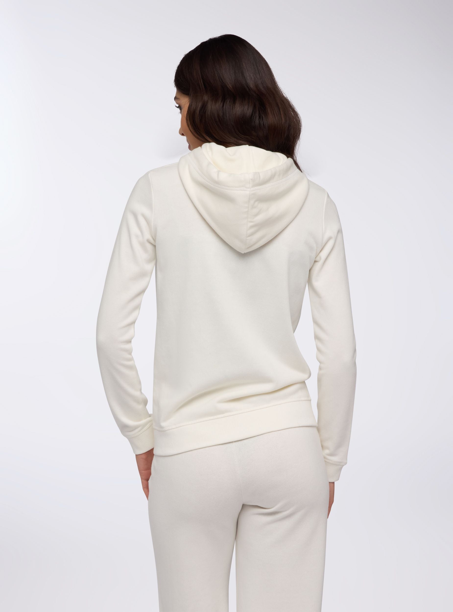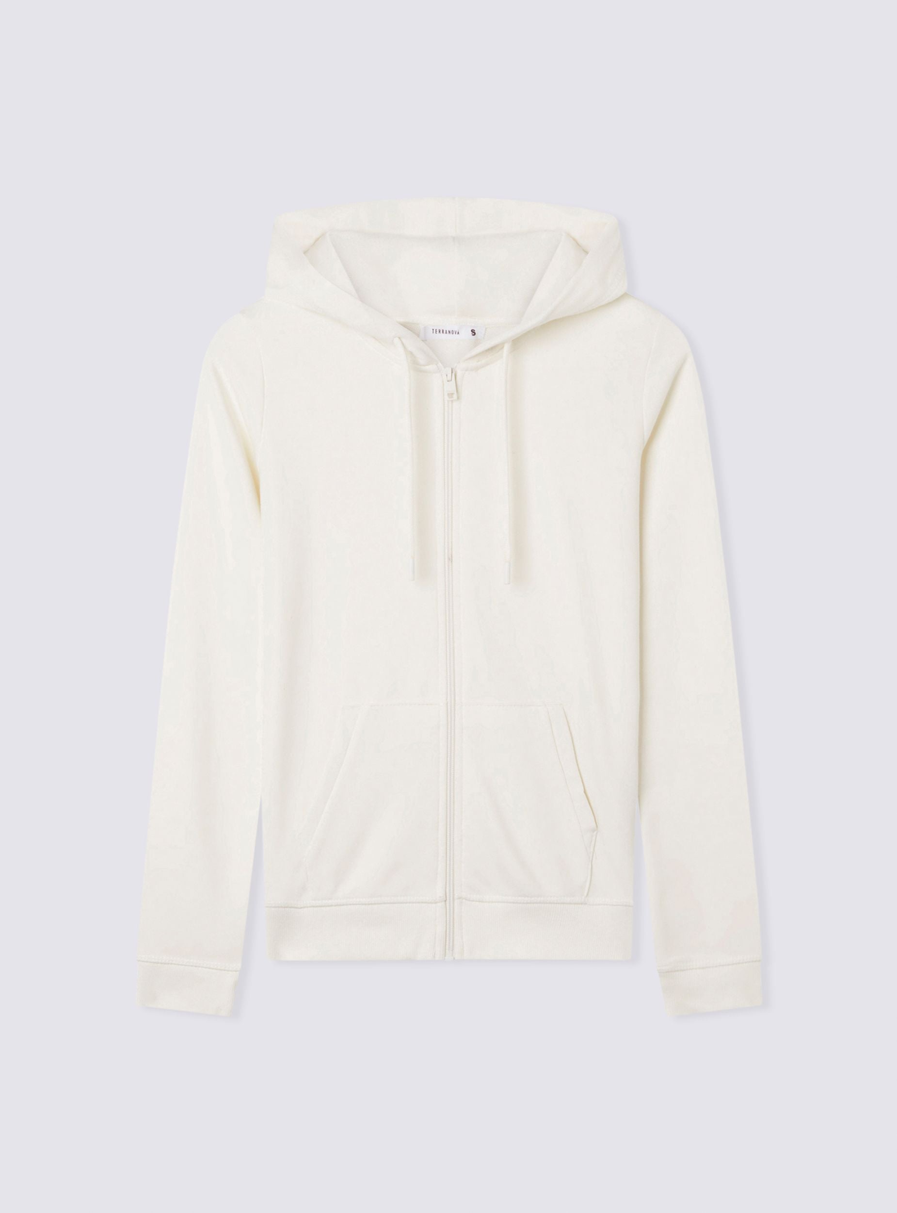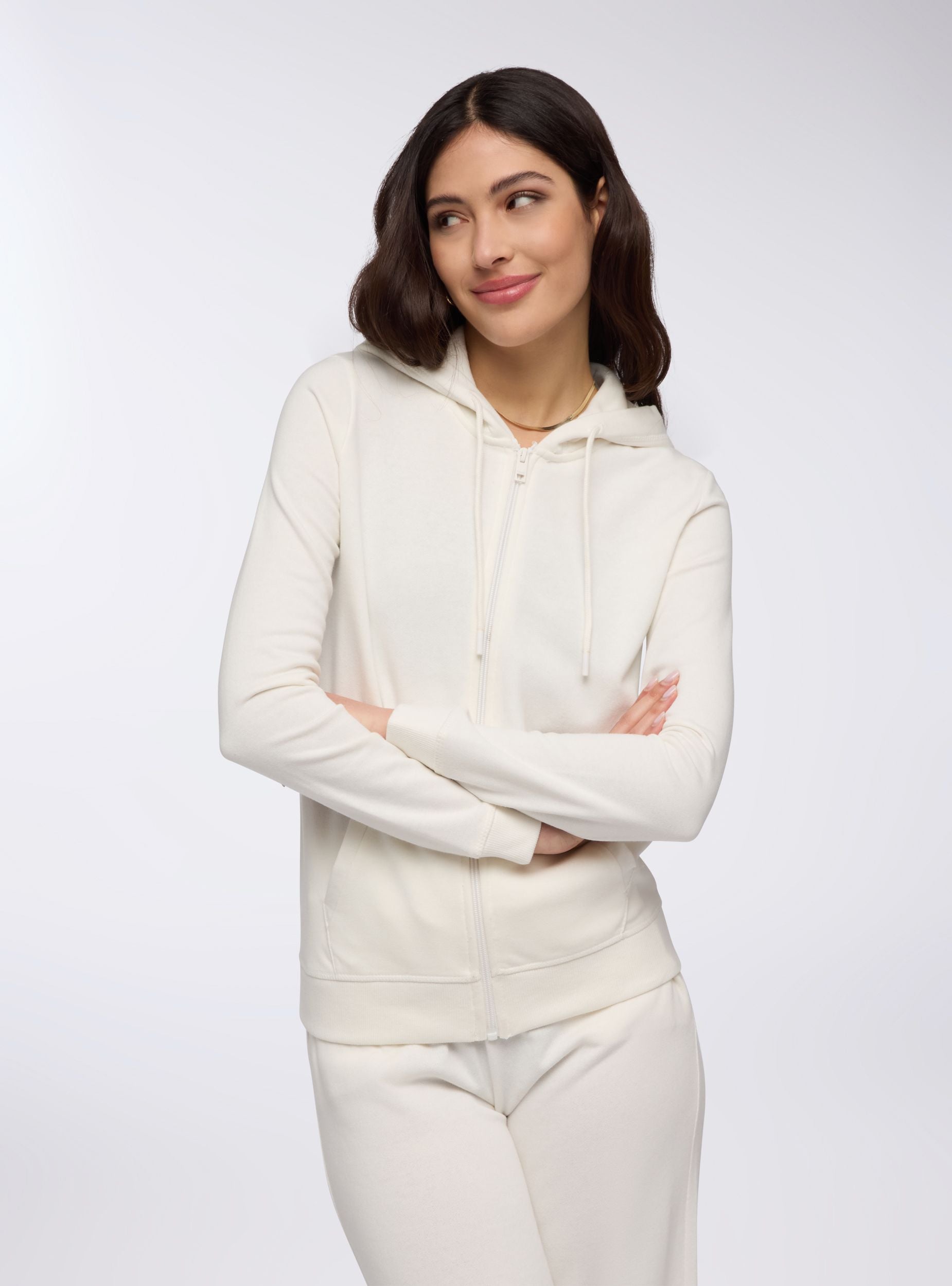 Felpa leggera da donna a tinta unita, perfetta per un look casual e confortevole. Dotata di cappuccio regolabile con coulisse e chiusura con zip frontale, offre praticità e stile. Completa di tasca marsupio, ideale per riporre piccoli oggetti o per riscaldare le mani. Un capo versatile, ideale per la mezza stagione o per completare outfit rilassati.Dettagli