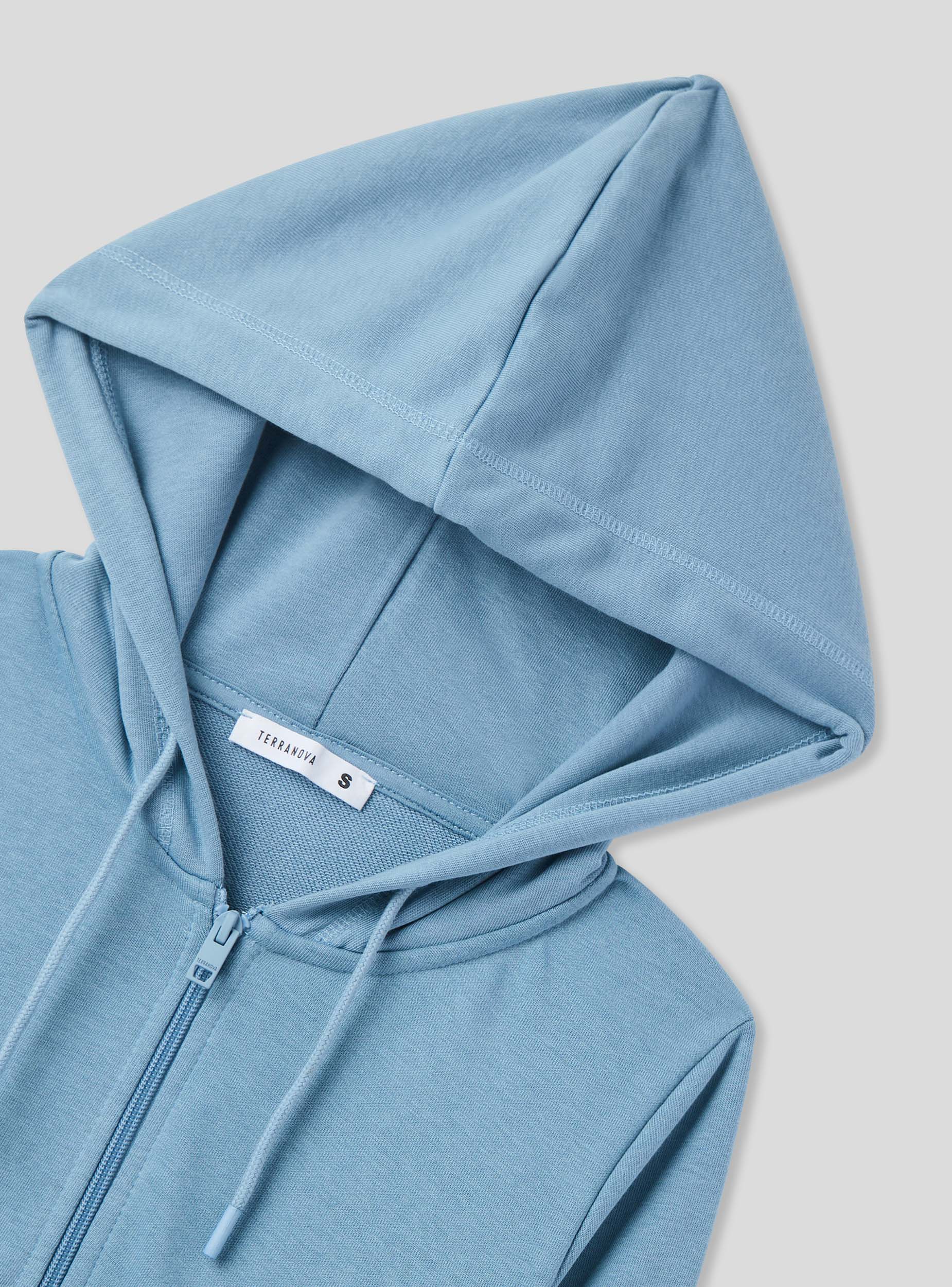Felpa leggera da donna a tinta unita, perfetta per un look casual e confortevole. Dotata di cappuccio regolabile con coulisse e chiusura con zip frontale, offre praticità e stile. Completa di tasca marsupio, ideale per riporre piccoli oggetti o per riscaldare le mani. Un capo versatile, ideale per la mezza stagione o per completare outfit rilassati.Dettagli
