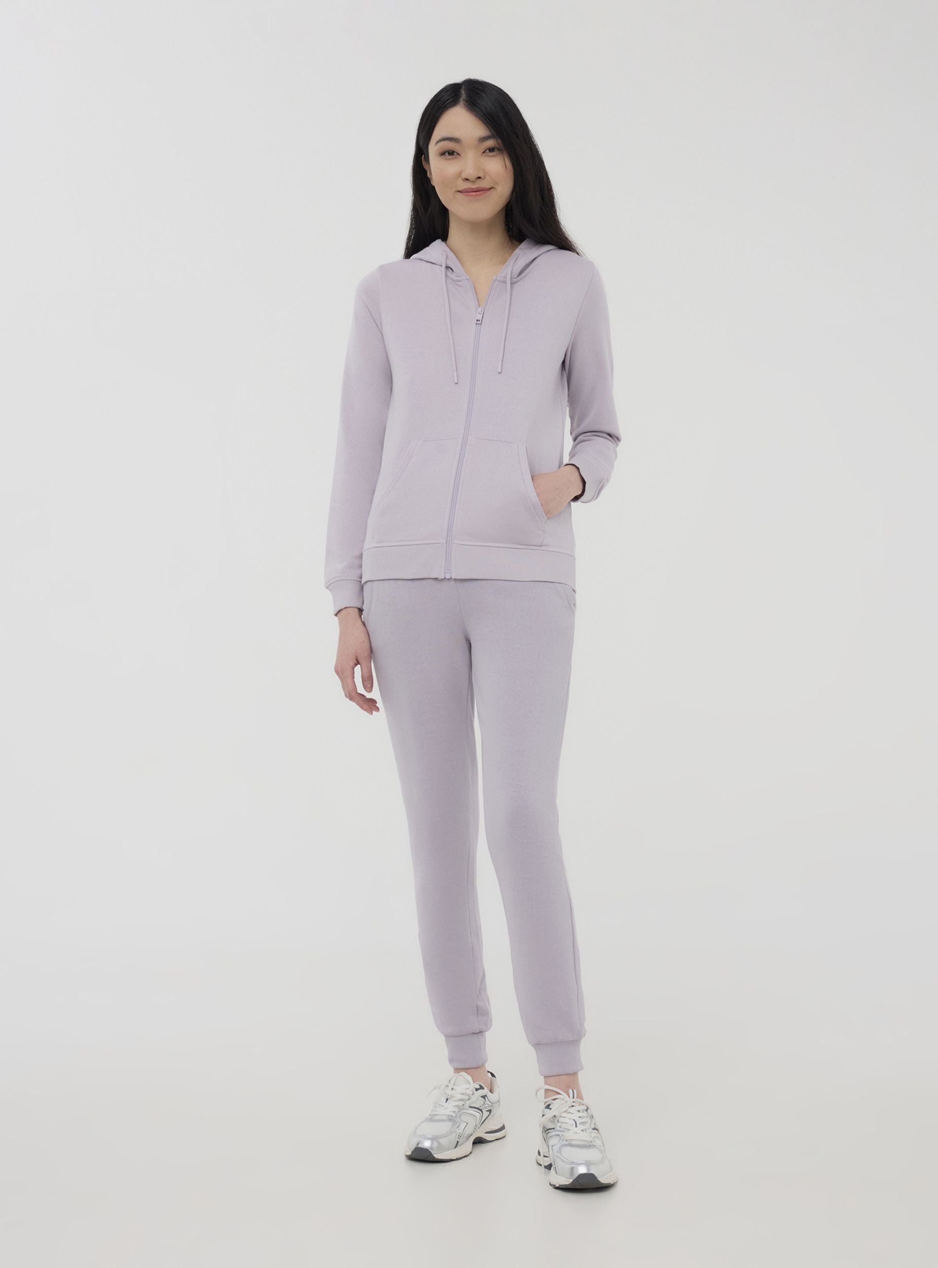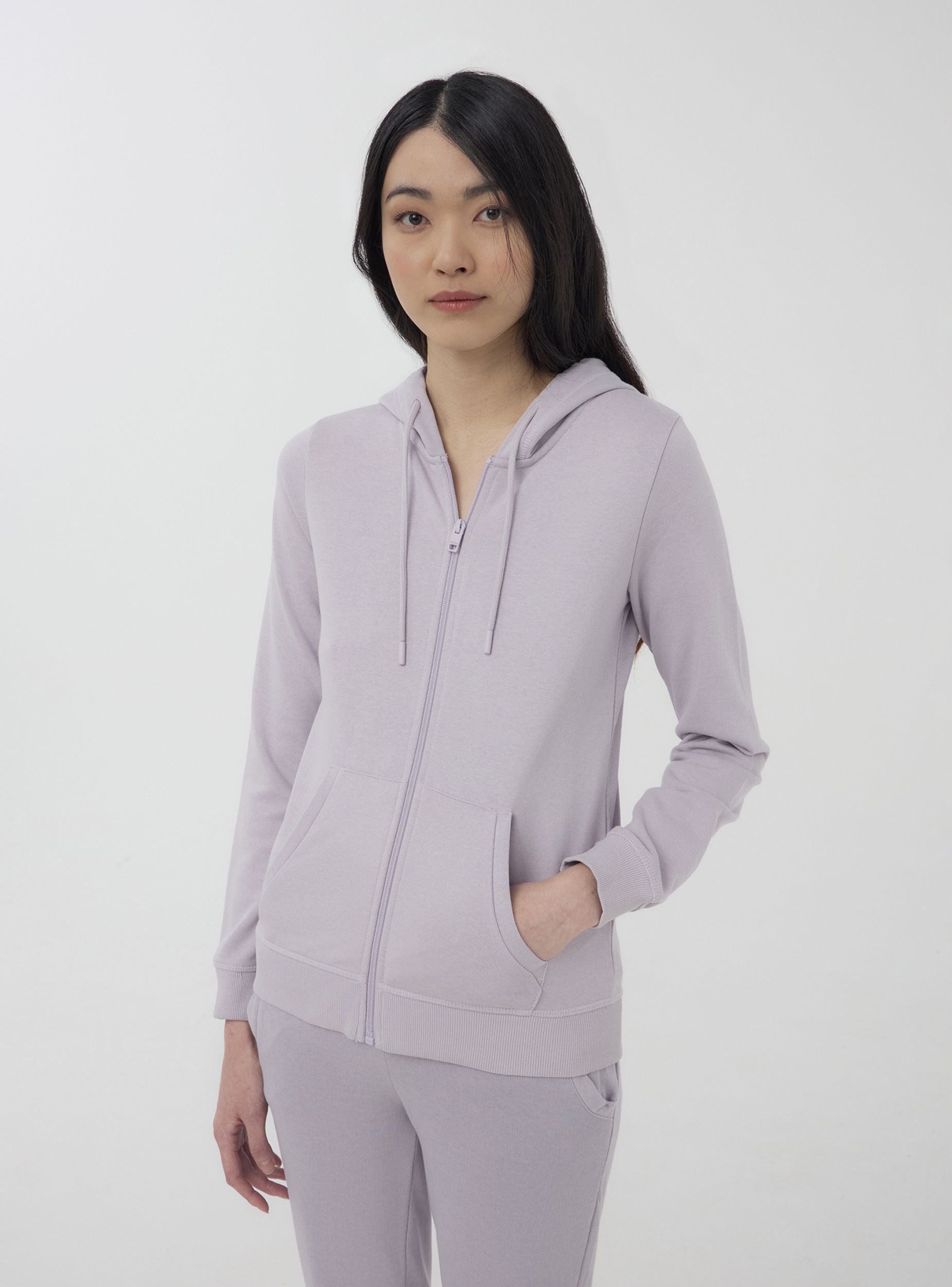 Felpa leggera da donna a tinta unita, perfetta per un look casual e confortevole. Dotata di cappuccio regolabile con coulisse e chiusura con zip frontale, offre praticità e stile. Completa di tasca marsupio, ideale per riporre piccoli oggetti o per riscaldare le mani. Un capo versatile, ideale per la mezza stagione o per completare outfit rilassati.Dettagli