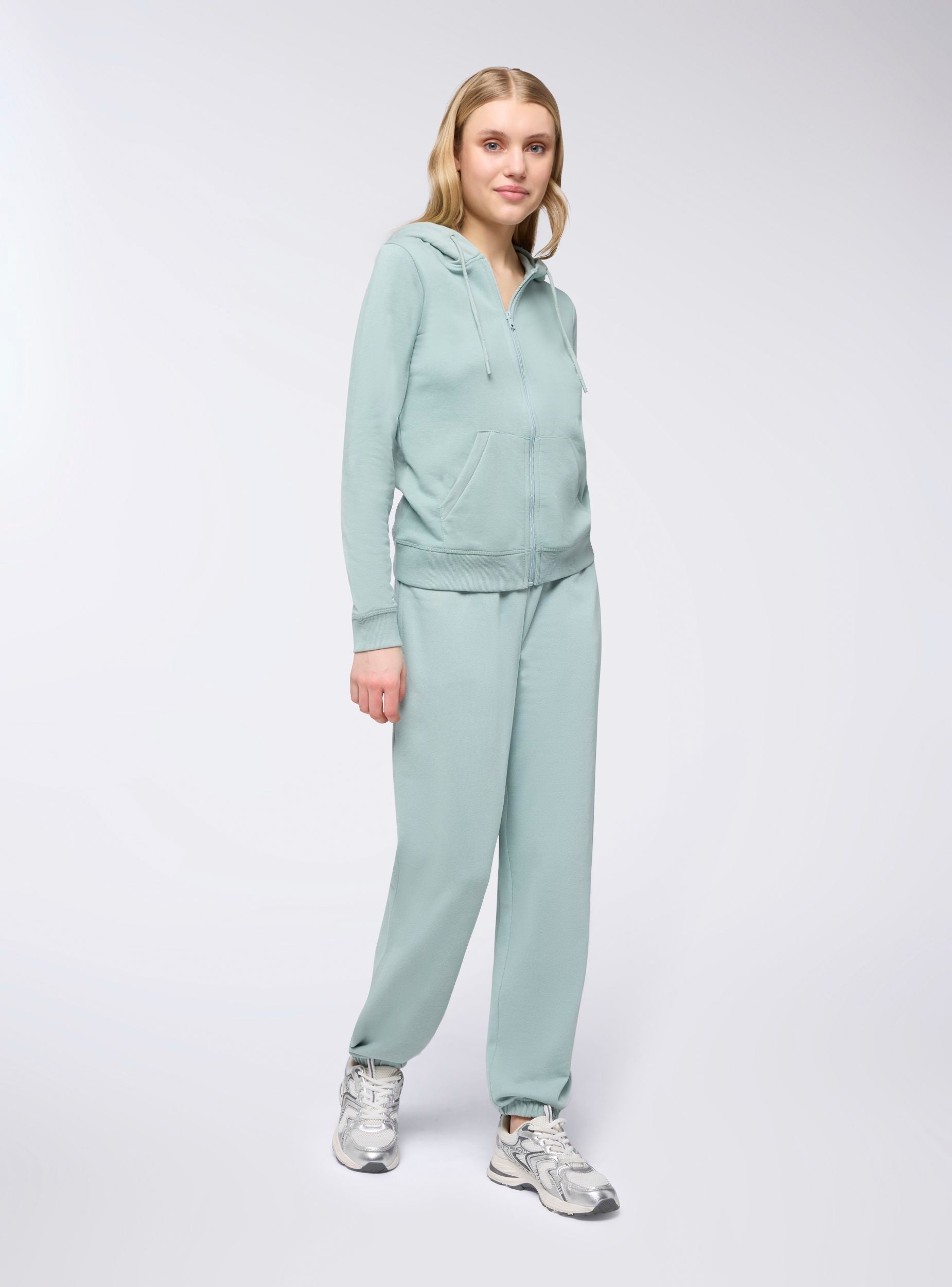 Felpa leggera da donna a tinta unita, perfetta per un look casual e confortevole. Dotata di cappuccio regolabile con coulisse e chiusura con zip frontale, offre praticità e stile. Completa di tasca marsupio, ideale per riporre piccoli oggetti o per riscaldare le mani. Un capo versatile, ideale per la mezza stagione o per completare outfit rilassati.Dettagli