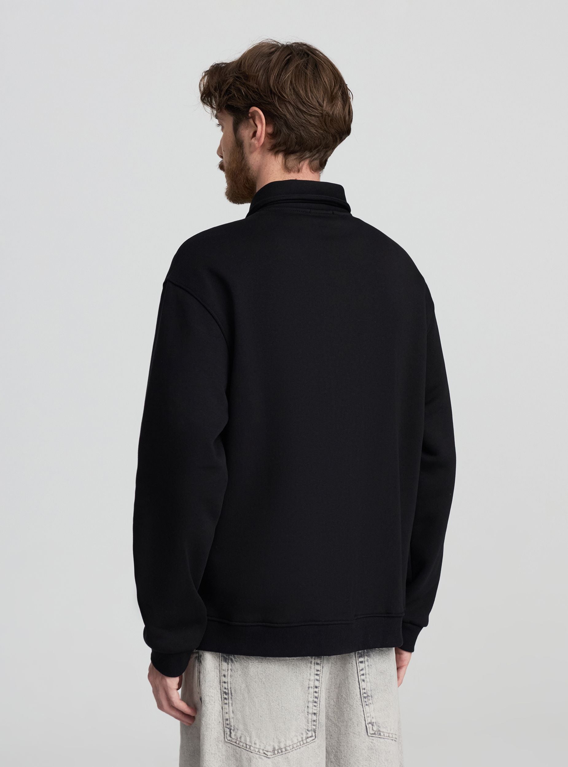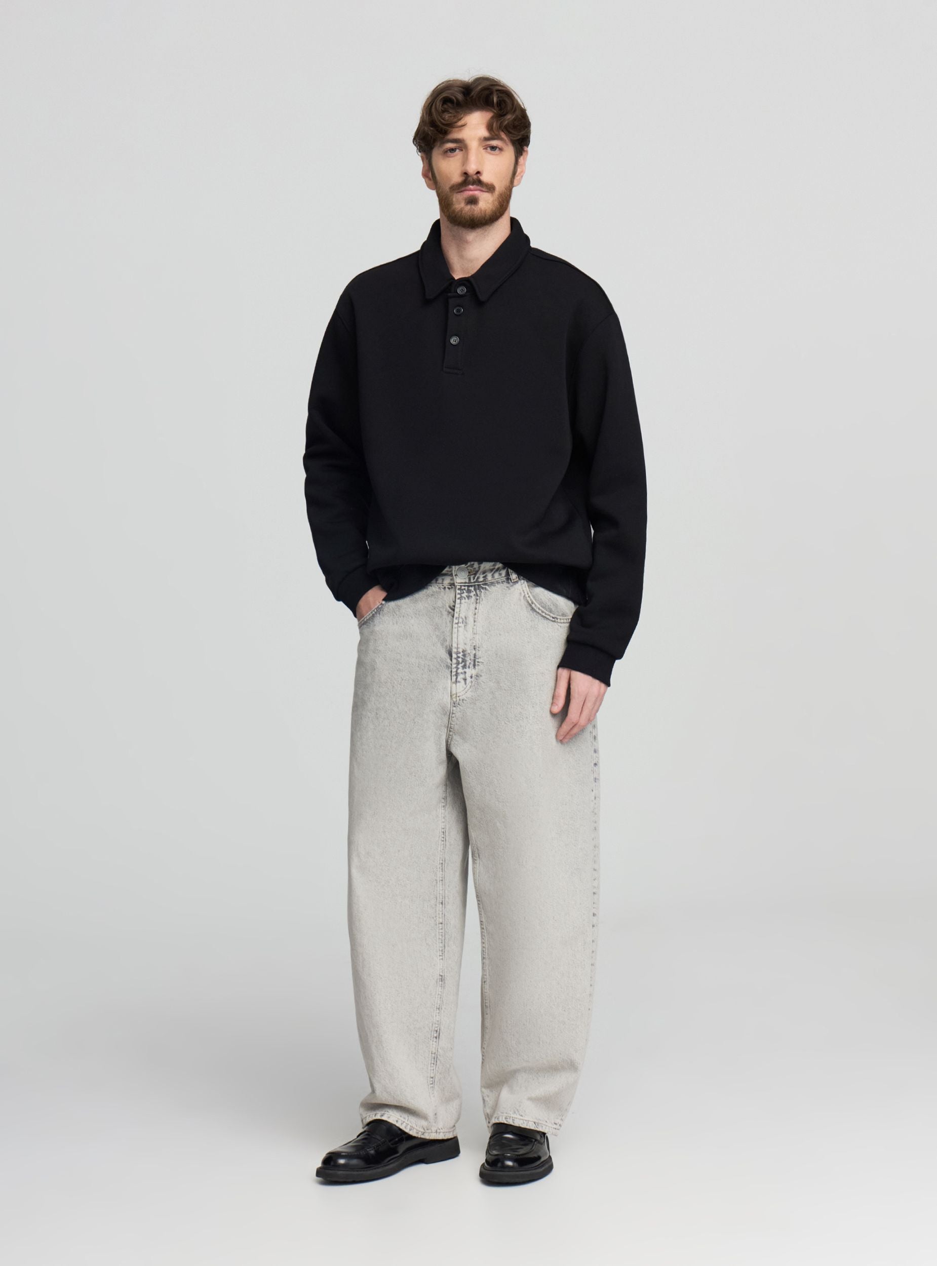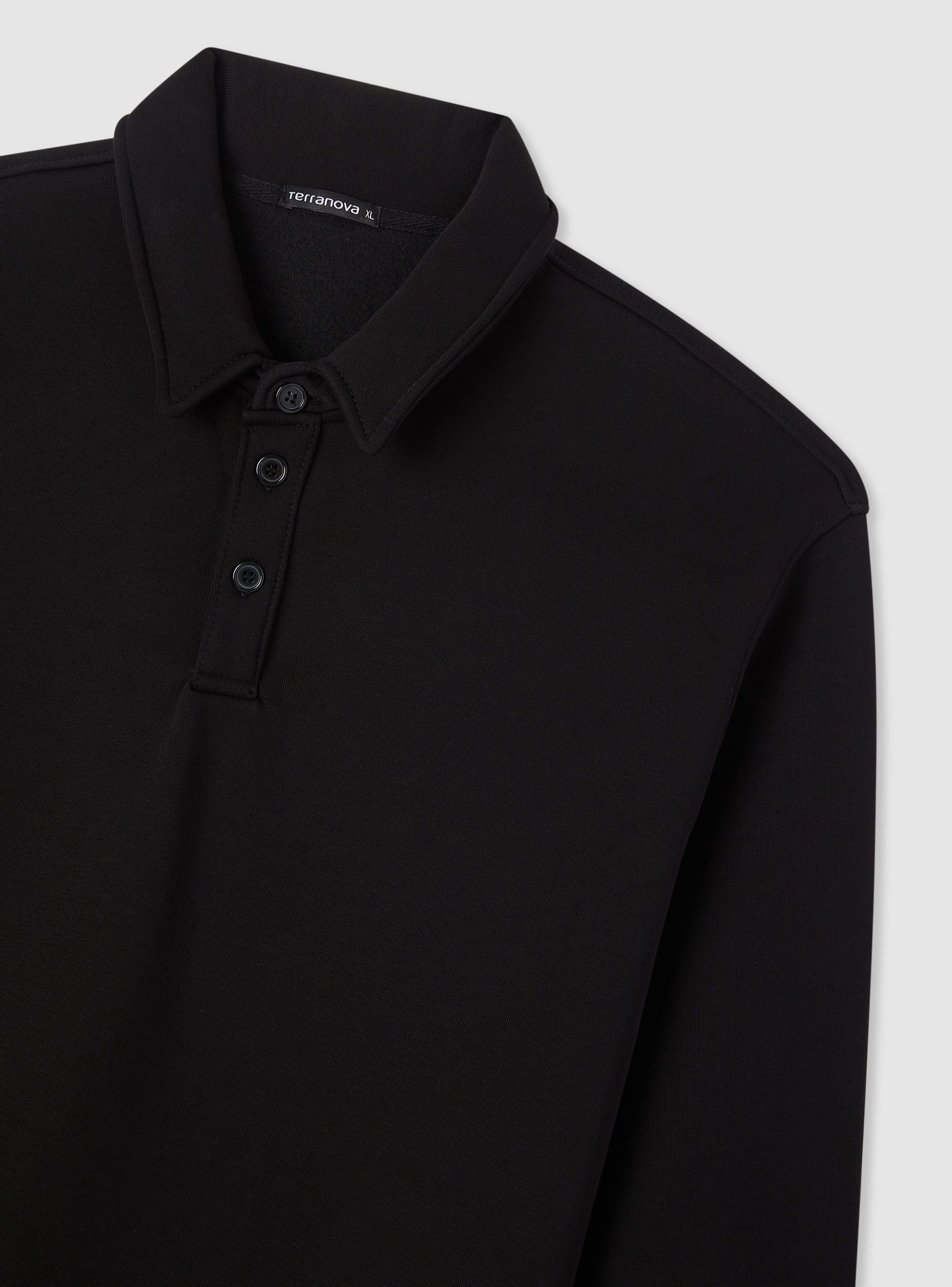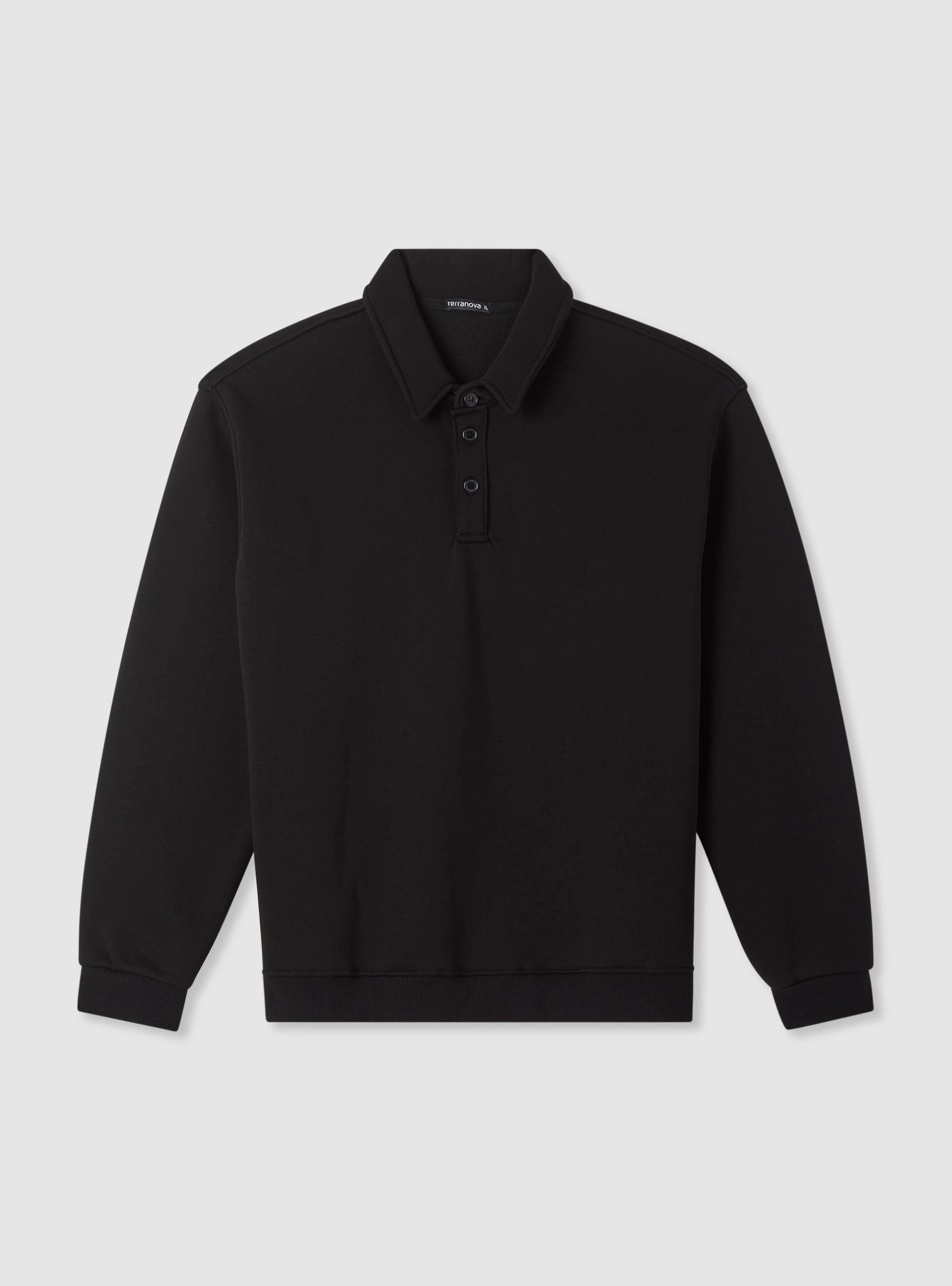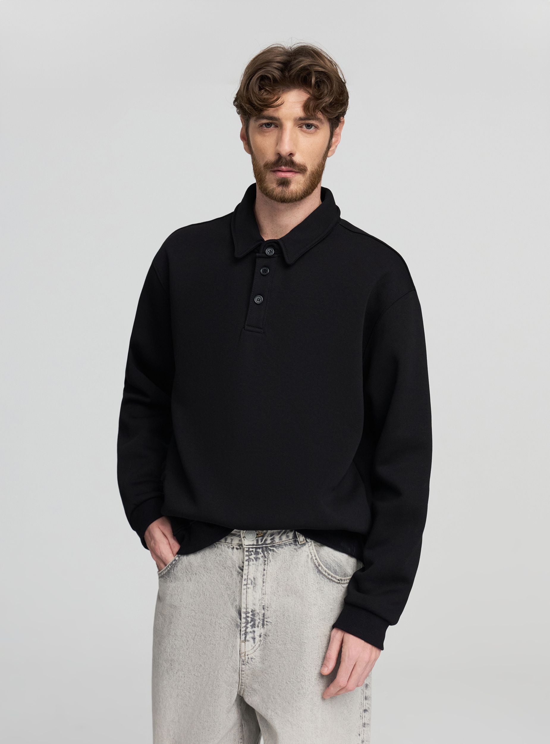 Felpa da uomo a tinta unita con collo polo e abbottonatura a tre bottoni, ideale per look casual e urban. Maniche lunghe con polsini e fondo lavorati a coste per una vestibilità confortevole. Modello senza zip e senza cappuccio, perfetto da indossare con jeans o chino per il tempo libero o l’ufficio informale. Tessuto pesante che assicura calore nelle giornate più fresche.Dettagli