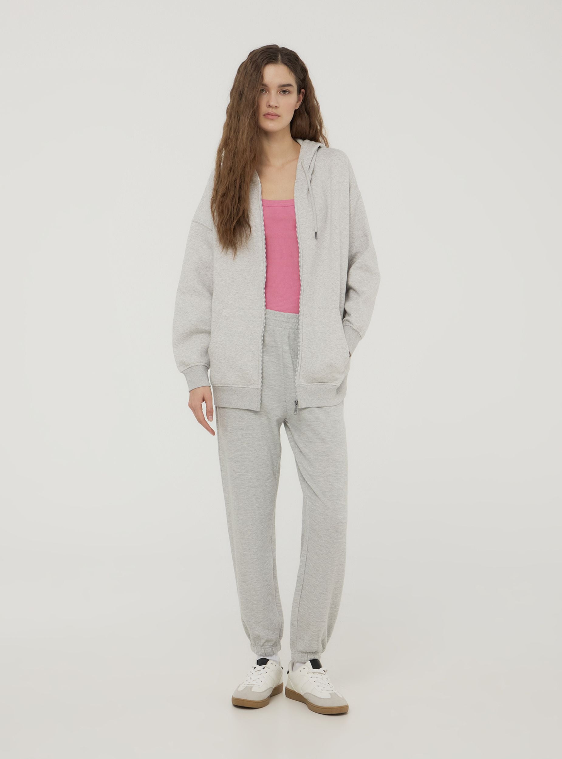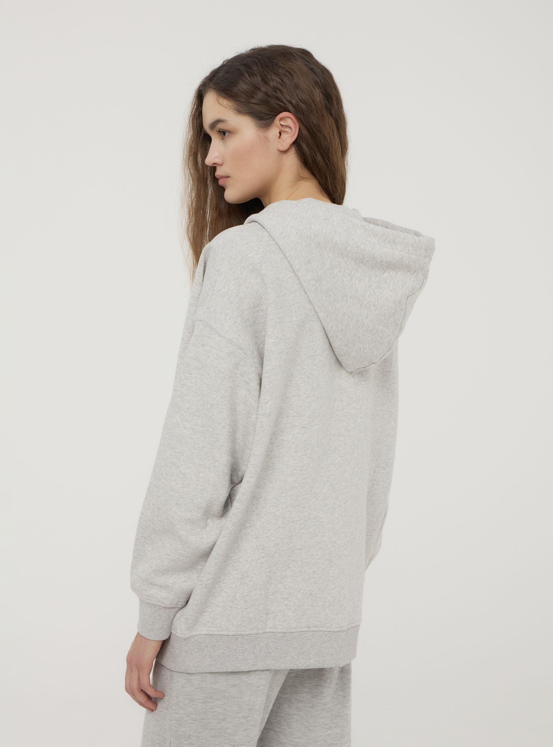 Felpa pesante da donna a maniche lunghe con cappuccio regolabile tramite coulisse, chiusura con zip e pratiche tasche a marsupio. Il design maxi e la tinta unita la rendono ideale per un look casual e rilassato. Perfetta da abbinare a leggings, joggers o jeans, è ideale per il tempo libero, le giornate più fresche o per un outfit sporty-chic sempre attuale.Dettagli