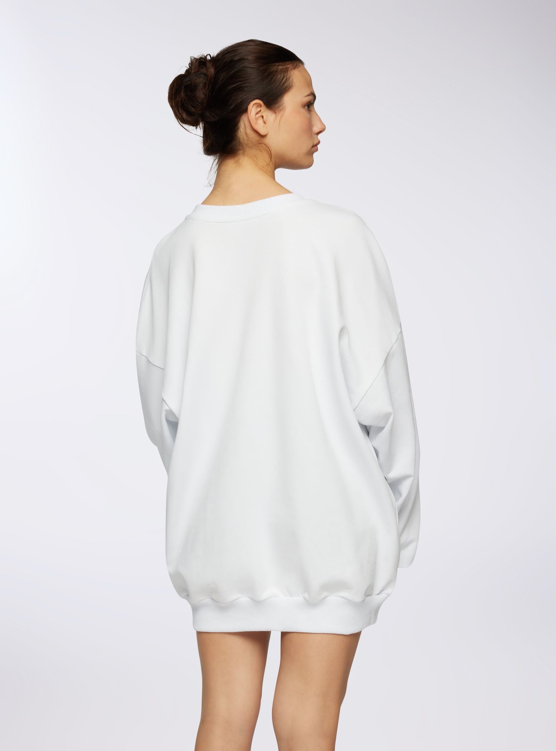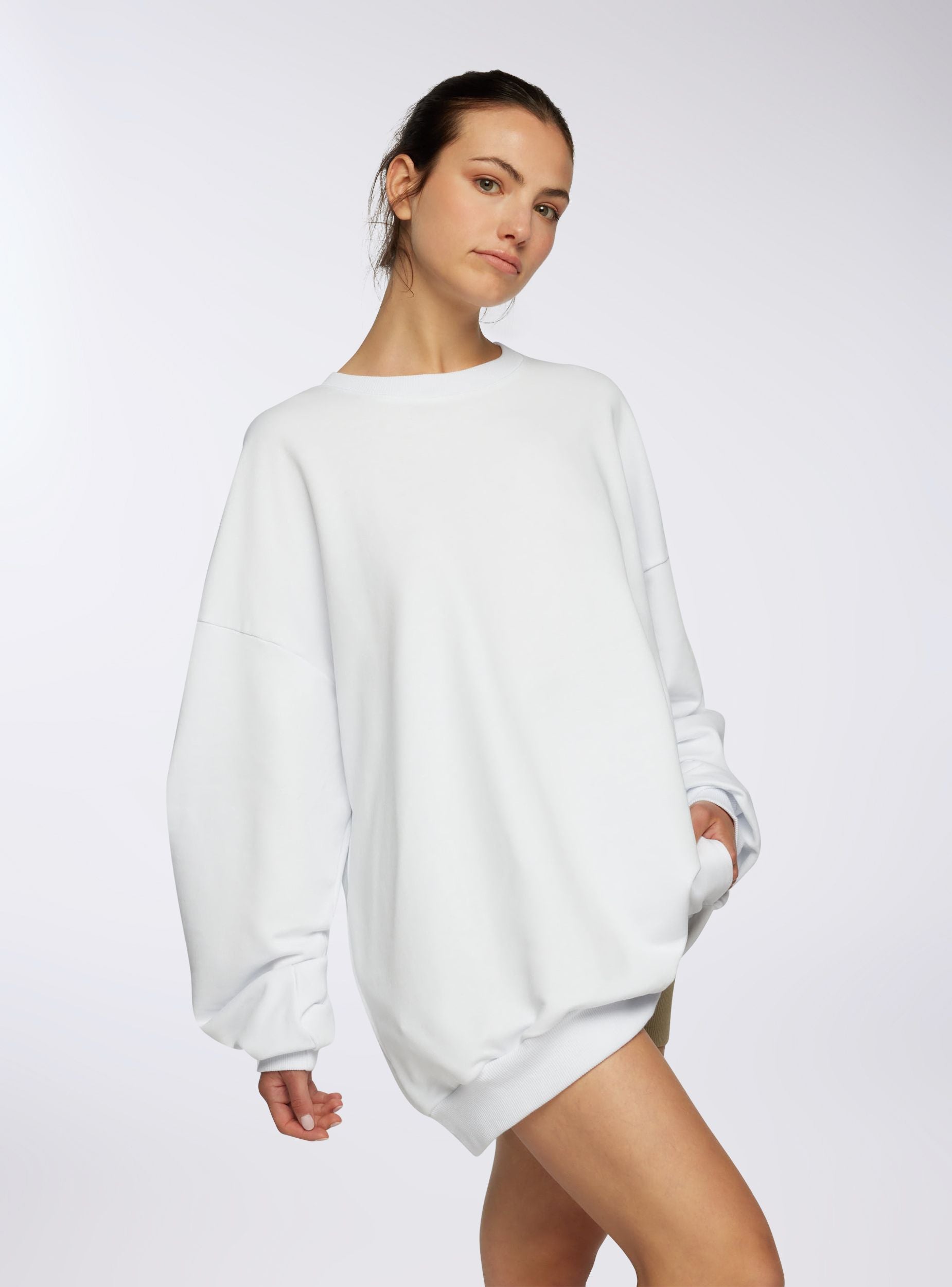 Felpa leggera da donna dallo stile oversize, ideale per un look casual e rilassato. Il modello presenta girocollo, maniche lunghe e polsini, senza cappuccio e senza zip. Perfetta per essere indossata con jeans o leggings, si adatta a diverse occasioni informali grazie al design essenziale e alla vestibilità ampia. Il tessuto è a tinta unita per un tocco versatile e moderno.Dettagli