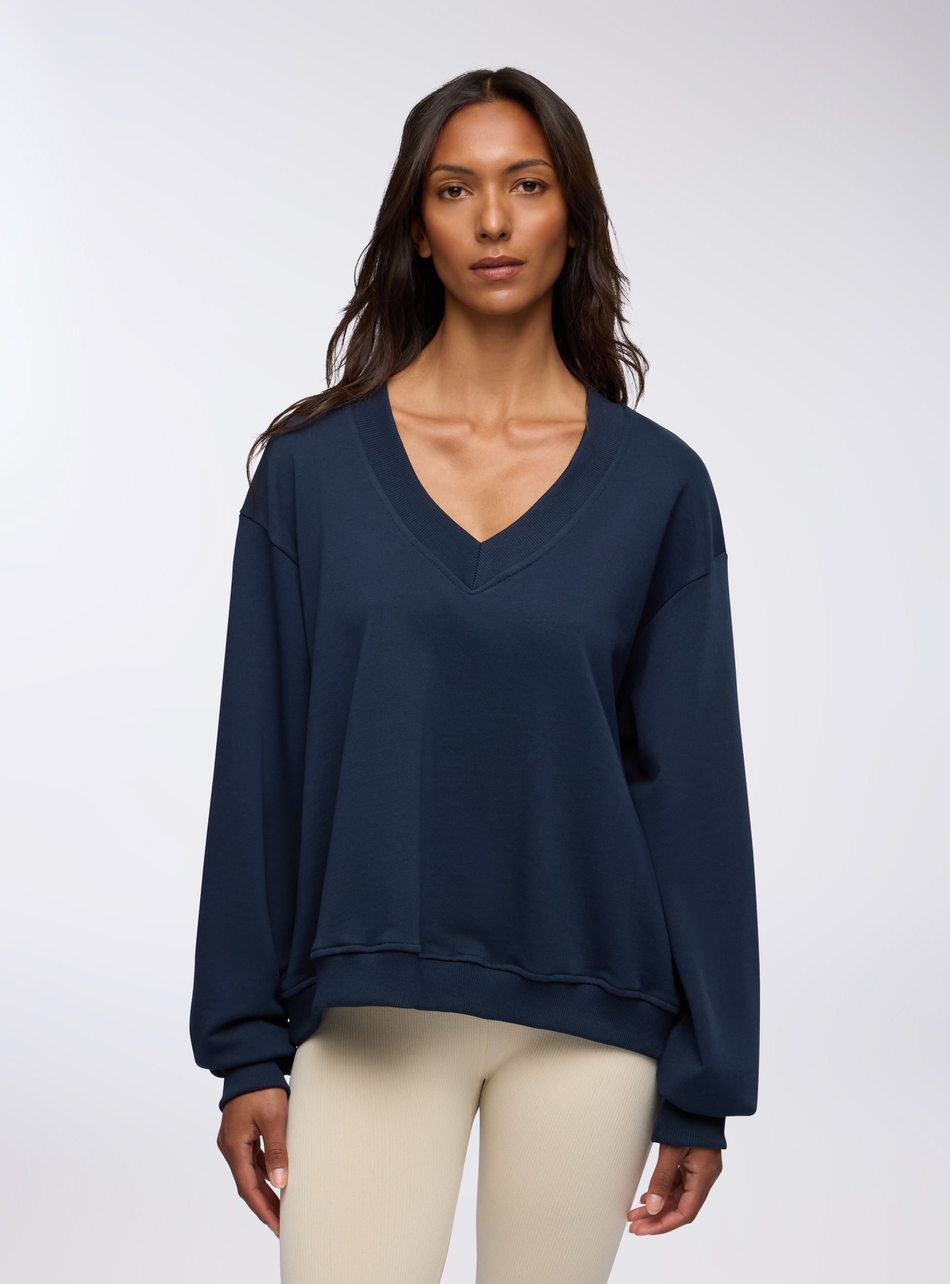 Felpa leggera da donna ideale per un look casual e confortevole. Perfetta per il tempo libero, si abbina facilmente a jeans o pantaloni sportivi per un outfit rilassato. Il design con scollo a V aggiunge un tocco di stile, mentre la vestibilità oversize garantisce comodità e libertà di movimento. Un capo versatile per diverse occasioni informali.Dettagli