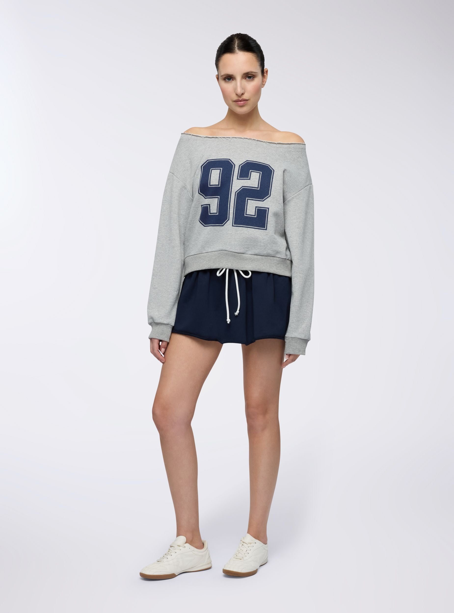 Felpa leggera da donna con stampa frontale ispirata allo stile college, perfetta per un look casual e sportivo. Lo scollo ampio che lascia le spalle scoperte donano un tocco femminile e moderno, ideale da abbinare a pantaloni jogger, jeans a vita alta o shorts per un outfit rilassato e dinamico. Ottima scelta per il tempo libero, le giornate di studio o per uno stile athleisure di tendenza.Dettagli