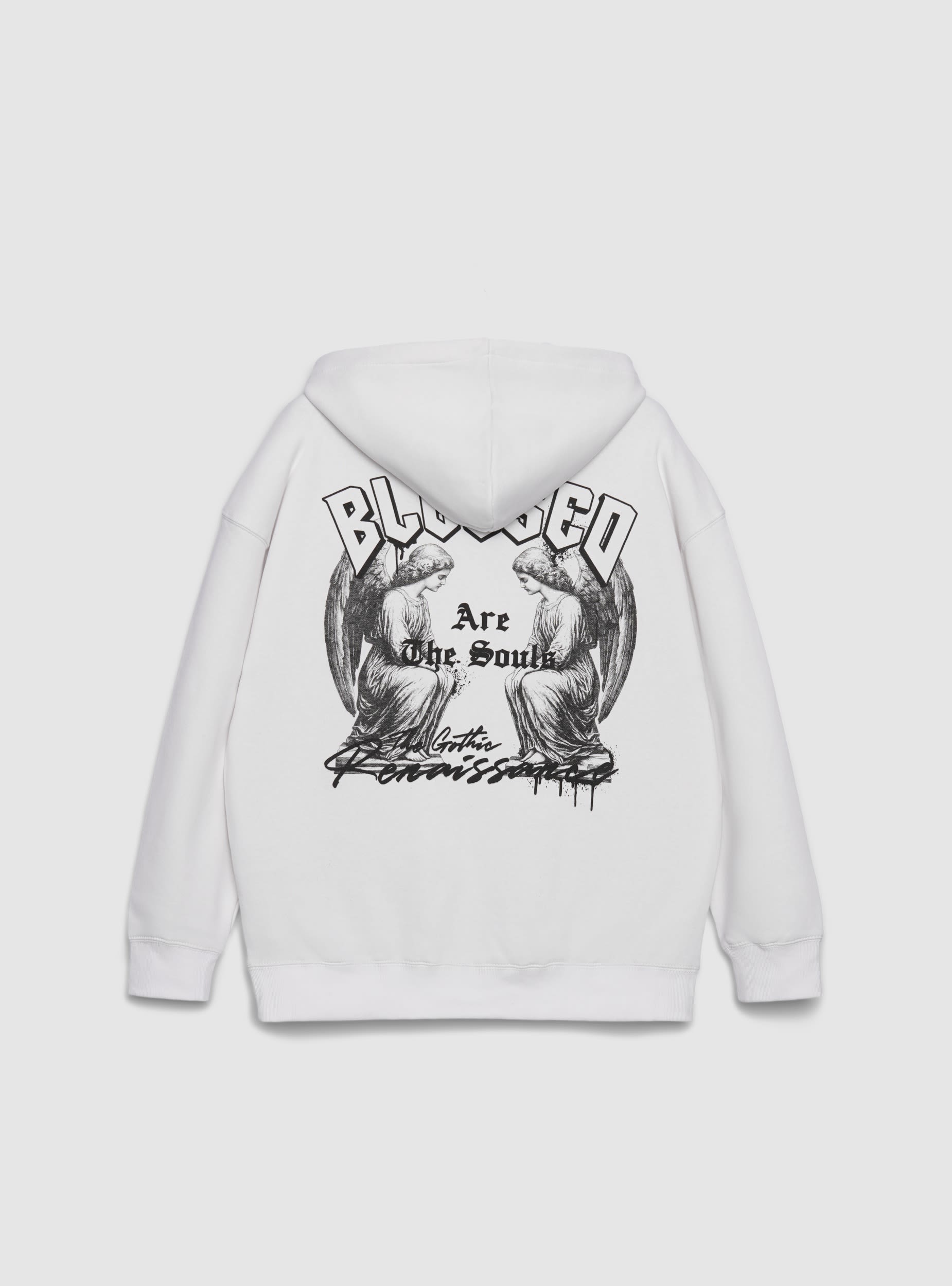 Felpa da uomo oversize con cappuccio senza zip, pensata per look street e tempo libero. Modello pesante con spalle scese, coulisse regolabile e tasca a marsupio. Polsini e fondo a costine per una vestibilità comoda. Fantasia con scritta sul davanti e maxi stampa grafica sul retro, ideale con jeans o jogger. Tessuto leggero.Dettagli