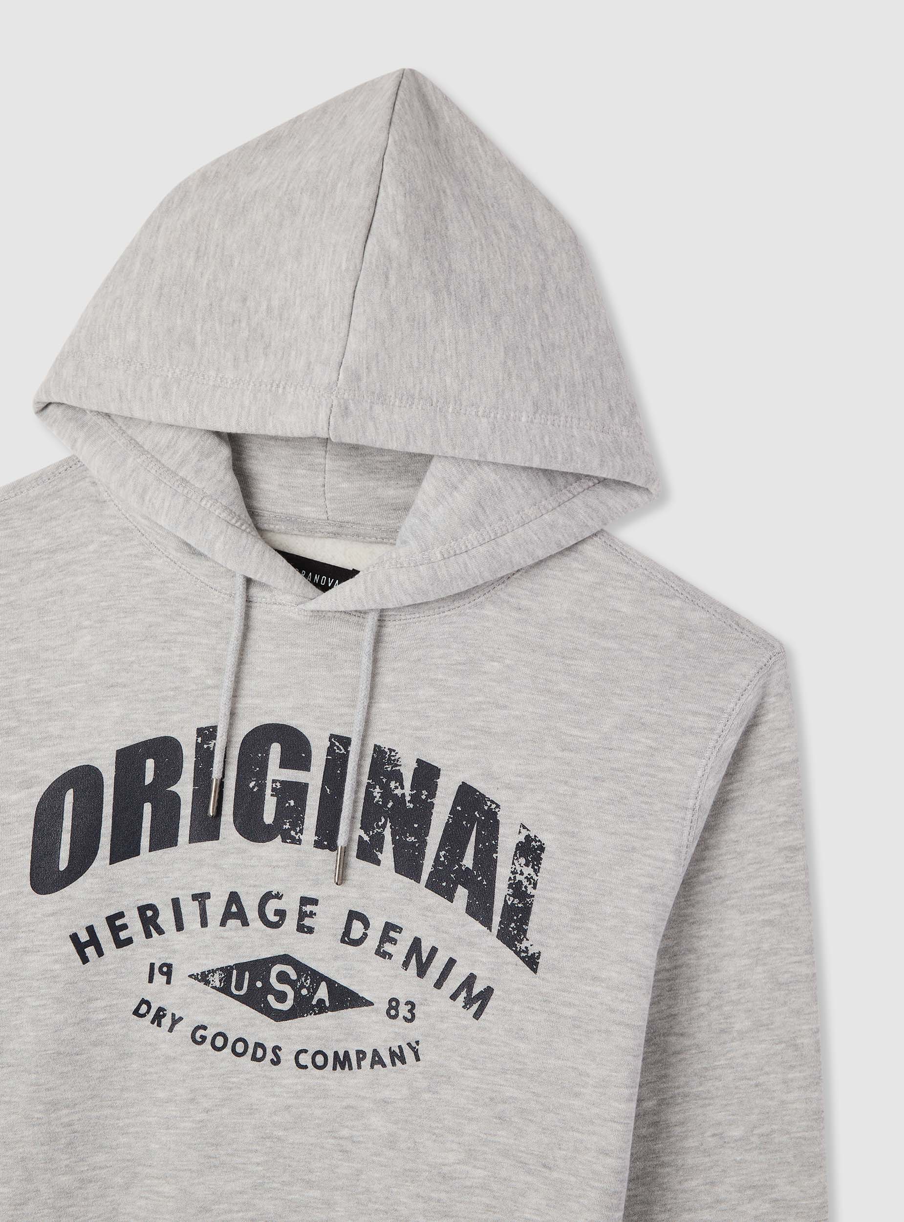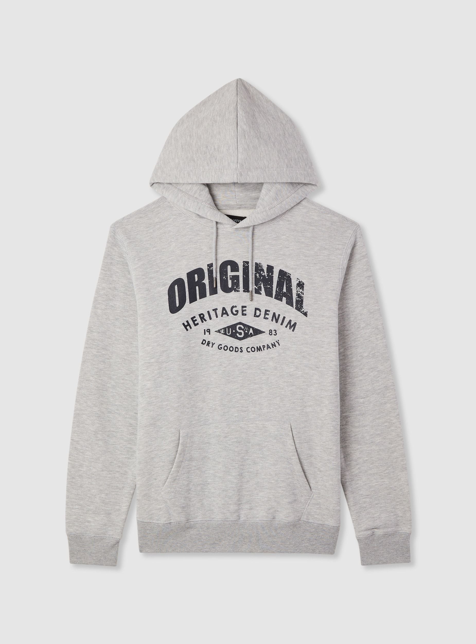 Felpa da uomo con cappuccio e senza zip, ideale per look casual e street. Modello leggero con coulisse regolabile, maniche lunghe e finiture a costine su polsini e fondo per una vestibilità comoda. La stampa con scritta sul petto dà carattere e si abbina facilmente a jeans o jogger. Completa di tasca a marsupio per tenere l’essenziale a portata di mano. Tessuto leggero.Dettagli