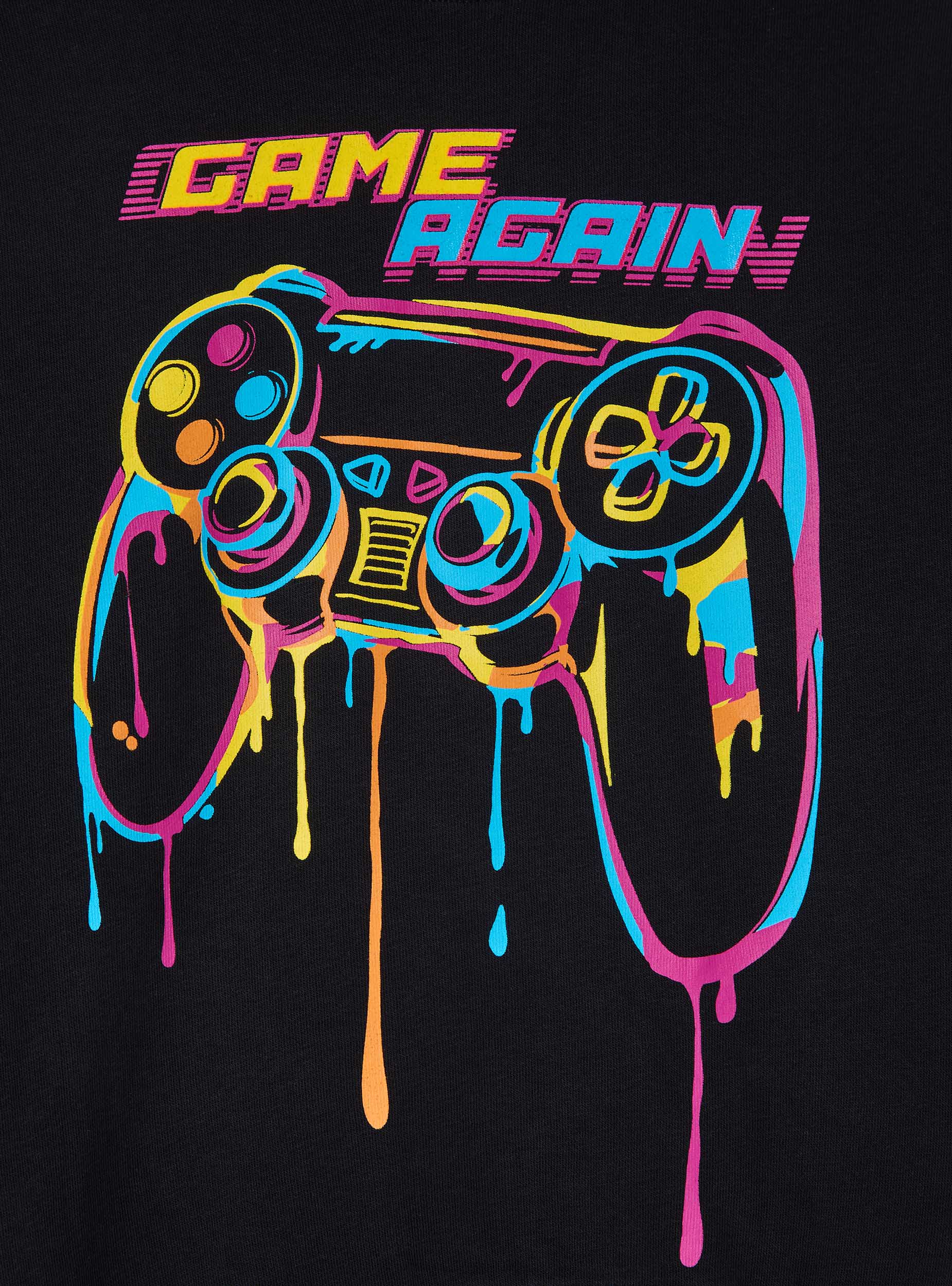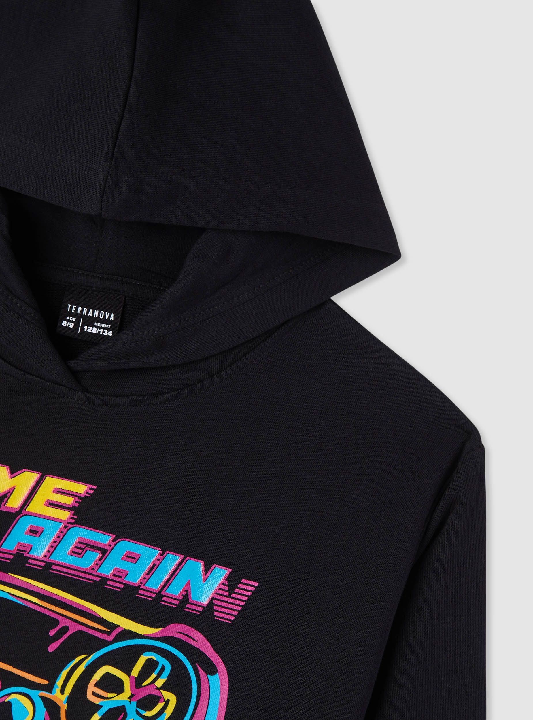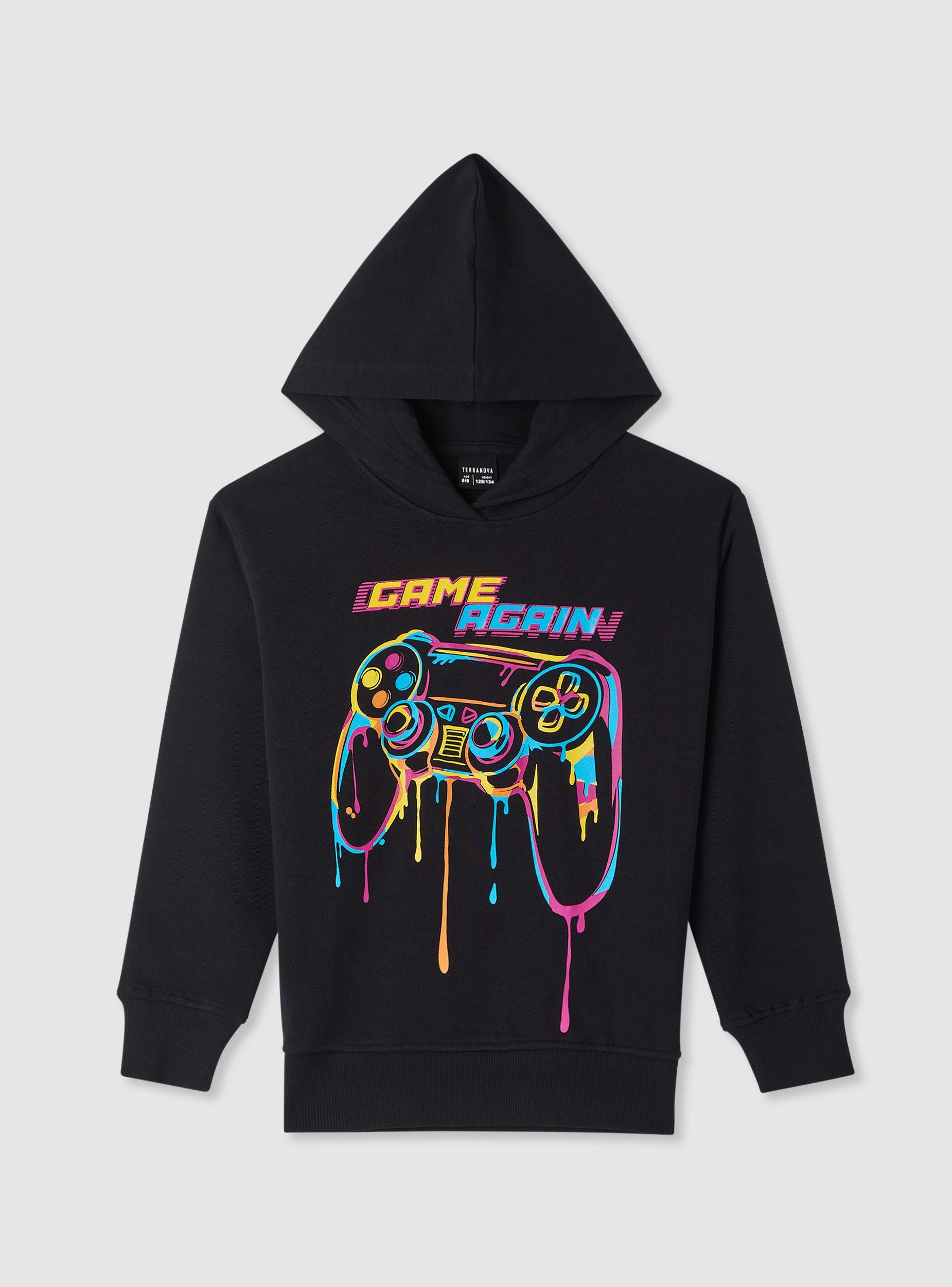 Felpa da bambino con cappuccio senza zip, ideale per la scuola e il tempo libero. Modello a maniche lunghe, fondo con polsini e bordo elastico per una vestibilità comoda. Stampa frontale con stampa gaming dona un tocco trendy. Si abbina a jeans o pantaloni tuta per un look casual. Tessuto leggero.Dettagli