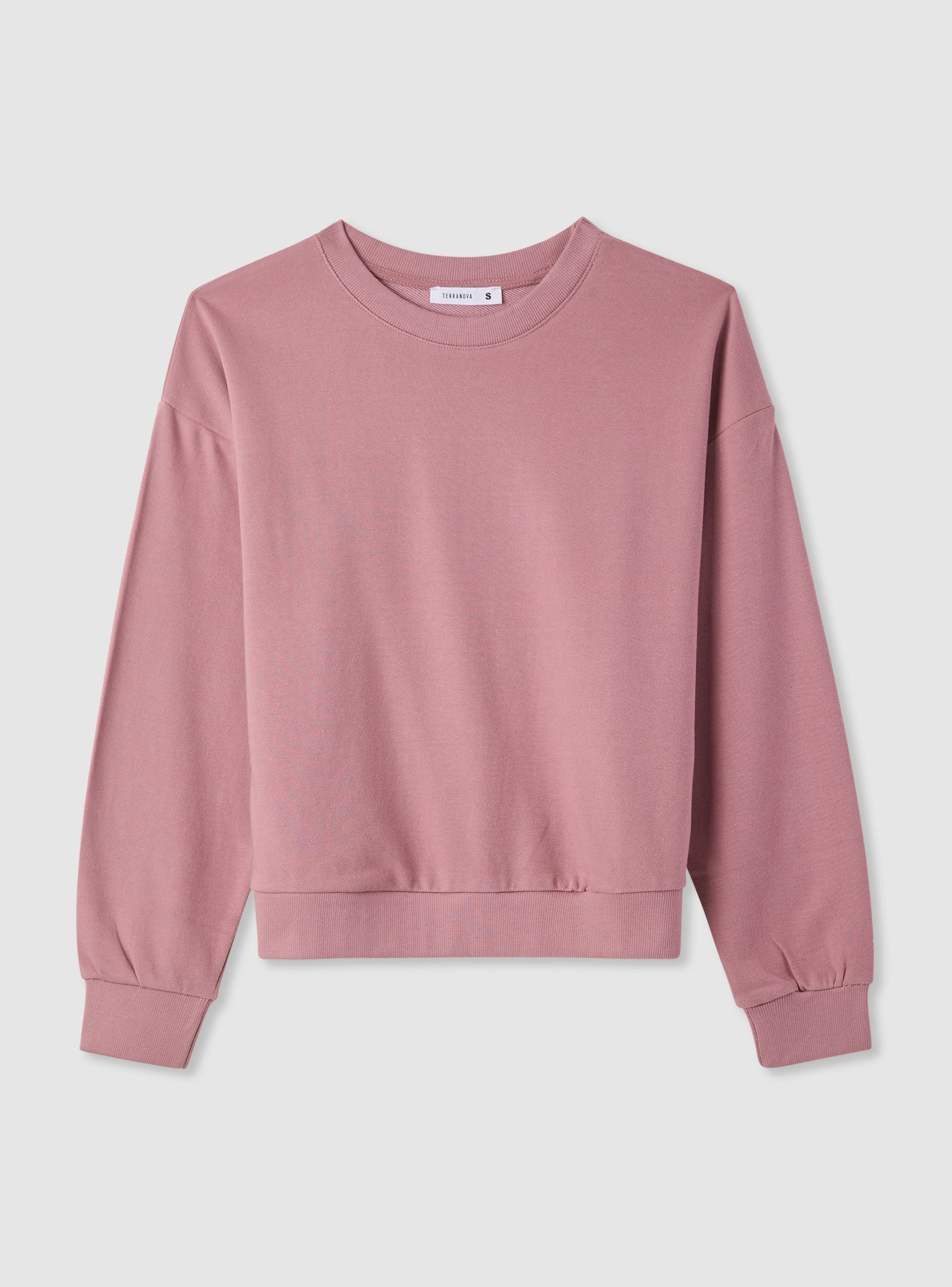 Felpa da donna senza cappuccio e senza zip, a tinta unita. Girocollo a costine, maniche lunghe con polsini elasticizzati e fondo con fascia in maglia per una vestibilità confortevole. Design minimal ideale per il tempo libero e per look casual con jeans o joggers, perfetta anche sotto un cappotto o una giacca. Tessuto leggero.Dettagli