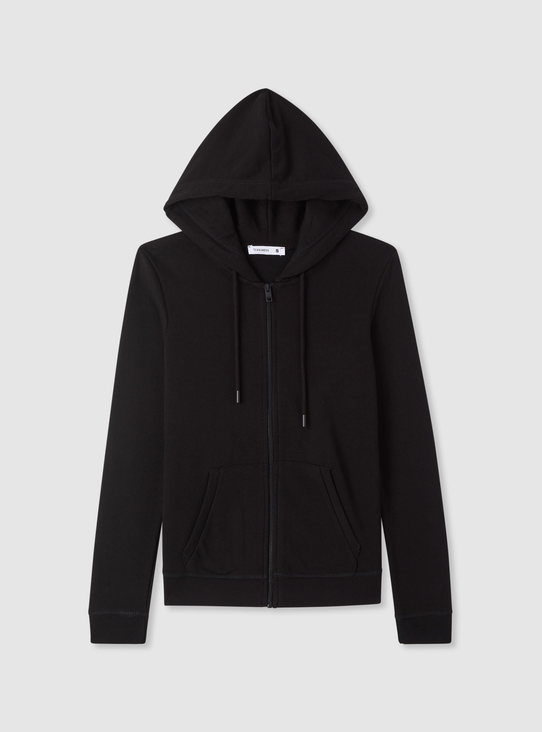 Felpa da donna con cappuccio e zip frontale, tinta unita. Modello con maniche lunghe e polsini a costine, ideale per il tempo libero o per completare look casual con jeans e sneakers. Presenta tasche a marsupio sul davanti e cordini regolabili al cappuccio. Vestibilità regular. Tessuto leggero.Dettagli