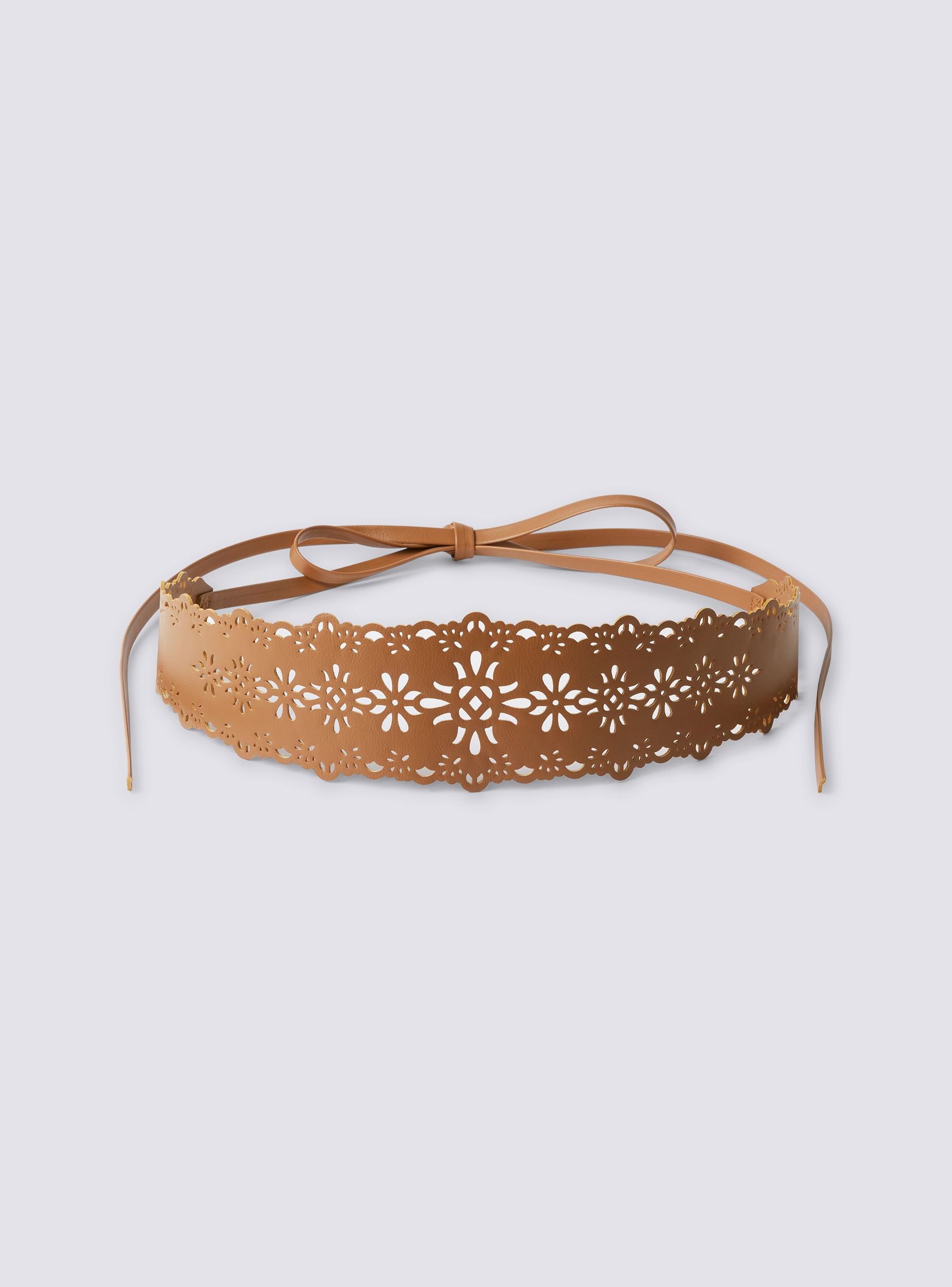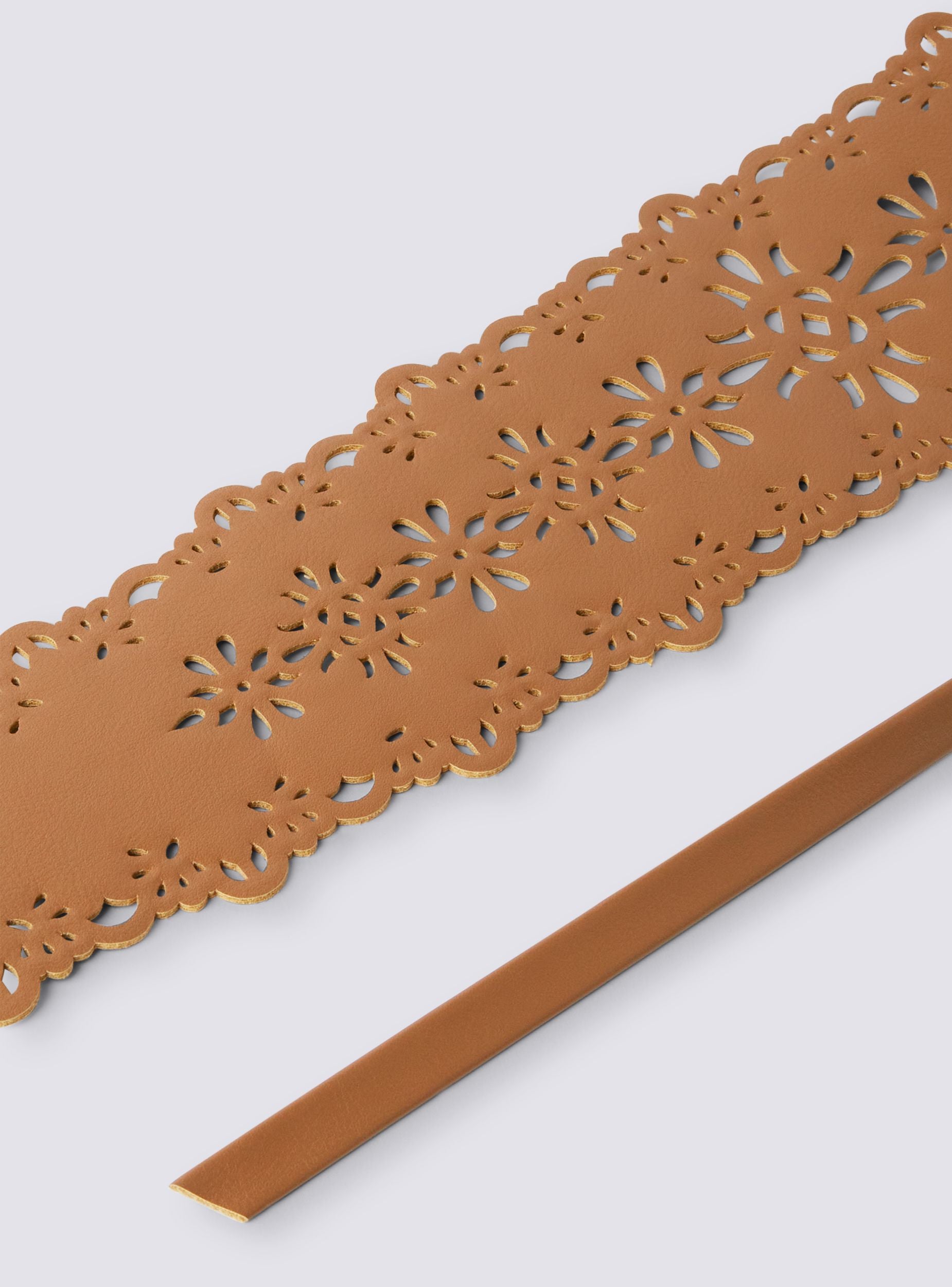 Fusciacca da donna in similpelle effetto sangallo, perfetta per aggiungere un tocco boho-chic ai tuoi outfit. Il design traforato con motivo floreale dona un aspetto romantico e raffinato, mentre la chiusura a laccio permette di regolare la vestibilità in base alla propria silhouette. Ideale per valorizzare abiti lunghi, gonne o look casual, questa fusciacca unisce eleganza e versatilità, diventando un accessorio indispensabile per chi ama dettagli femminili e di tendenza.Dettagli