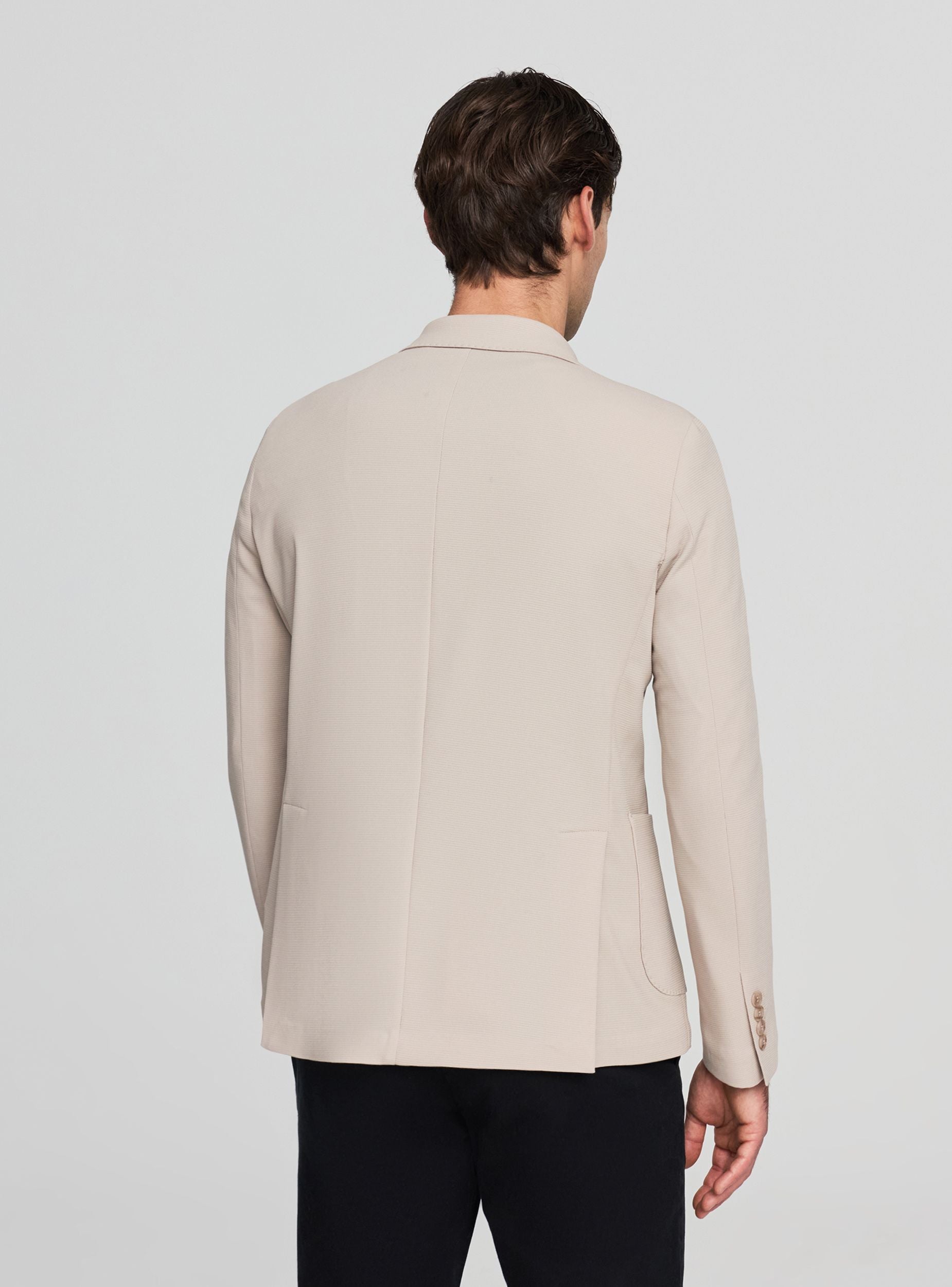 Giacca da uomo a tinta unita con linea regular e doppio petto. Revers a lancia e taschino sul petto, tasche inferiori a toppa e chiusura a bottoni. Perfetta per cerimonie, ufficio o occasioni eleganti, si abbina a camicia e pantaloni sartoriali o a maglietta e chino per un look urbano raffinato. Collo strutturato, maniche lunghe e design pulito, ideale per valorizzare outfit formali e casual.Dettagli