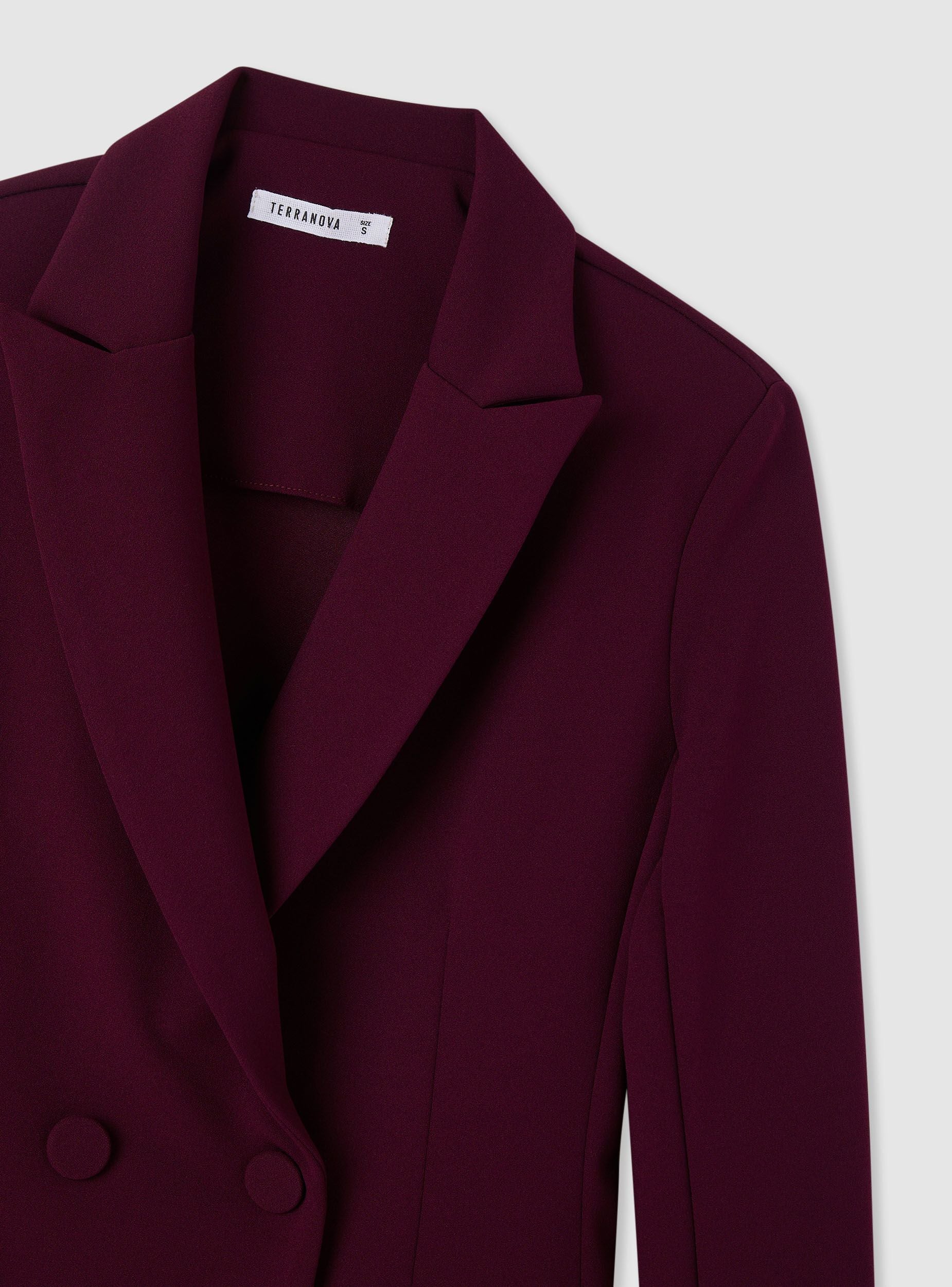 Giacca da donna tinta unita con chiusura doppiopetto e revers a lancia. Vestibilità regular e lunghezza al fianco, ideale per look da ufficio o eventi serali. Presenta maniche lunghe, tasche frontali a filetto e bottoni rivestiti tono su tono. Facile da abbinare a camicie e pantaloni sartoriali, ma anche a maglietta e jeans per un outfit smart casual. Linee pulite che valorizzano la silhouette e donano un tocco ricercato.Dettagli