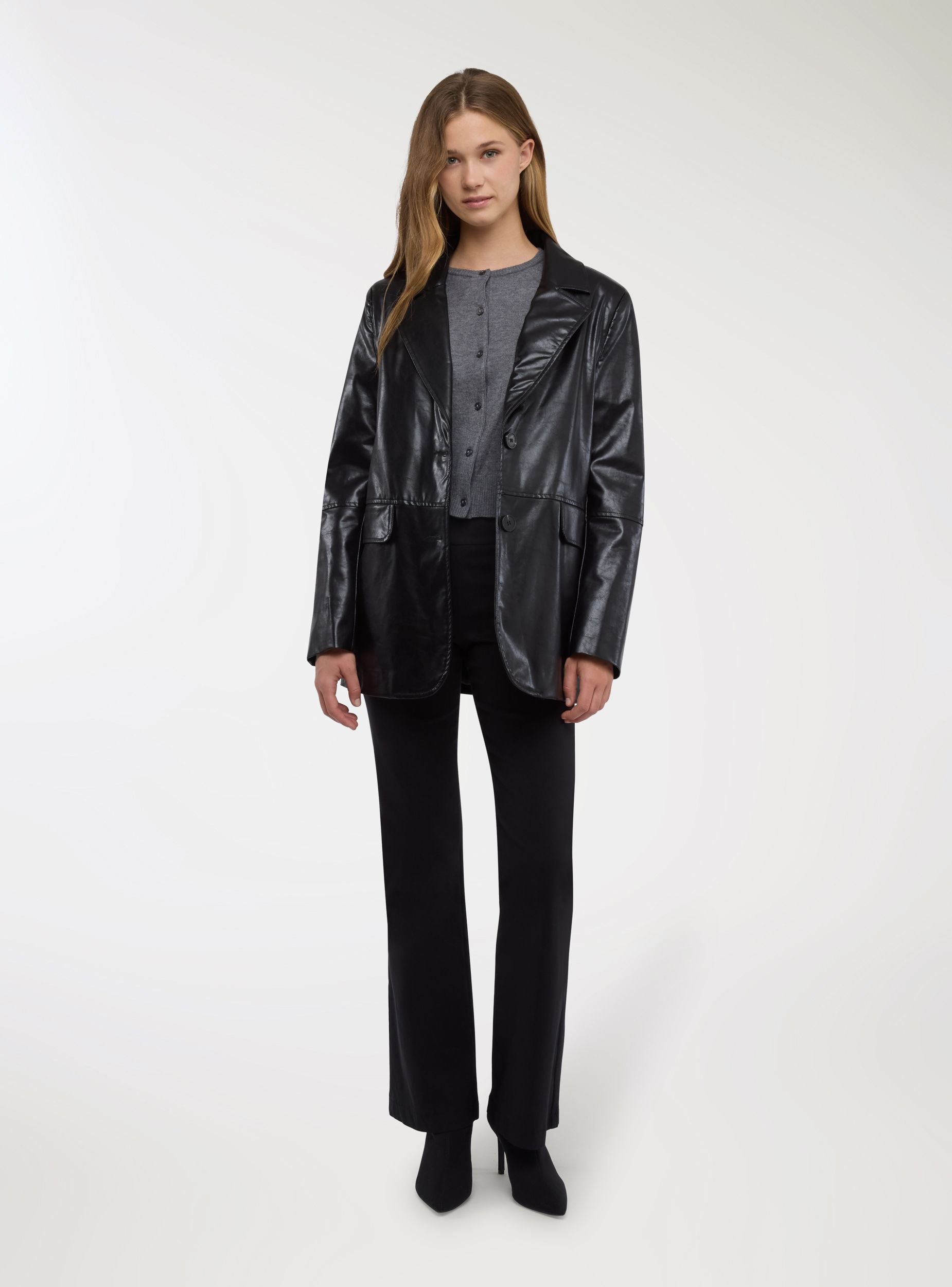 Giacca da donna a tinta unita dal taglio regular, ideale per look urban o da sera. Modello monopetto con due bottoni, colletto con revers e maniche lunghe. Presenta tasche con patta davanti e fodera interna per maggiore comfort. Perfetta su camicie e jeans per il giorno o abbinata a pantaloni eleganti per un outfit raffinatoDettagli