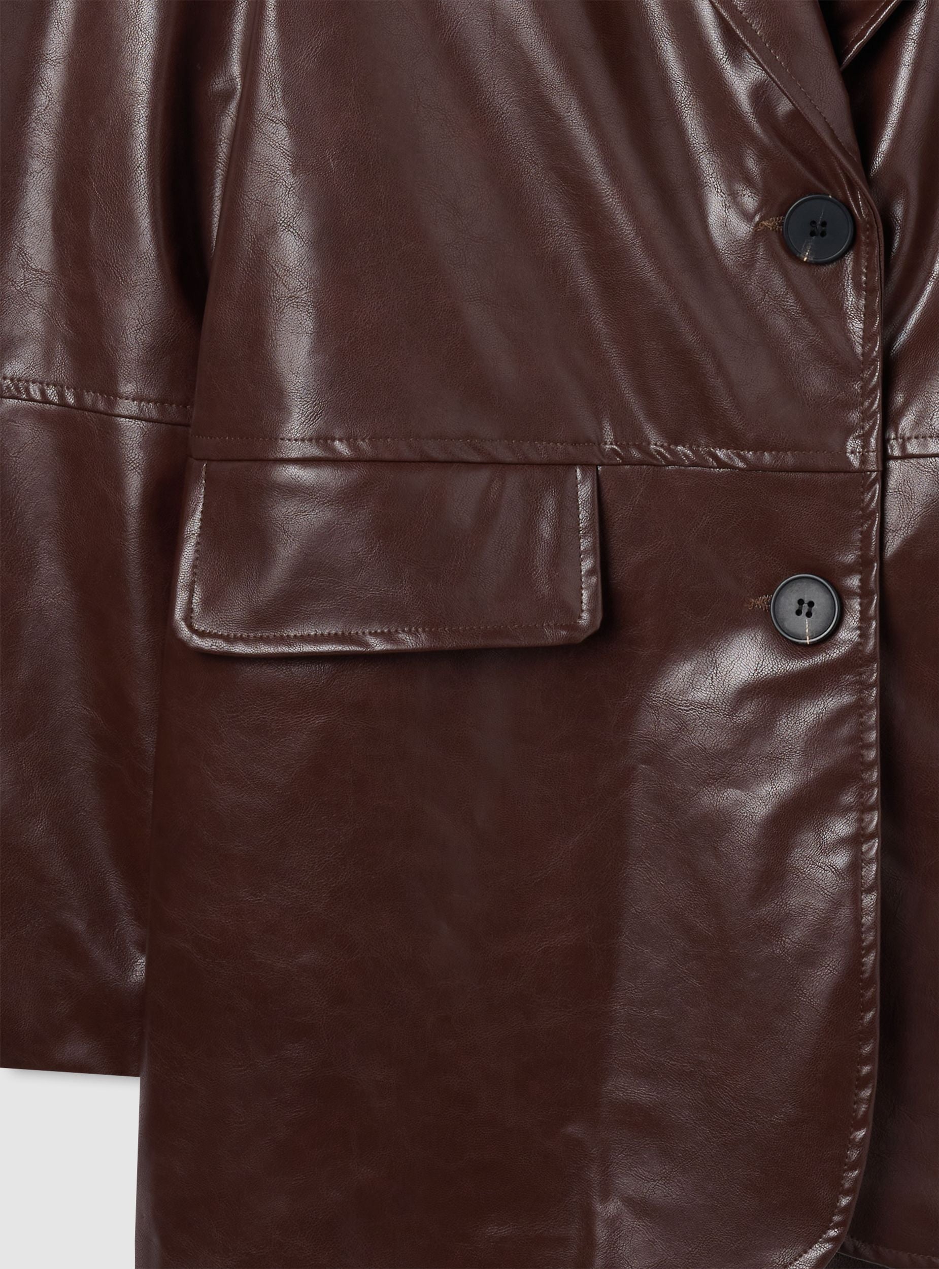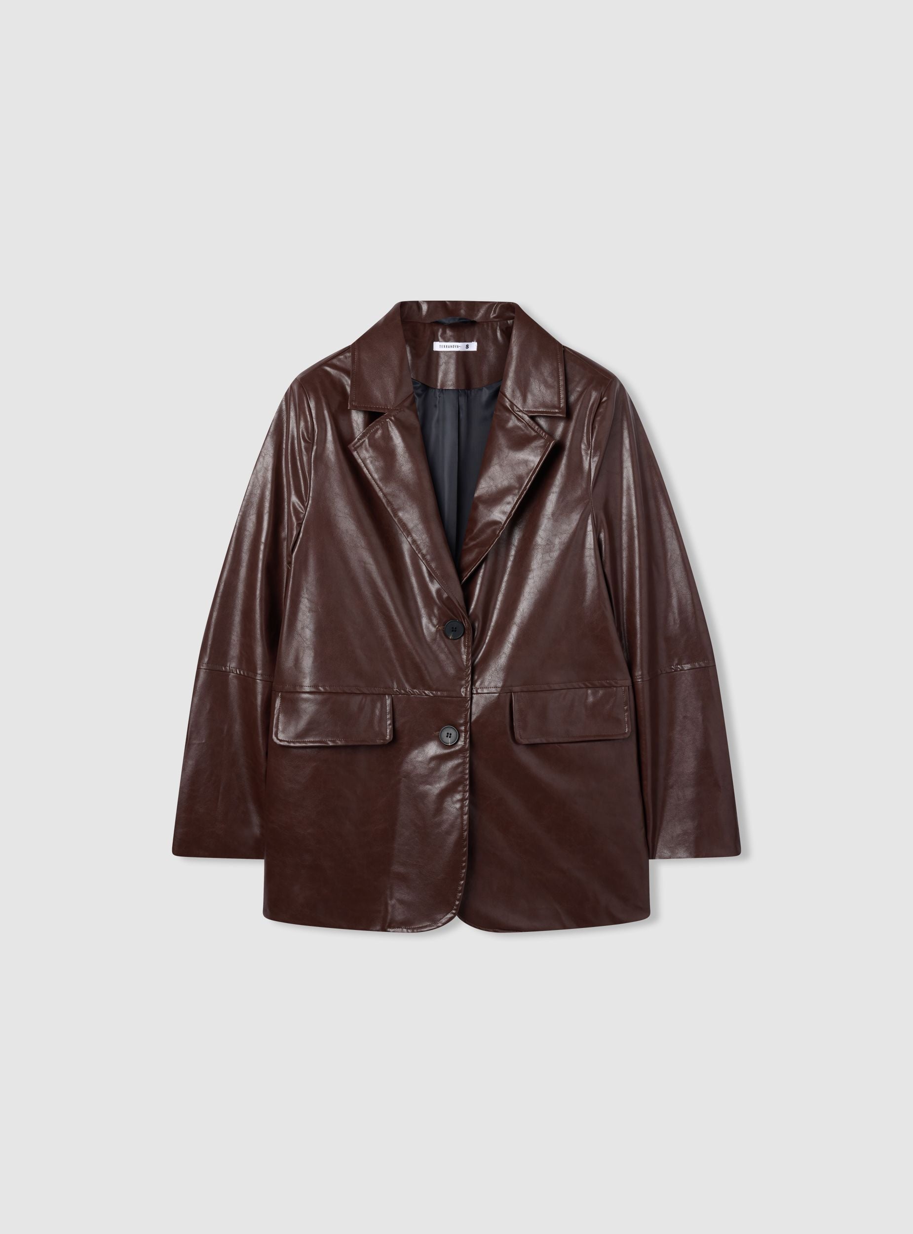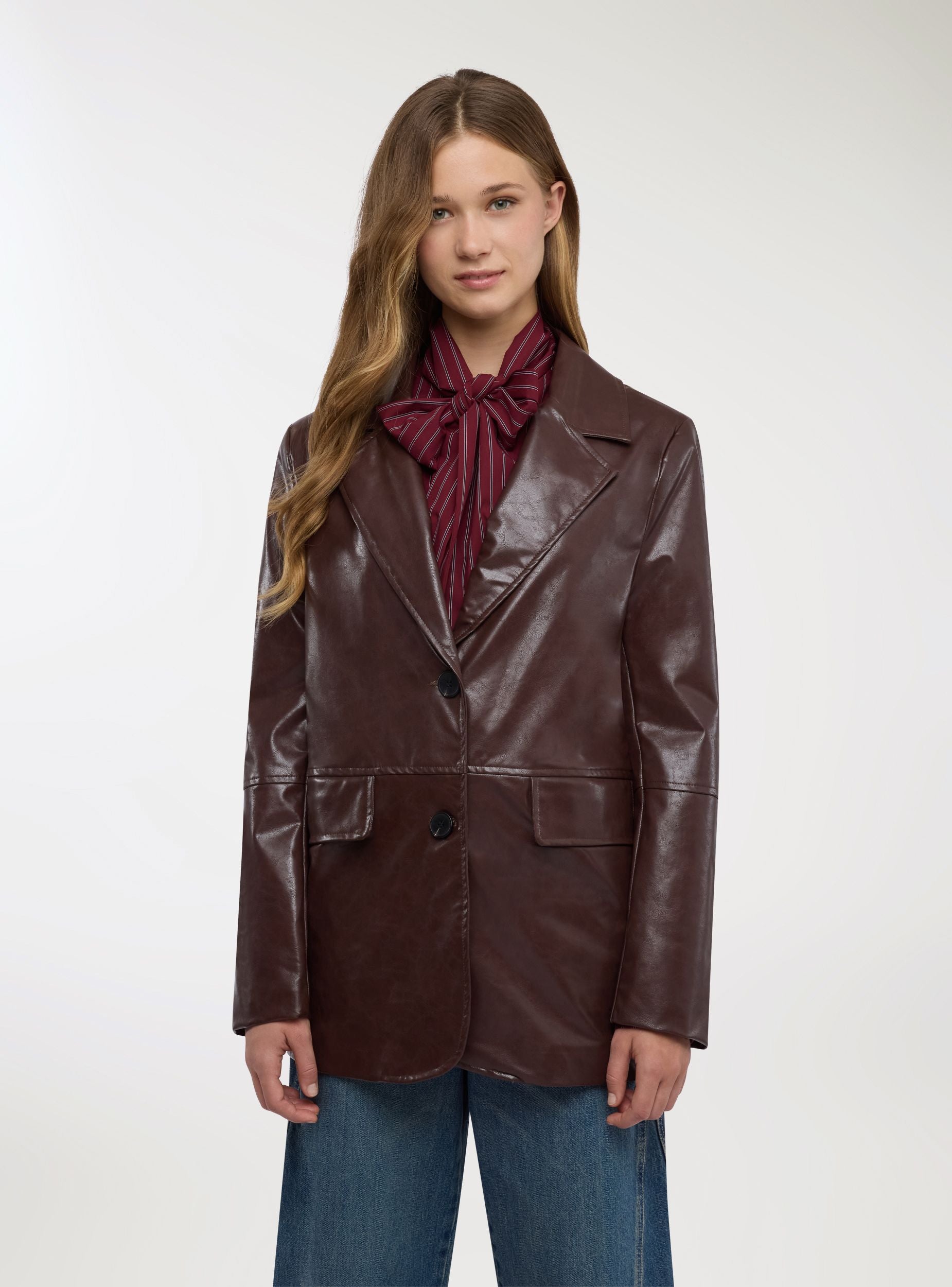 Giacca da donna a tinta unita con linea regular e taglio monopetto a due bottoni. Rever classico e maniche lunghe, ideale su camicie o dolcevita per look da ufficio o uscite serali. Presenta tasche frontali a pattina e fodera interna, perfetta da abbinare a jeans o pantaloni eleganti.Dettagli