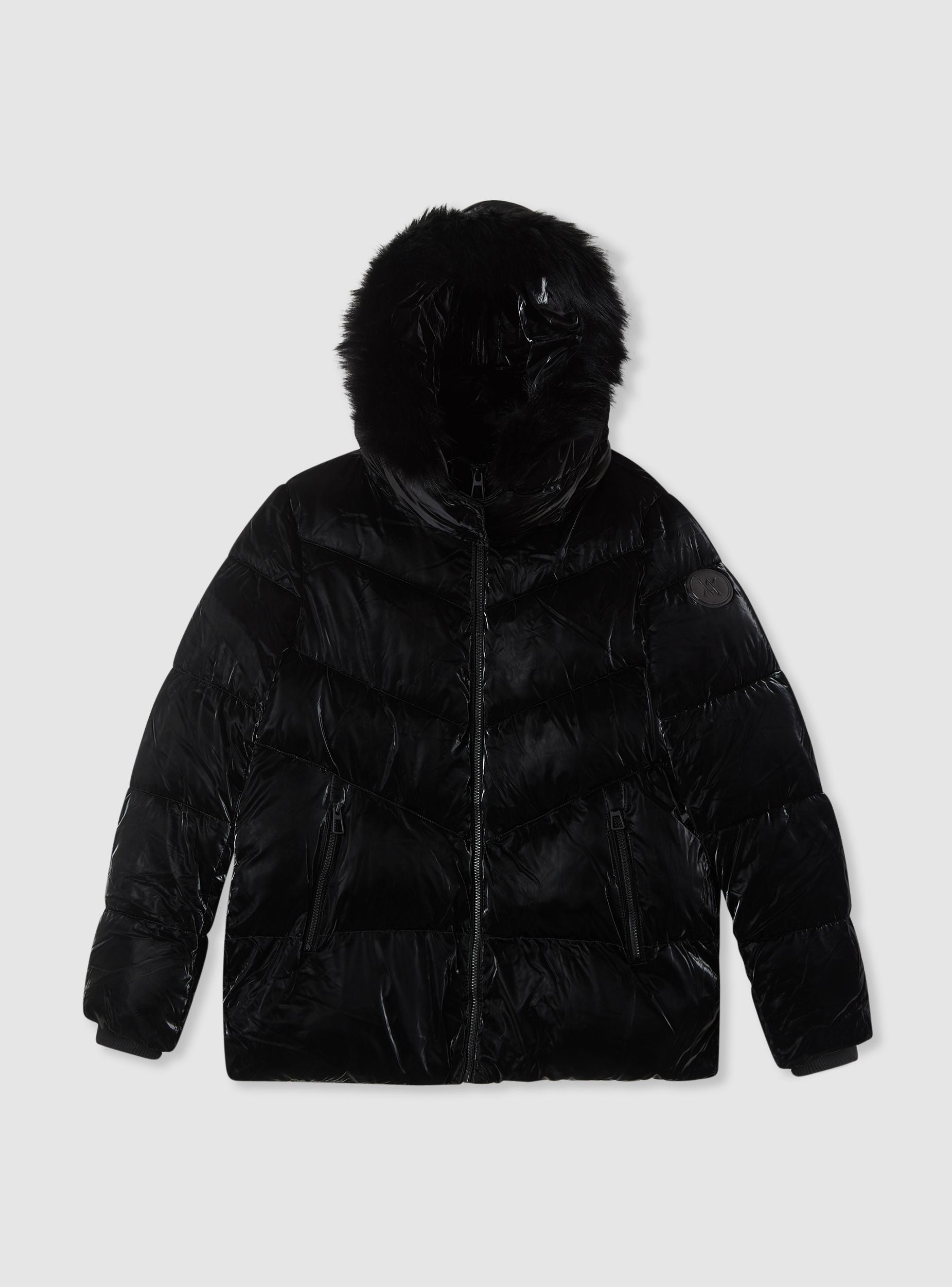 Giubbotto imbottito da donna con cappuccio ampio e profilo peloso, ideale per i giorni freddi in cittá e nel tempo libero. Chiusura frontale con zip e patta con bottoni, tasche laterali con zip e trapuntatura diagonale che valorizza la silhouette. Lunghezza normale e maniche lunghe con polsini a coste per maggiore comfort. Perfetto su maglione e jeans per un look casual e funzionale. Tinta unita.Dettagli