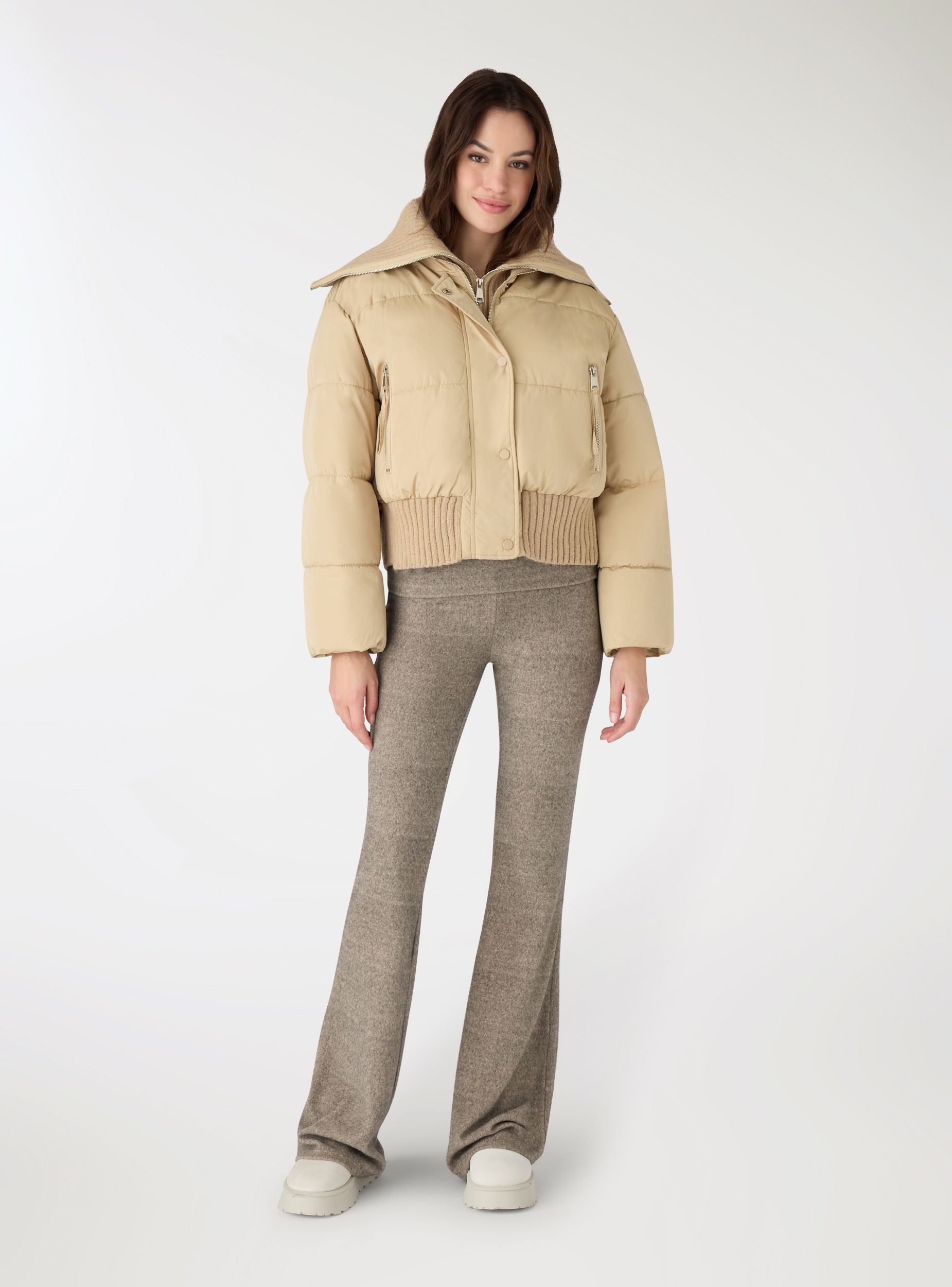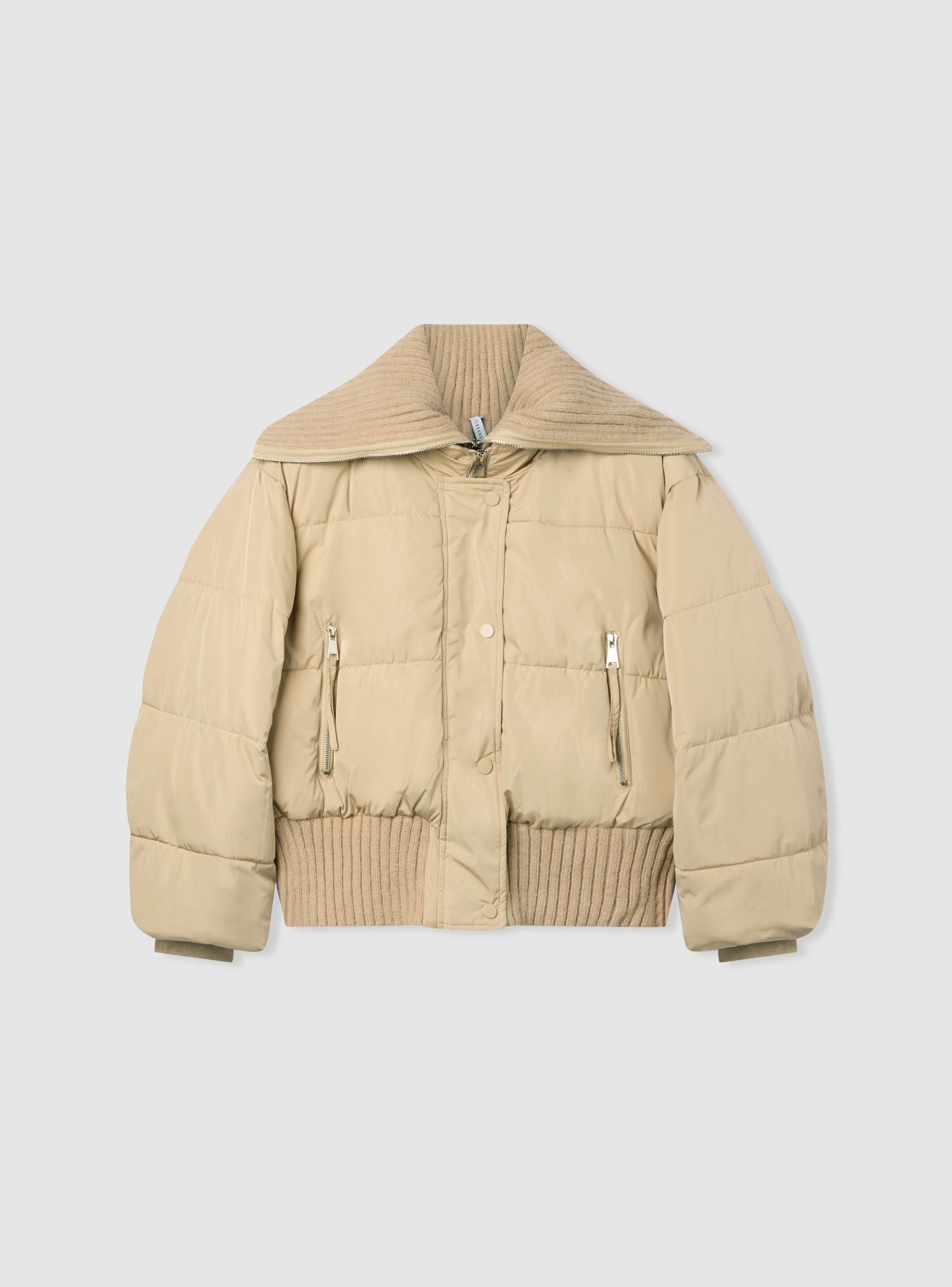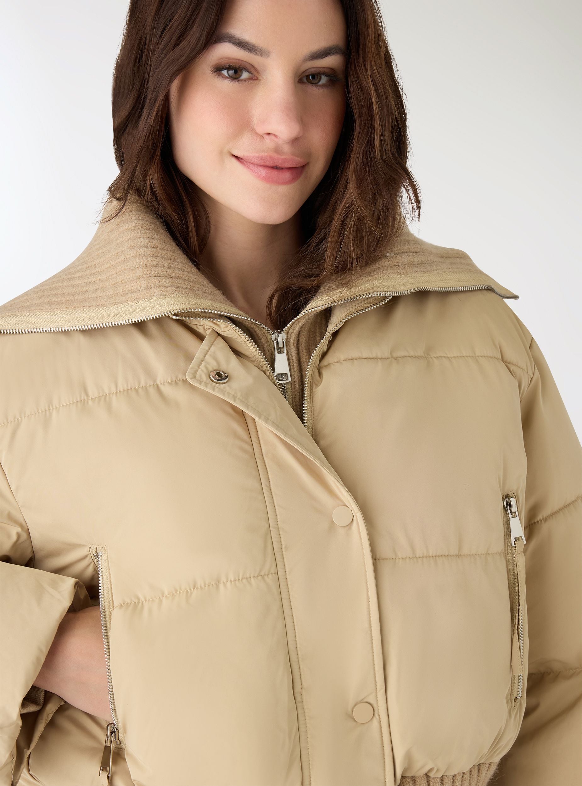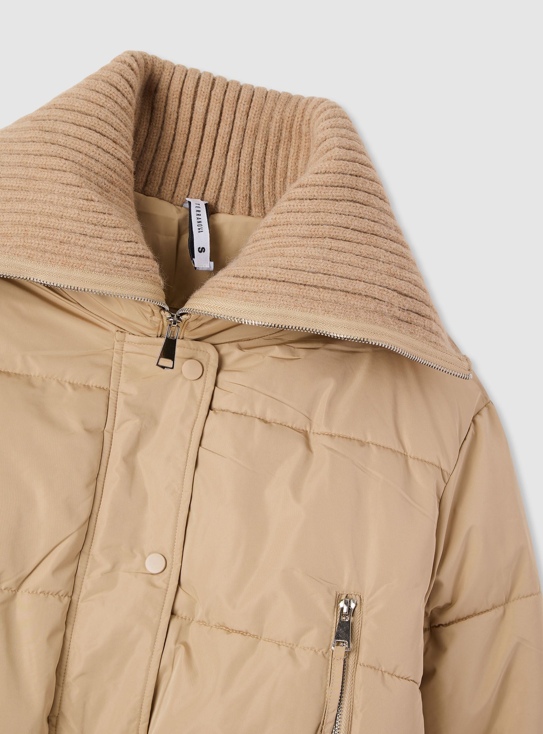 Giubbotto imbottito da donna a tinta unita con vestibilità regular. Design ideale per giornate fredde, collo ampio a doppia zip che si apre per protezione modulabile, chiusura frontale con zip e pattina con bottoni a pressione. Tasche laterali con zip e orli a coste su vita e polsini per maggiore aderenza. Perfetto su jeans e stivaletti per il tempo libero o su pantaloni dritti per un look urbano.Dettagli