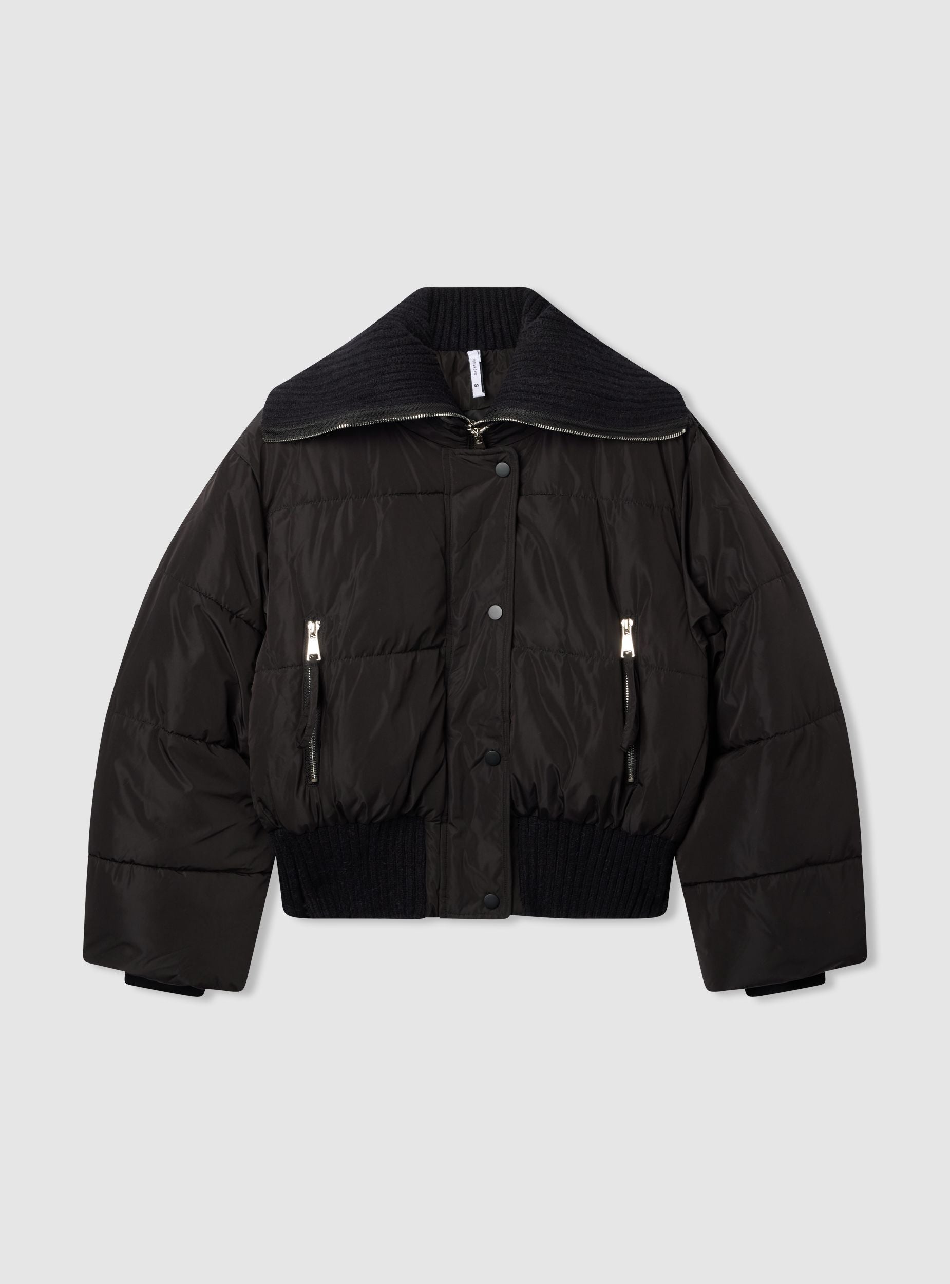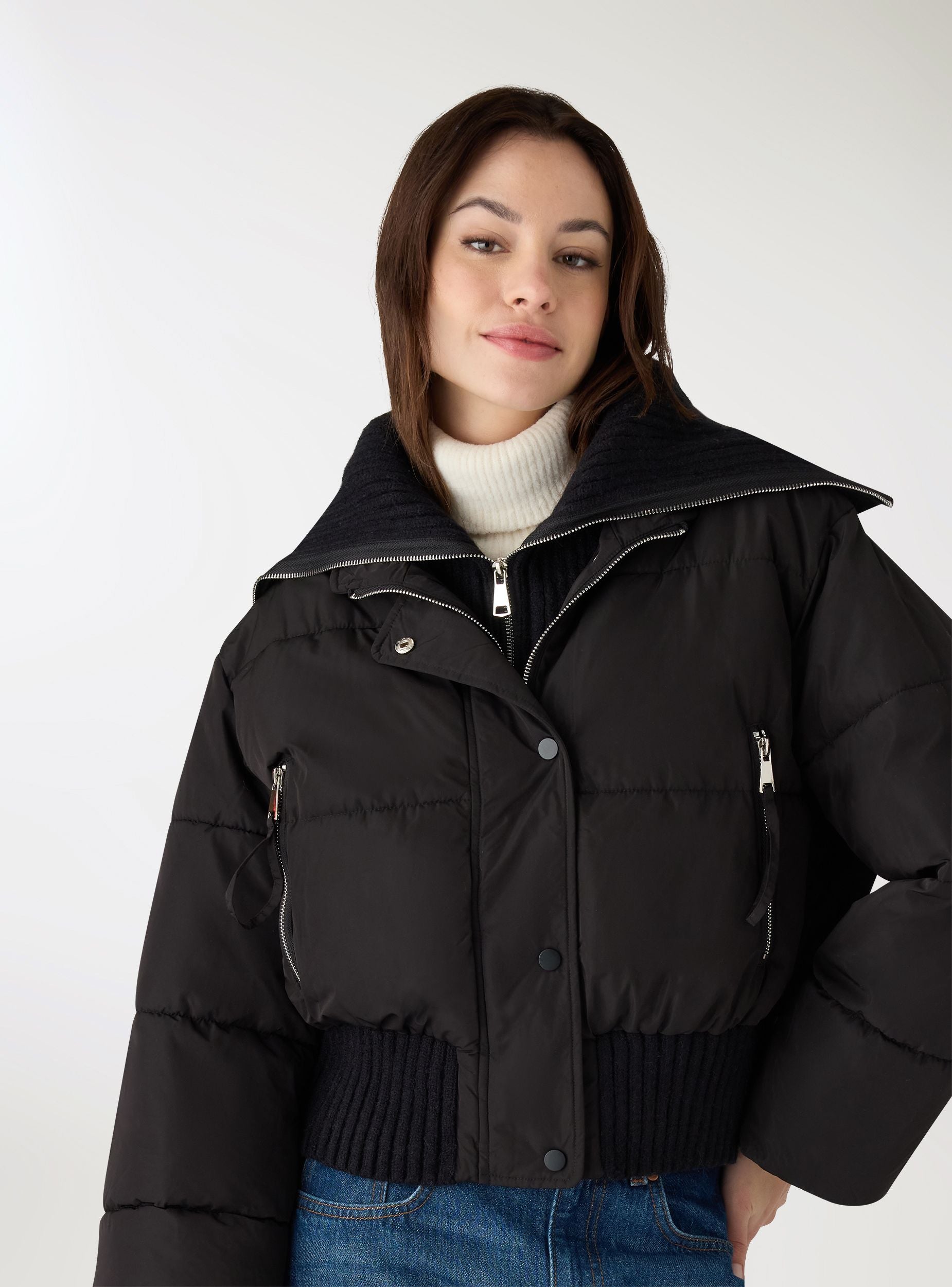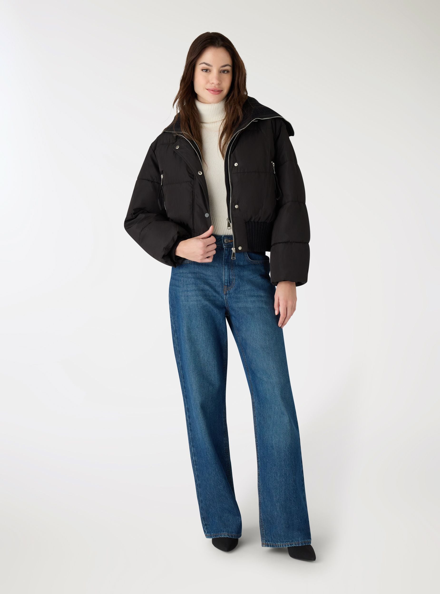 Giubbotto imbottito da donna a tinta unita con vestibilità regular. Design ideale per giornate fredde, collo ampio a doppia zip che si apre per protezione modulabile, chiusura frontale con zip e pattina con bottoni a pressione. Tasche laterali con zip e orli a coste su vita e polsini per maggiore aderenza. Perfetto su jeans e stivaletti per il tempo libero o su pantaloni dritti per un look urbano.Dettagli