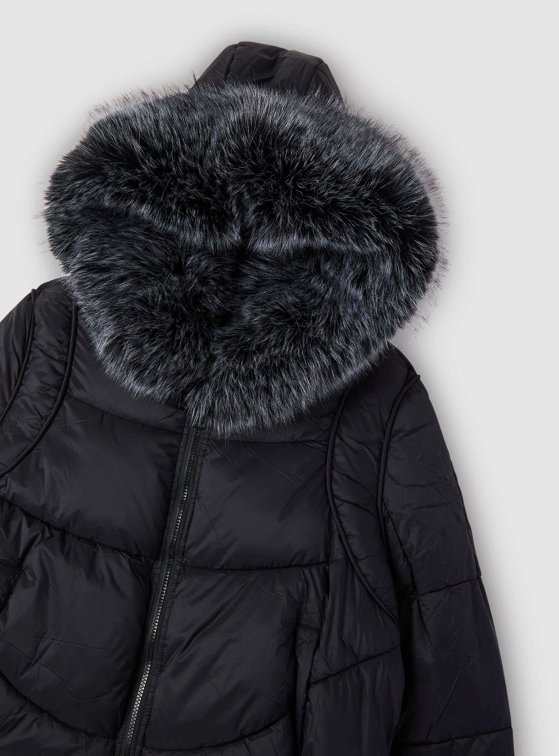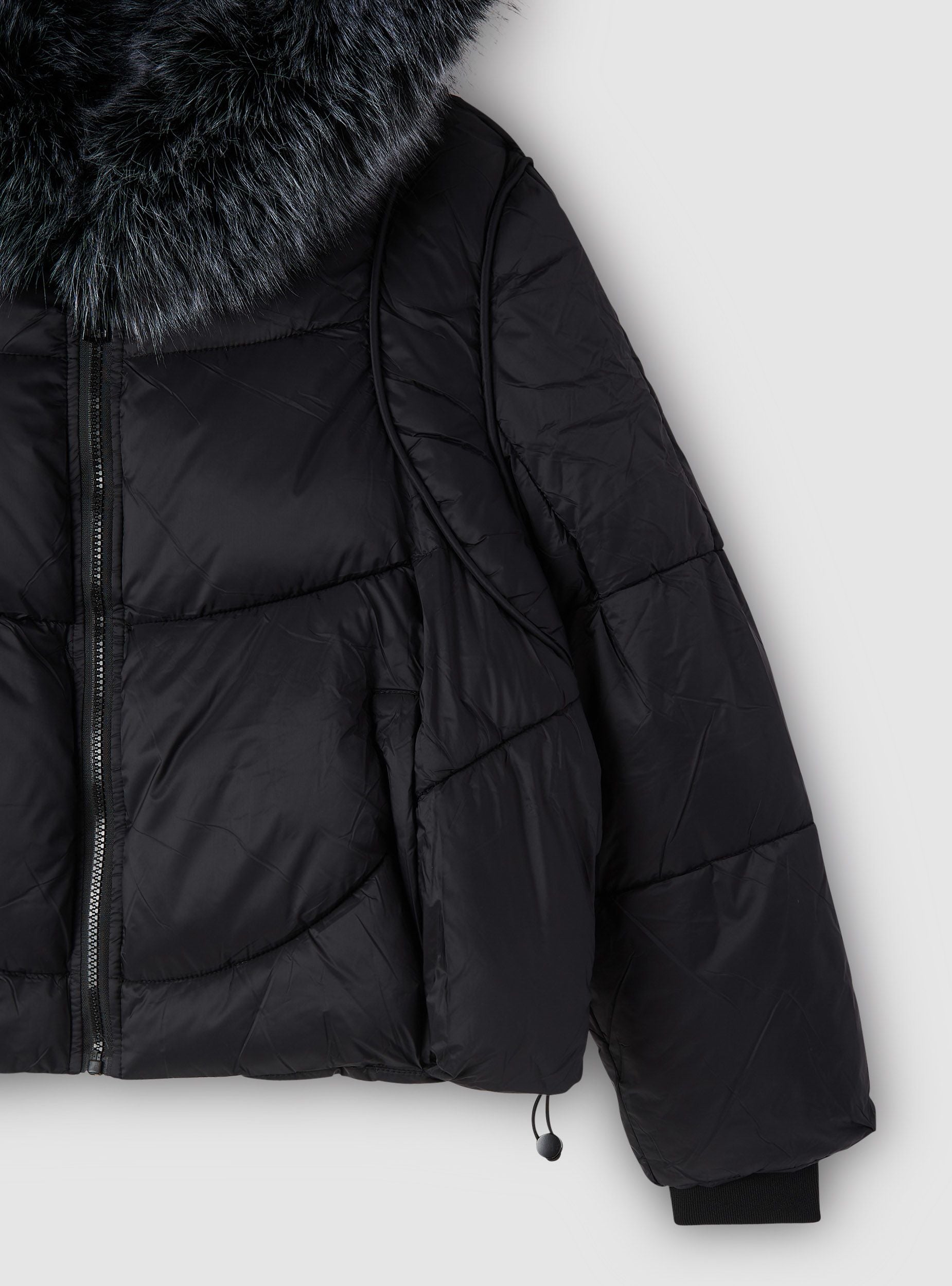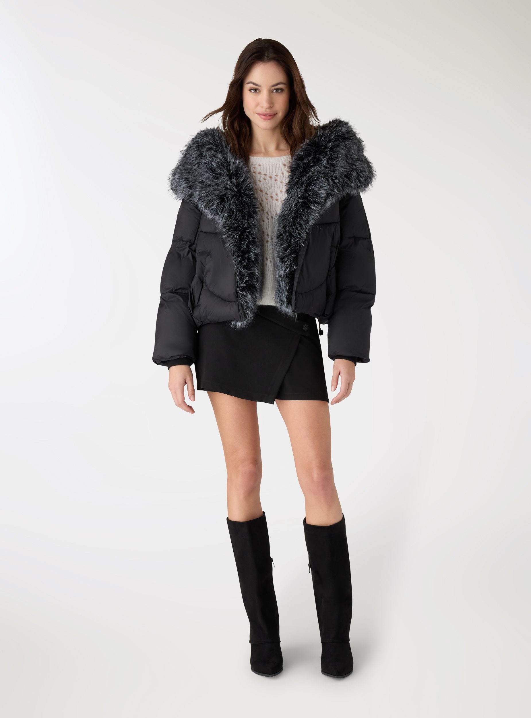 Giubbotto imbottito da donna a tinta unita, lunghezza corta, con cappuccio ampio rifinito da bordo peloso e chiusura con zip frontale. Dal design curvilineo e fondo regolabile con coulisse. Polsi in maglia per maggiore comfort e protezione dal freddo. Ideale per look cittadini e tempo libero, da abbinare a jeans e anfibi o a leggings e stivali per uno stile pratico e accogliente.Dettagli