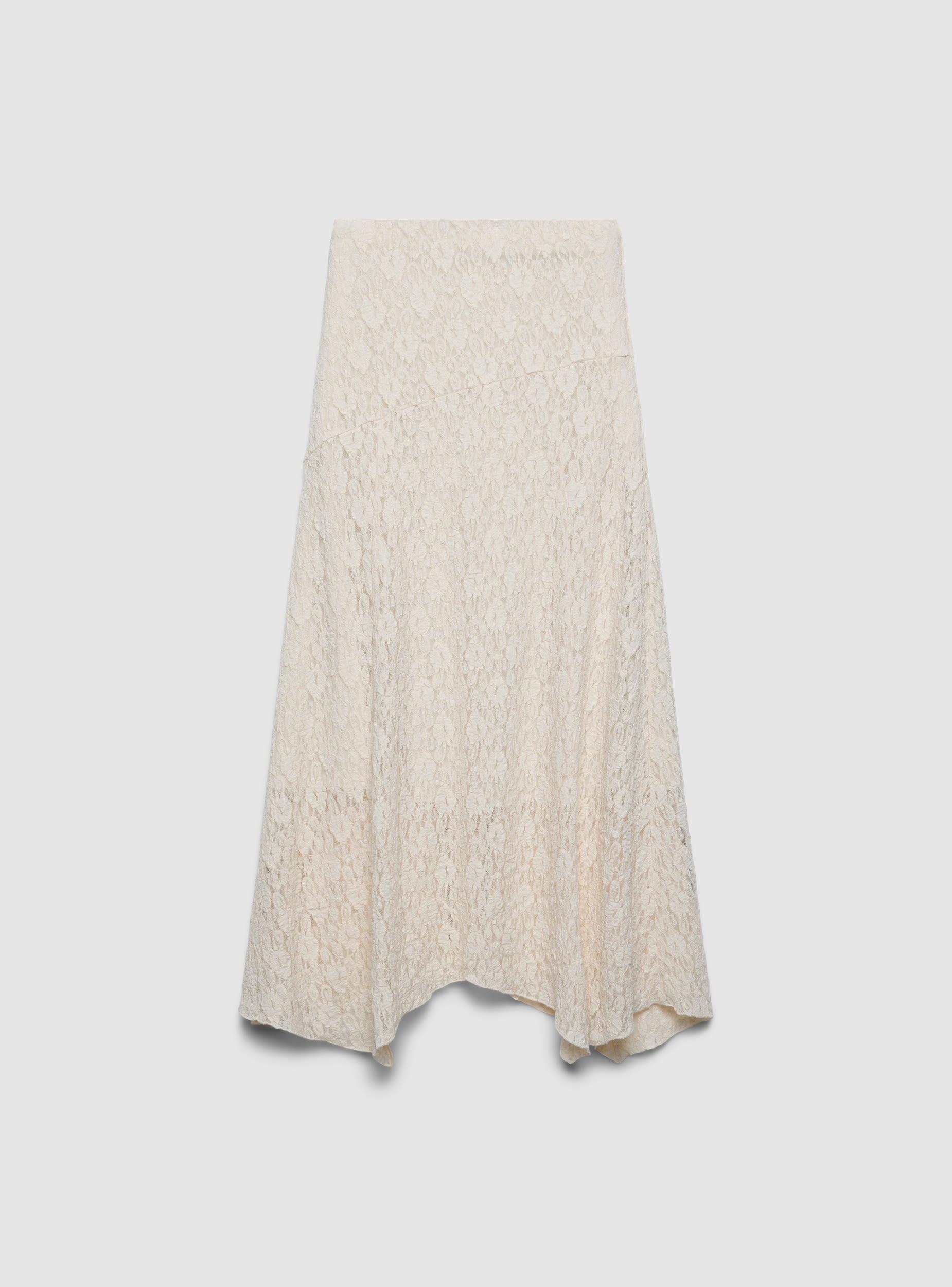 Gonna da donna a tinta unita con linea svasata e orlo asimmetrico, perfetta per look femminili da giorno o serata. Il motivo in pizzo aggiunge un tocco romantico, mentre la fascia in vita valorizza la silhouette e assicura comfort. Indossala con una camicetta e sandali per un outfit chic oppure con una maglietta e stivaletti per un contrasto moderno.Dettagli