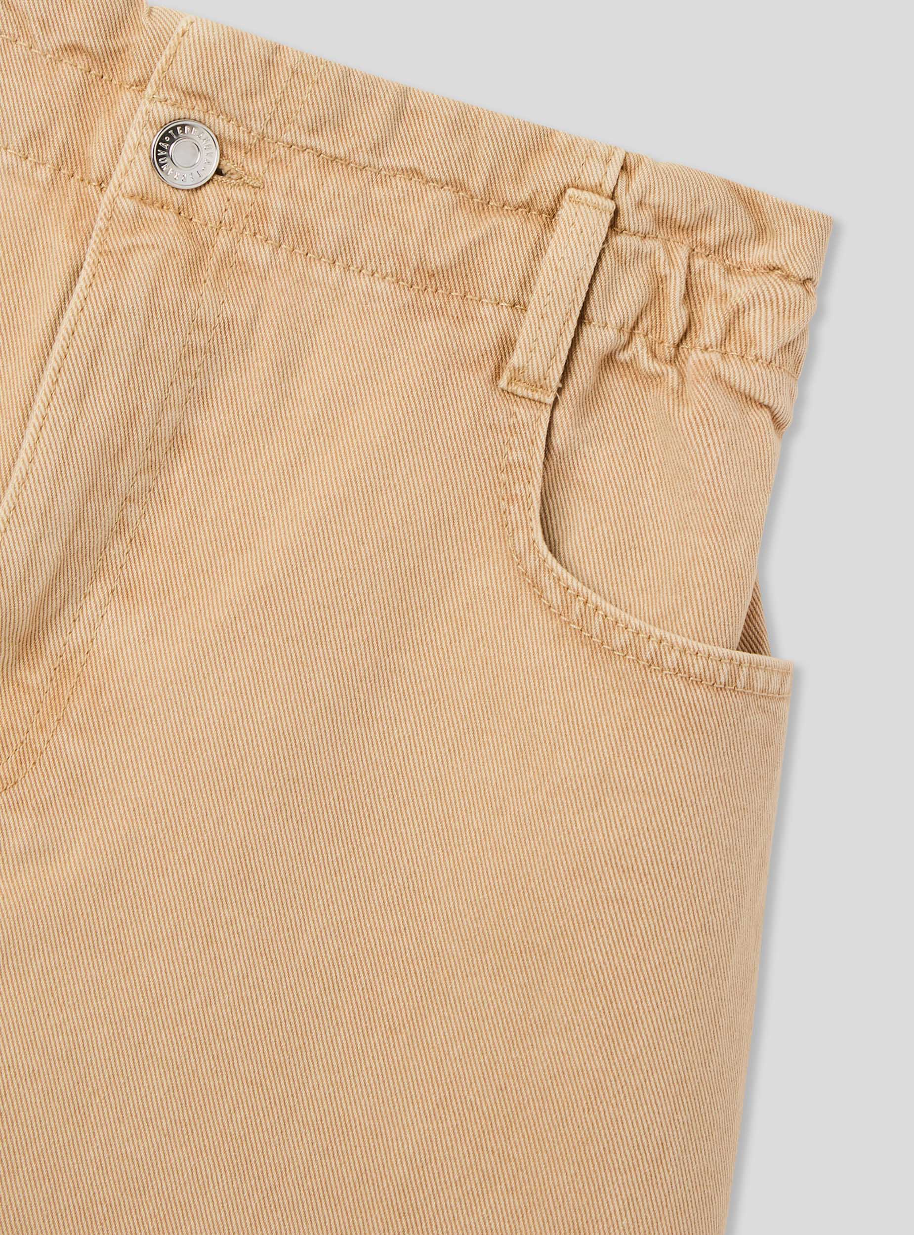 Gonna da donna a tinta unita, dallo stile moderno e versatile. La lunghezza corta si combina con la chiusura con bottone e zip, mentre i passanti in vita e il design paperbag aggiungono un tocco di carattere. Dotata di tasche frontali e posteriori, è perfetta per creare look casual e femminili, ideali per ogni occasione.Dettagli
