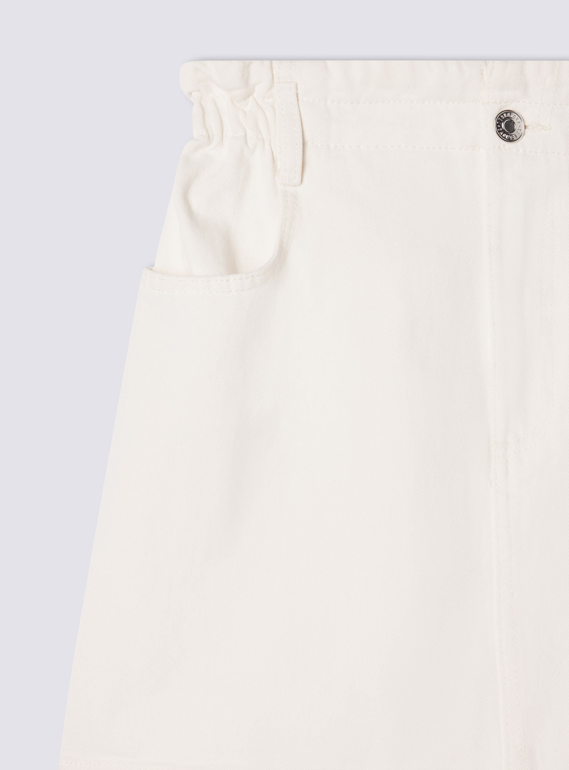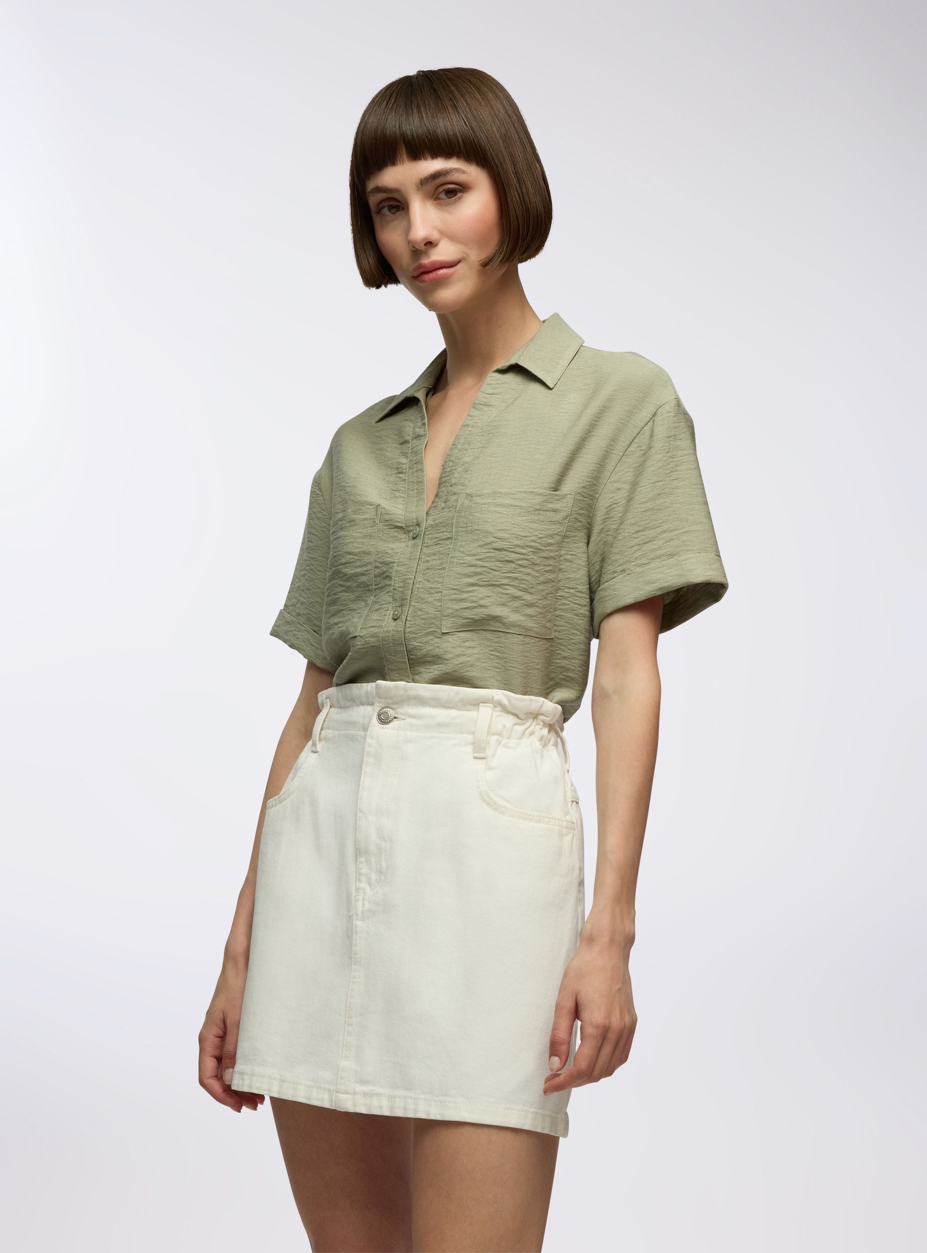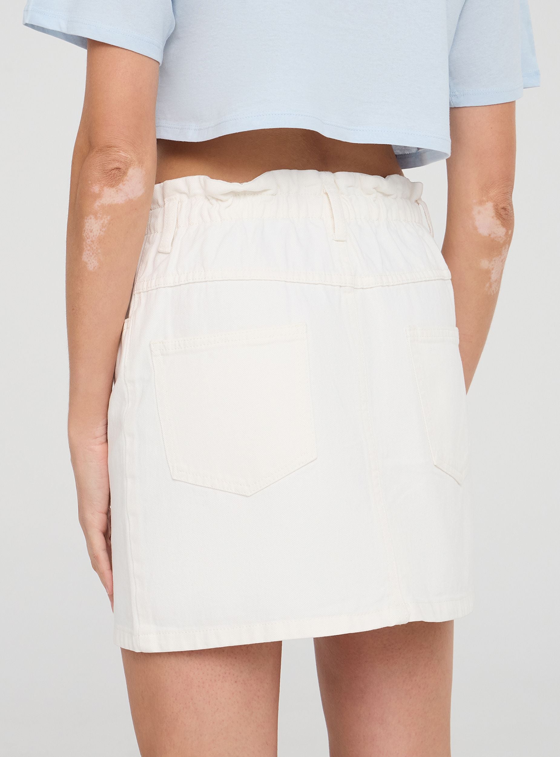 Gonna da donna a tinta unita, dallo stile moderno e versatile. La lunghezza corta si combina con la chiusura con bottone e zip, mentre i passanti in vita e il design paperbag aggiungono un tocco di carattere. Dotata di tasche frontali e posteriori, è perfetta per creare look casual e femminili, ideali per ogni occasione.Dettagli