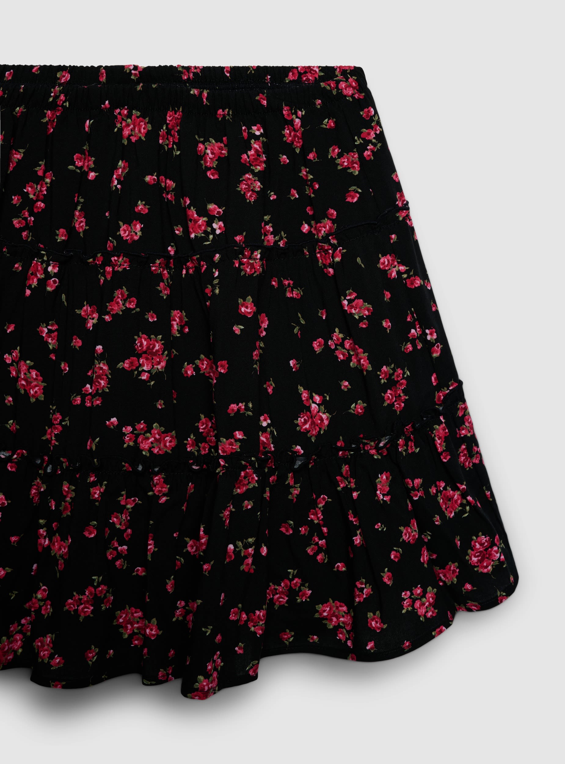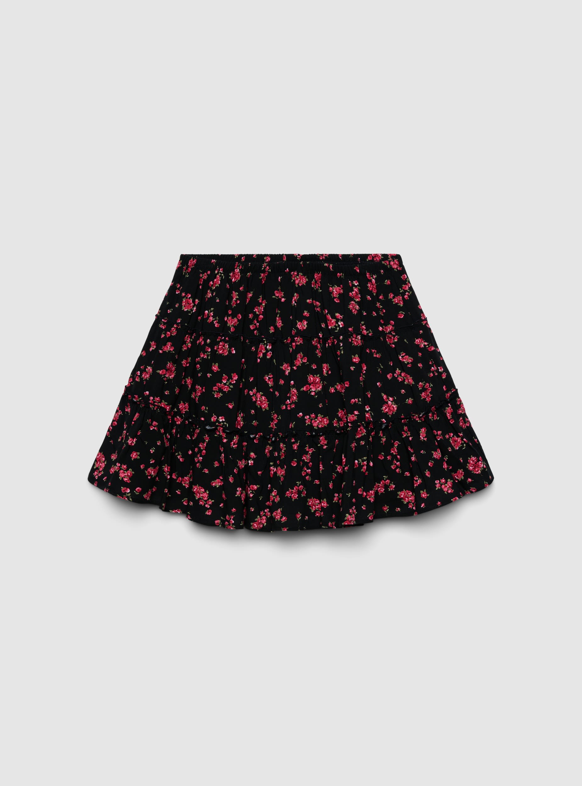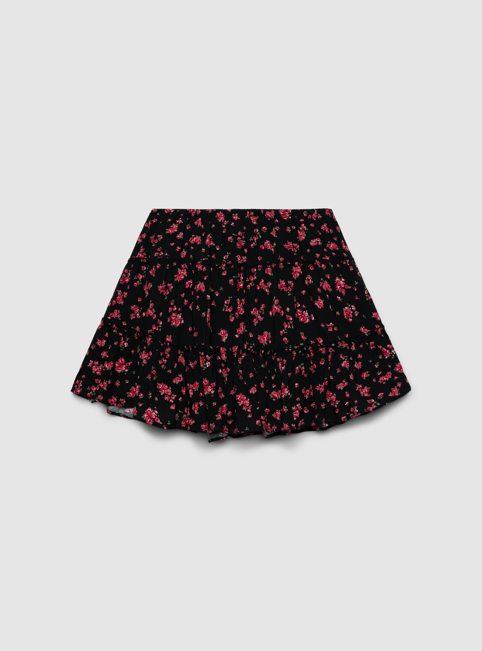 Gonna da donna mini con stampa floreale, pensata per look freschi e femminili. La vita con elastico assicura comfort e una vestibilità pratica, mentre la costruzione a balze con piccoli volant dona movimento. Ideale con maglietta e sneakers per il giorno o con top e sandali per la sera, senza chiusura e senza tasche.Dettagli