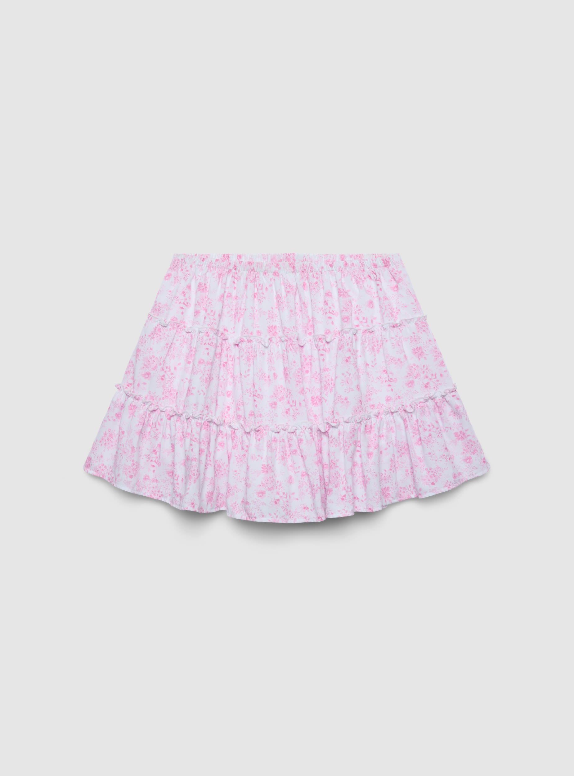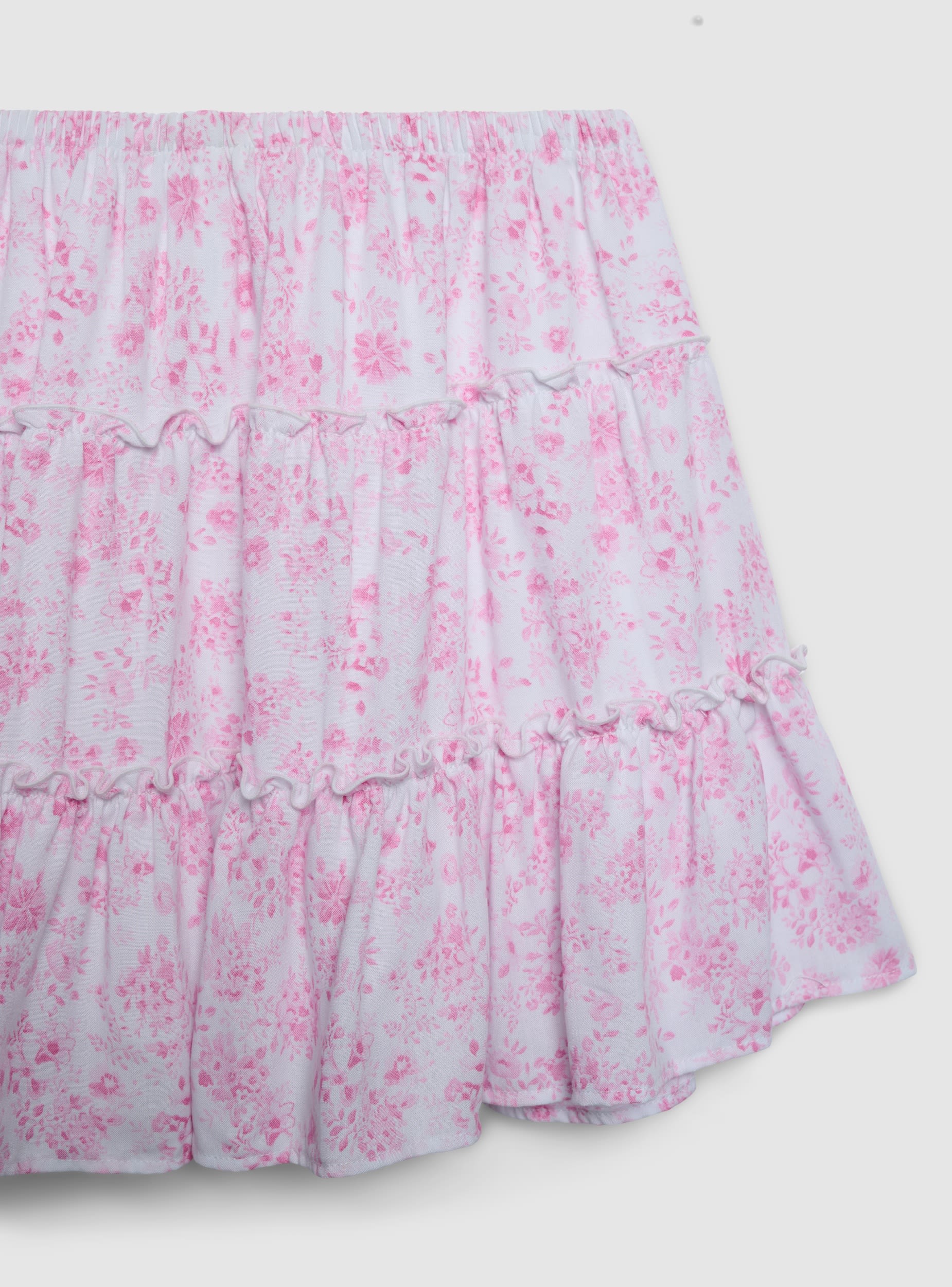 Gonna da donna mini con stampa floreale, pensata per look freschi e femminili. La vita con elastico assicura comfort e una vestibilità pratica, mentre la costruzione a balze con piccoli volant dona movimento. Ideale con maglietta e sneakers per il giorno o con top e sandali per la sera, senza chiusura e senza tasche.Dettagli