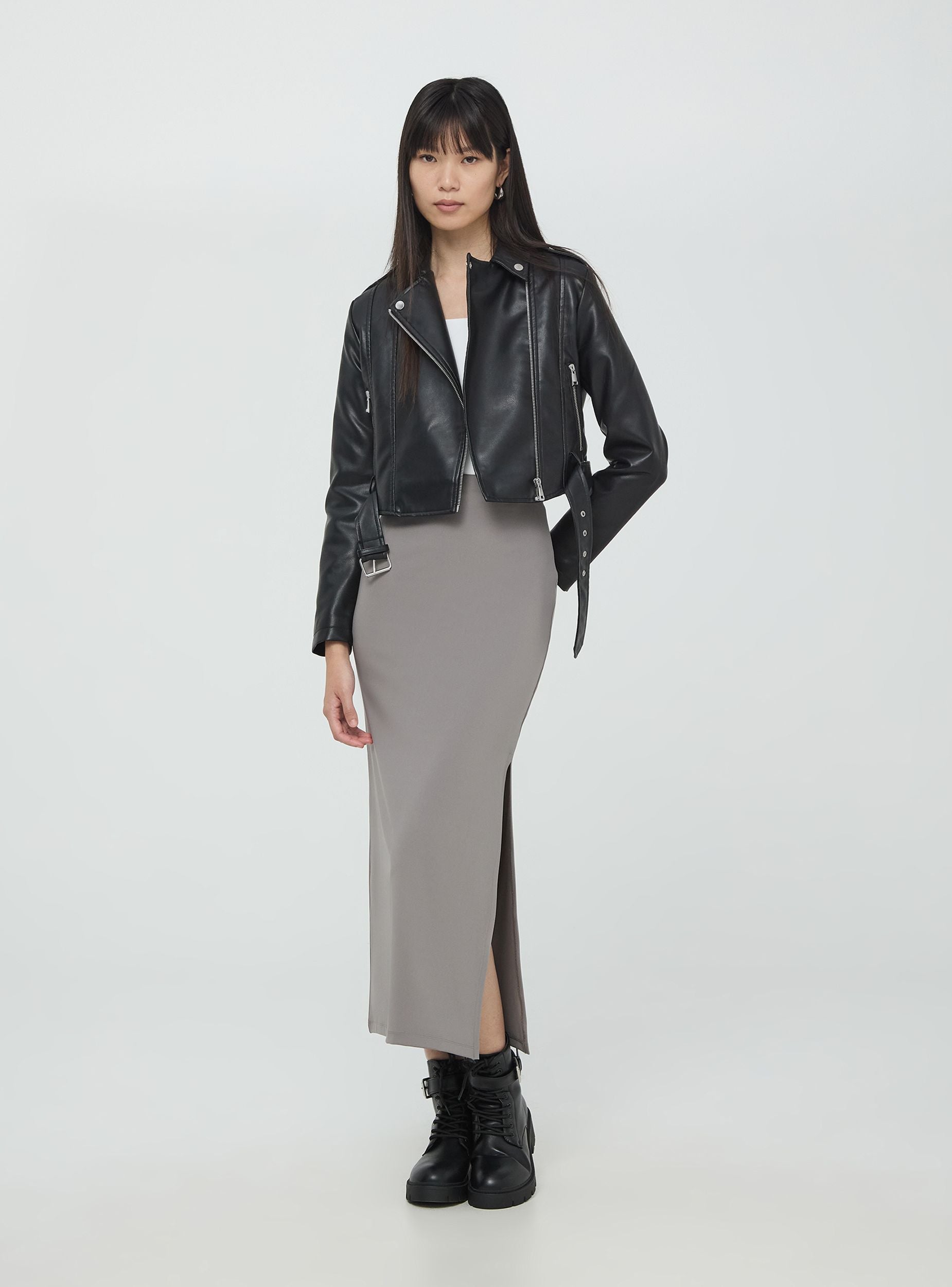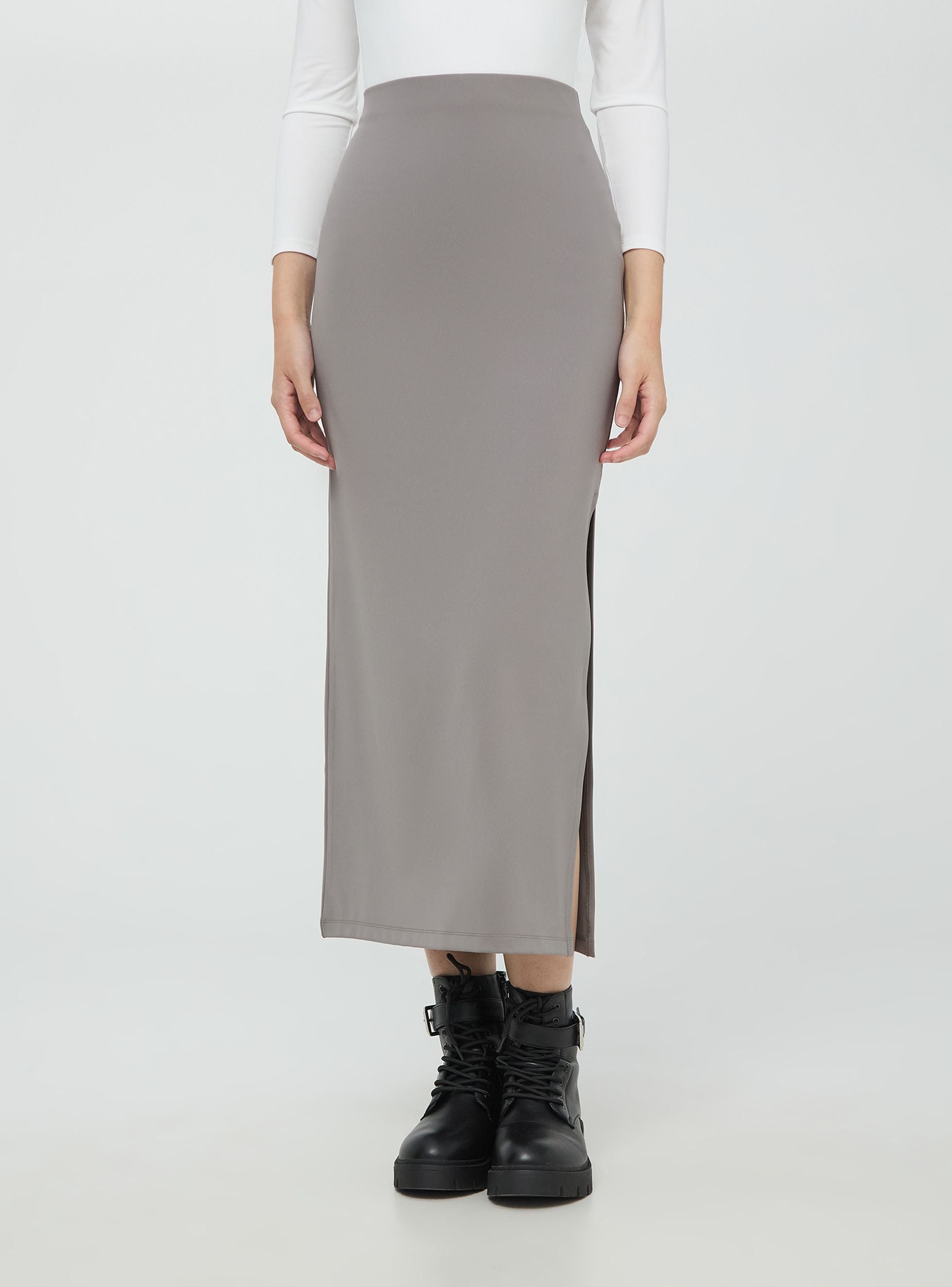 Gonna lunga da donna con spacco laterale, realizzata in tessuto elasticizzato che garantisce comfort e libertà di movimento. La linea aderente esalta la silhouette femminile, mentre la lunghezza offre un tocco di eleganza e versatilità. Perfetta per essere indossata sia in contesti casual che formali, questa gonna è ideale per un look sofisticato e contemporaneo. Un capo indispensabile per il guardaroba di ogni donna.Dettagli
