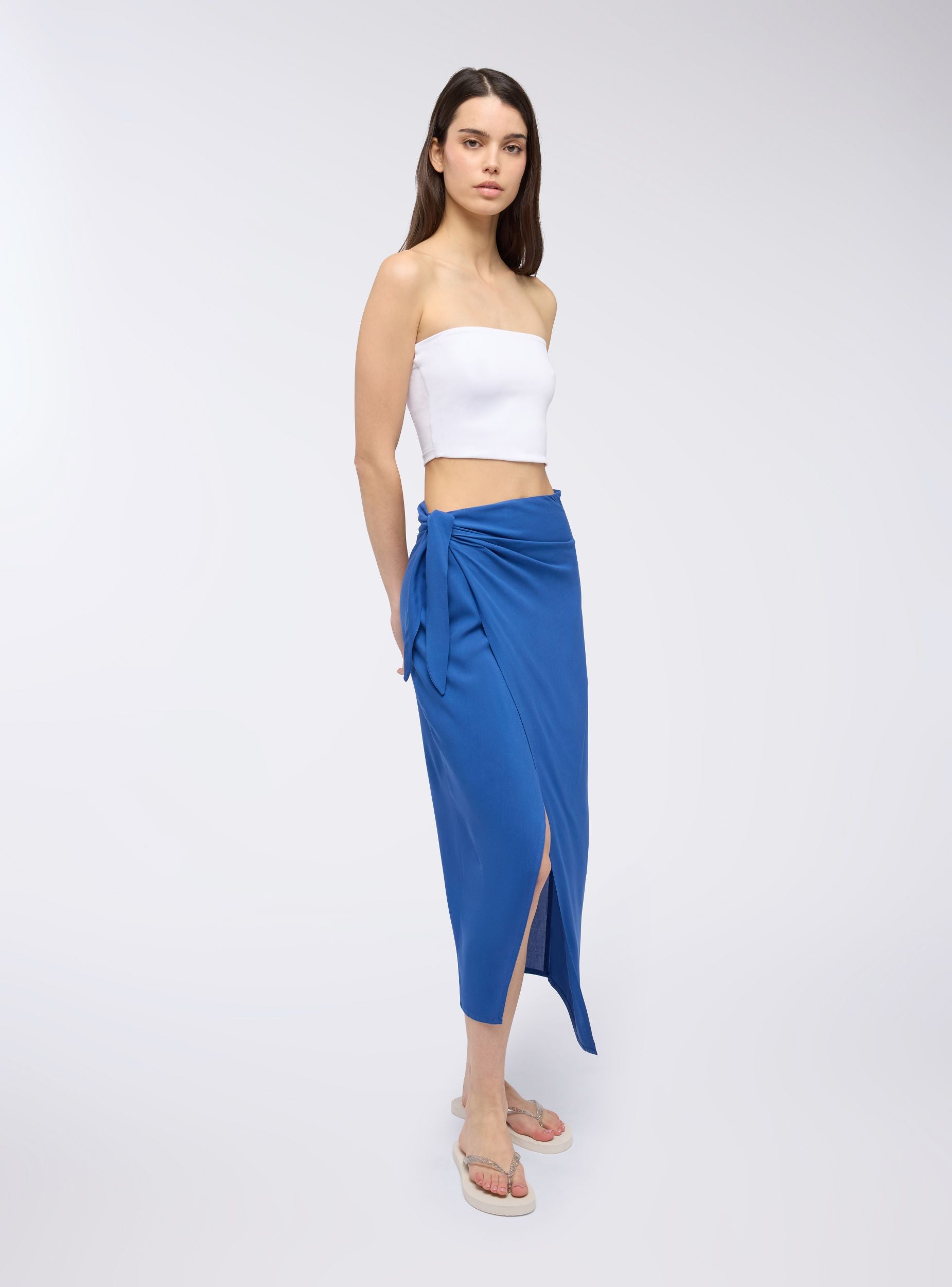 Gonna da donna ideale per un look estivo e rilassato, modello simil pareo, è perfetta per il tempo libero o per una giornata al mare. Caratterizzata da una vestibilità regolare, presenta un design avvolgente con nodo laterale e lunghezza lunga. Una scelta versatile per chi cerca comfort e stile in ogni occasione.Dettagli