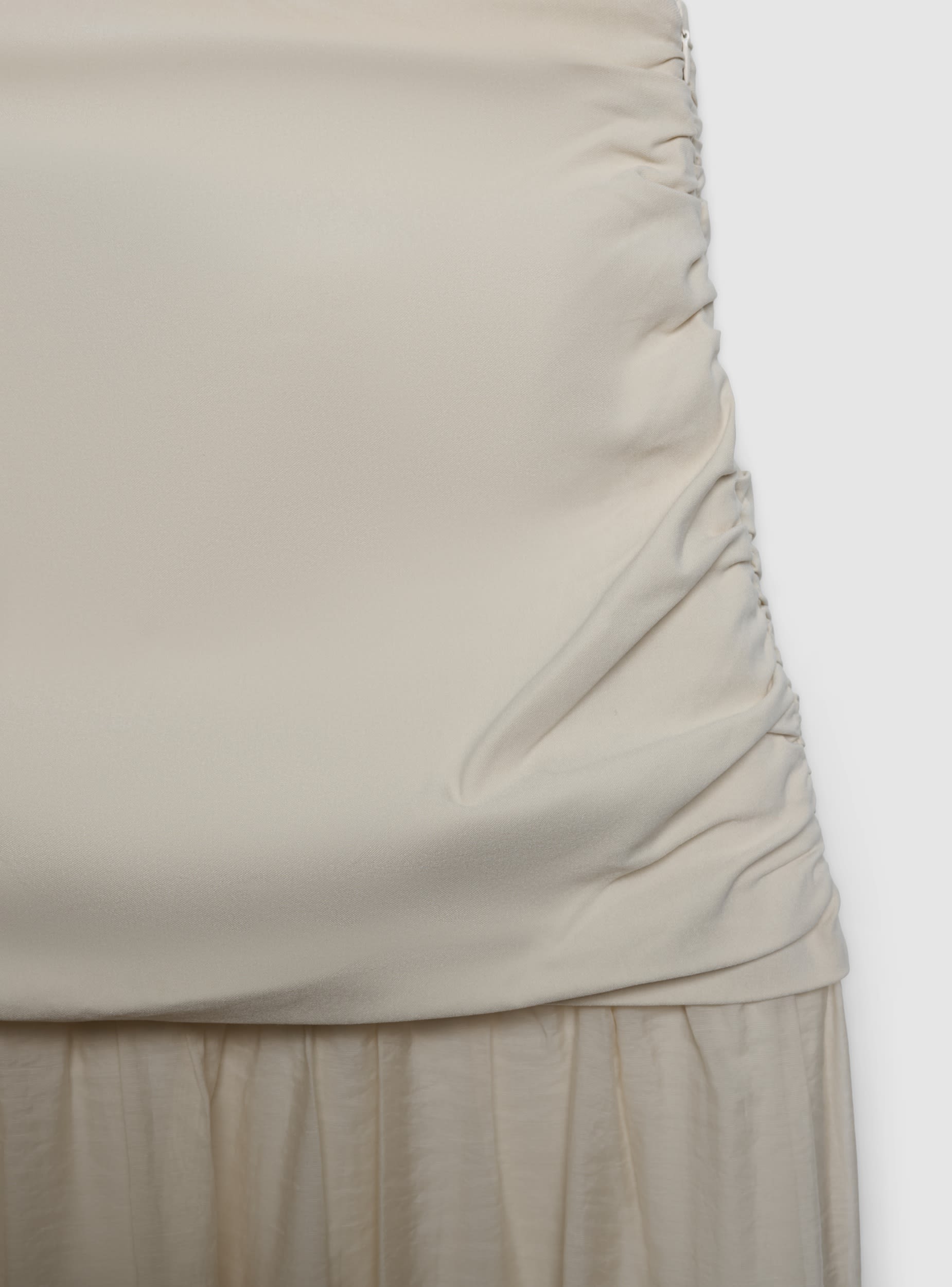 Gonna da donna a tinta unita con lunghezza midi, pensata per look quotidiani e occasioni informali. Modello con ampia fascia in vita arricciata che valorizza la silhouette e fondo morbido con leggera arricciatura. Vestibilità regular e design fluido, facile da abbinare a top aderenti o camicie infilate in vita. Indossabile con sandali o sneakers per uno stile versatile e femminileDettagli