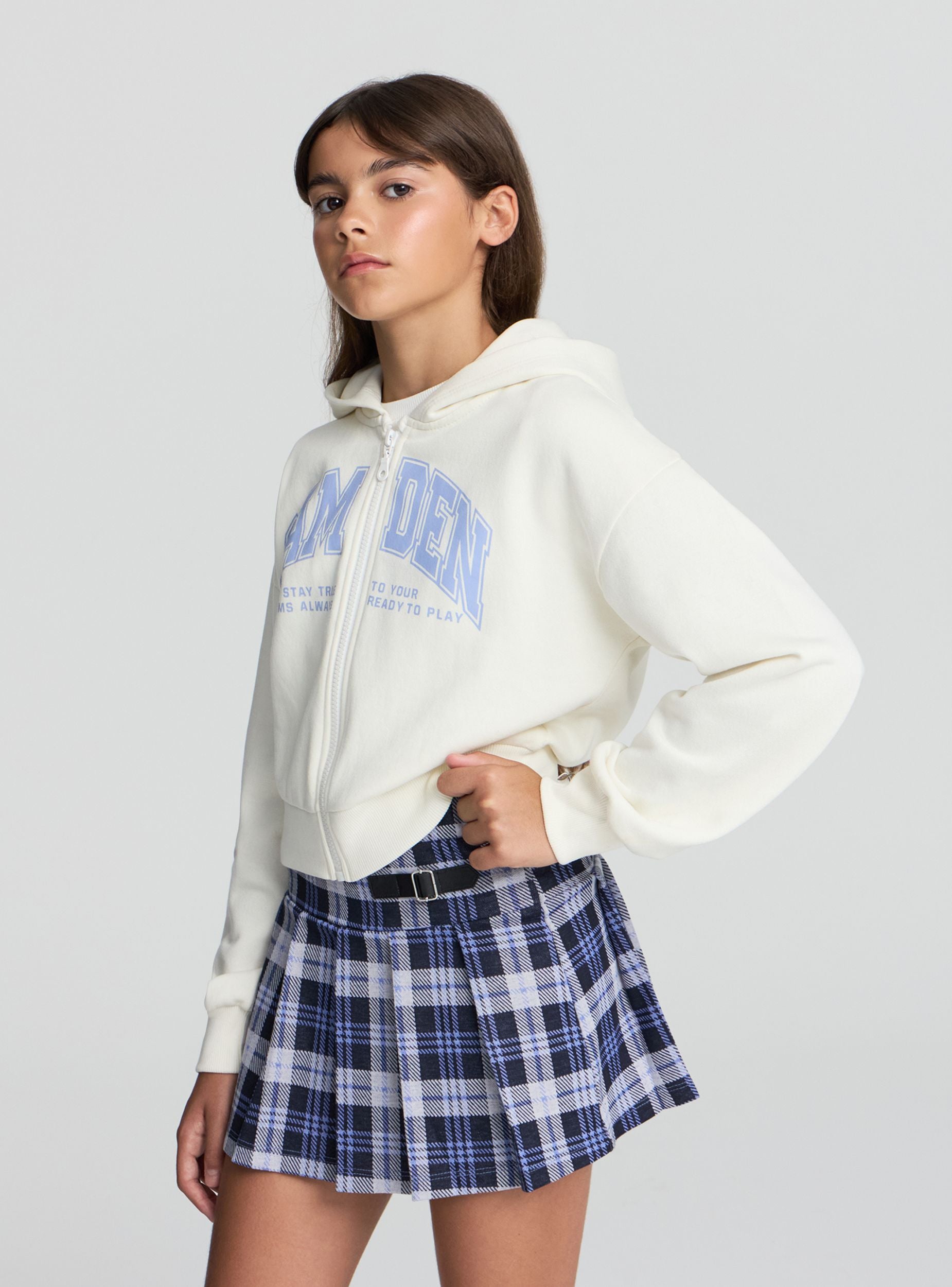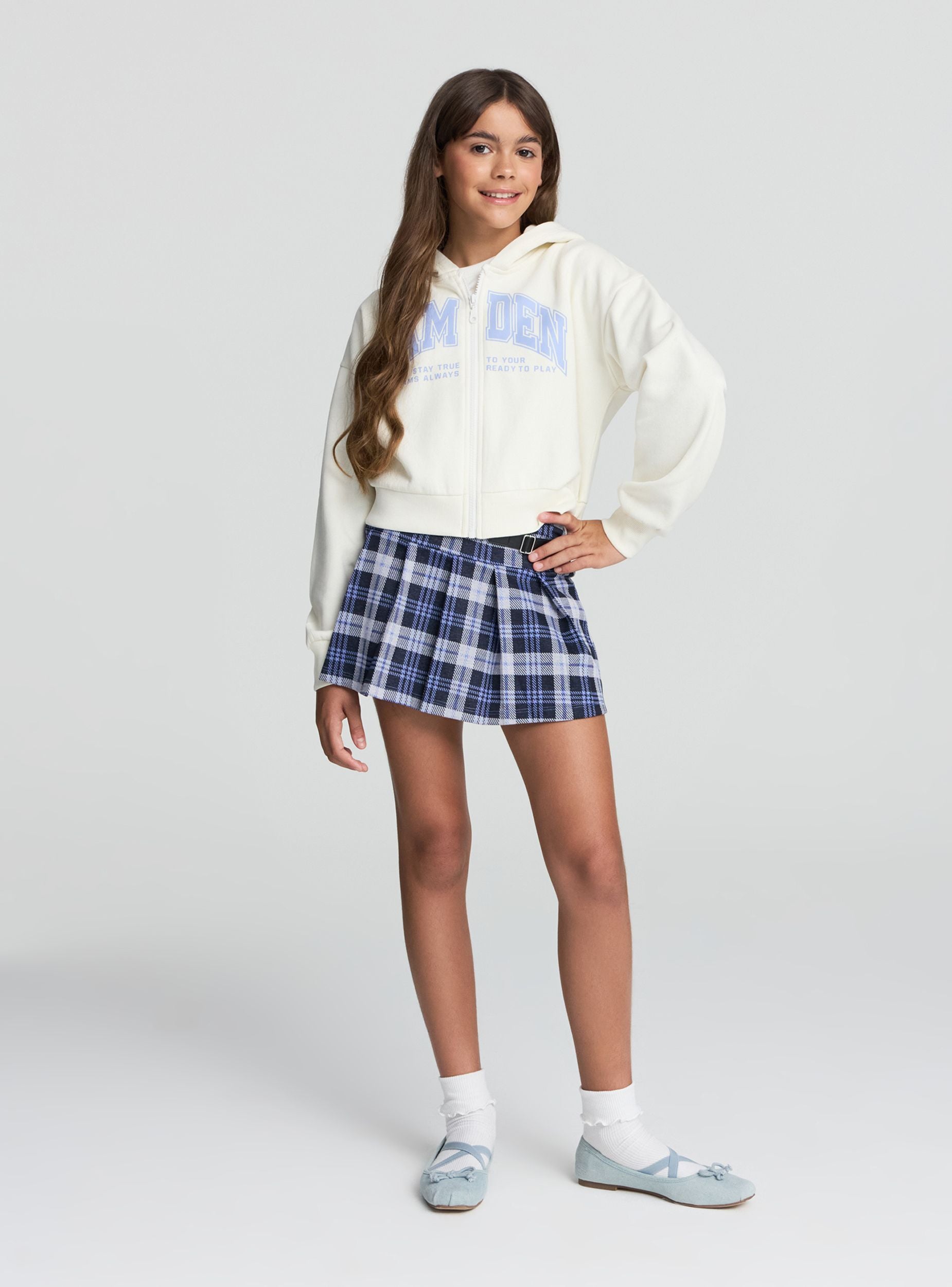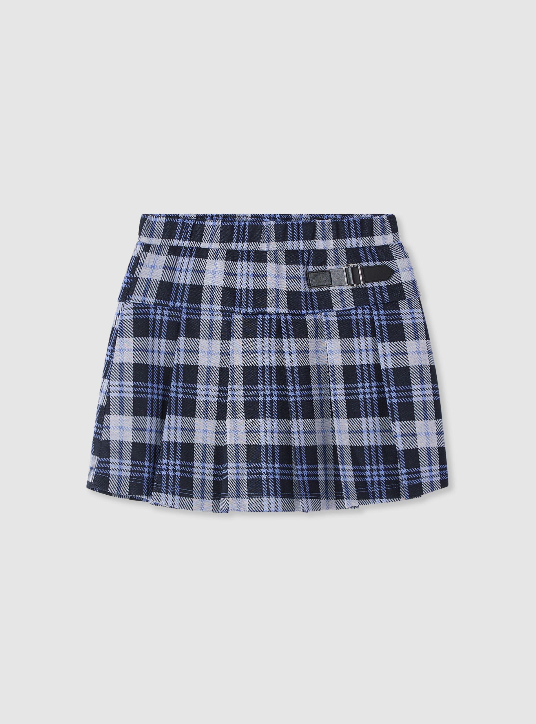 Gonna da bambina con design a pieghe e fantasia a quadri. Dotata di una fibbia decorativa sul lato, questa gonna offre un look casual e versatile. Perfetta per abbinamenti con magliette o camicie per un outfit comodo e alla moda. Ideale per diverse occasioni, garantisce una vestibilità confortevole e uno stile unico.Dettagli
