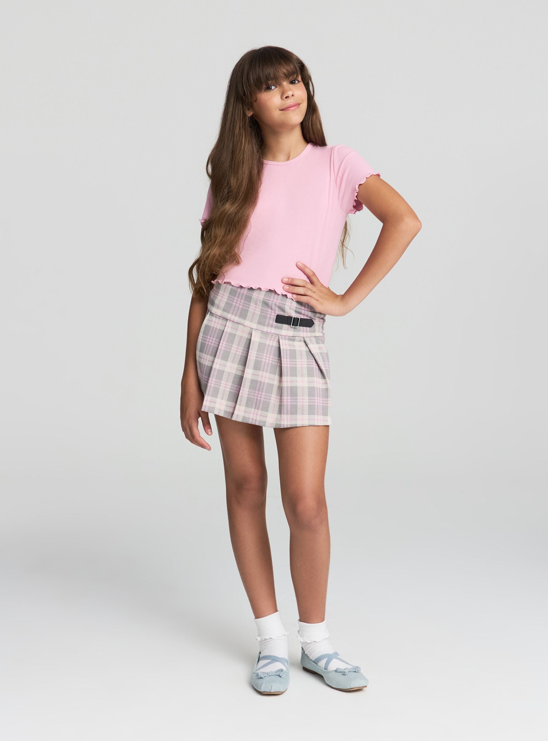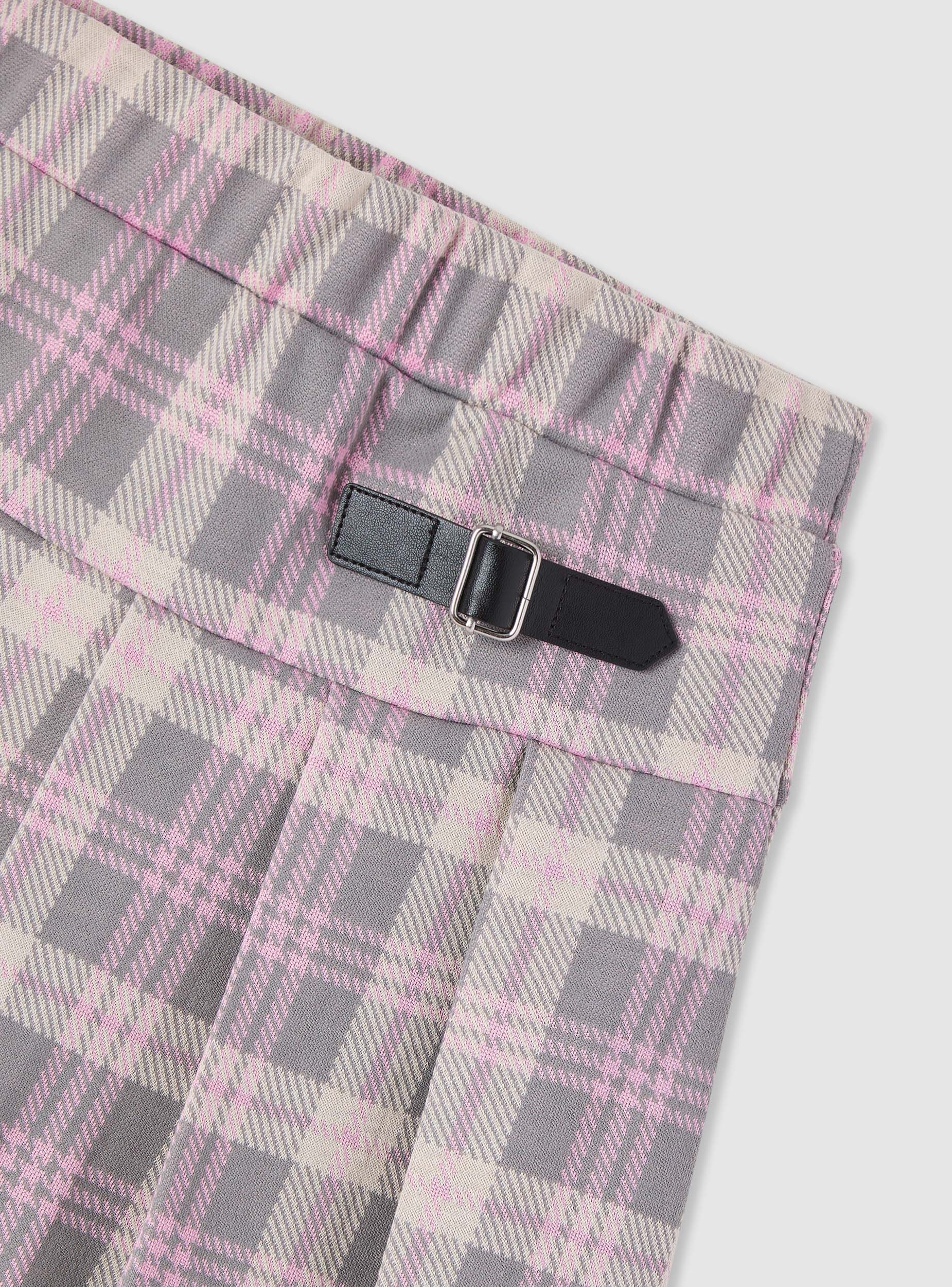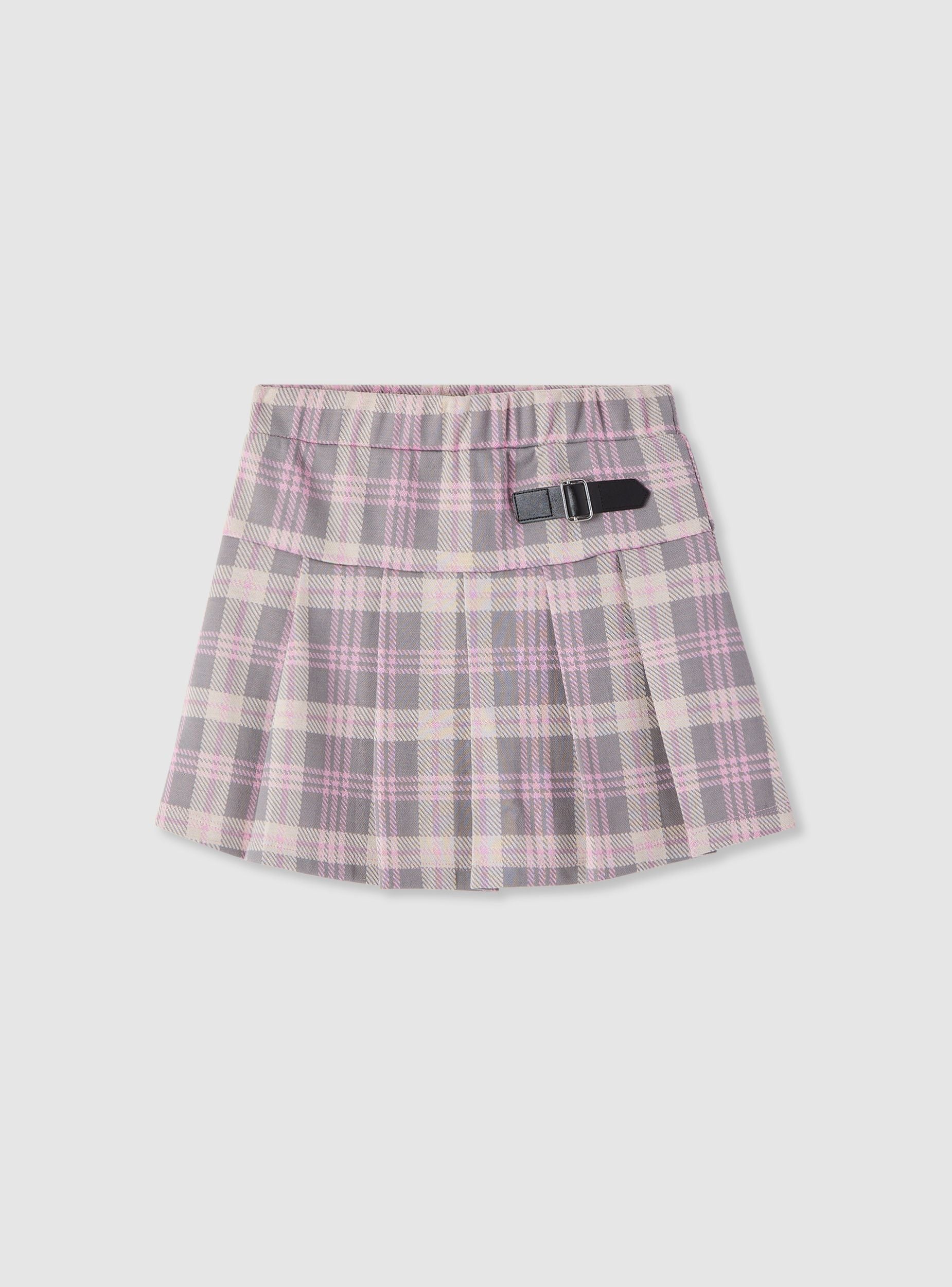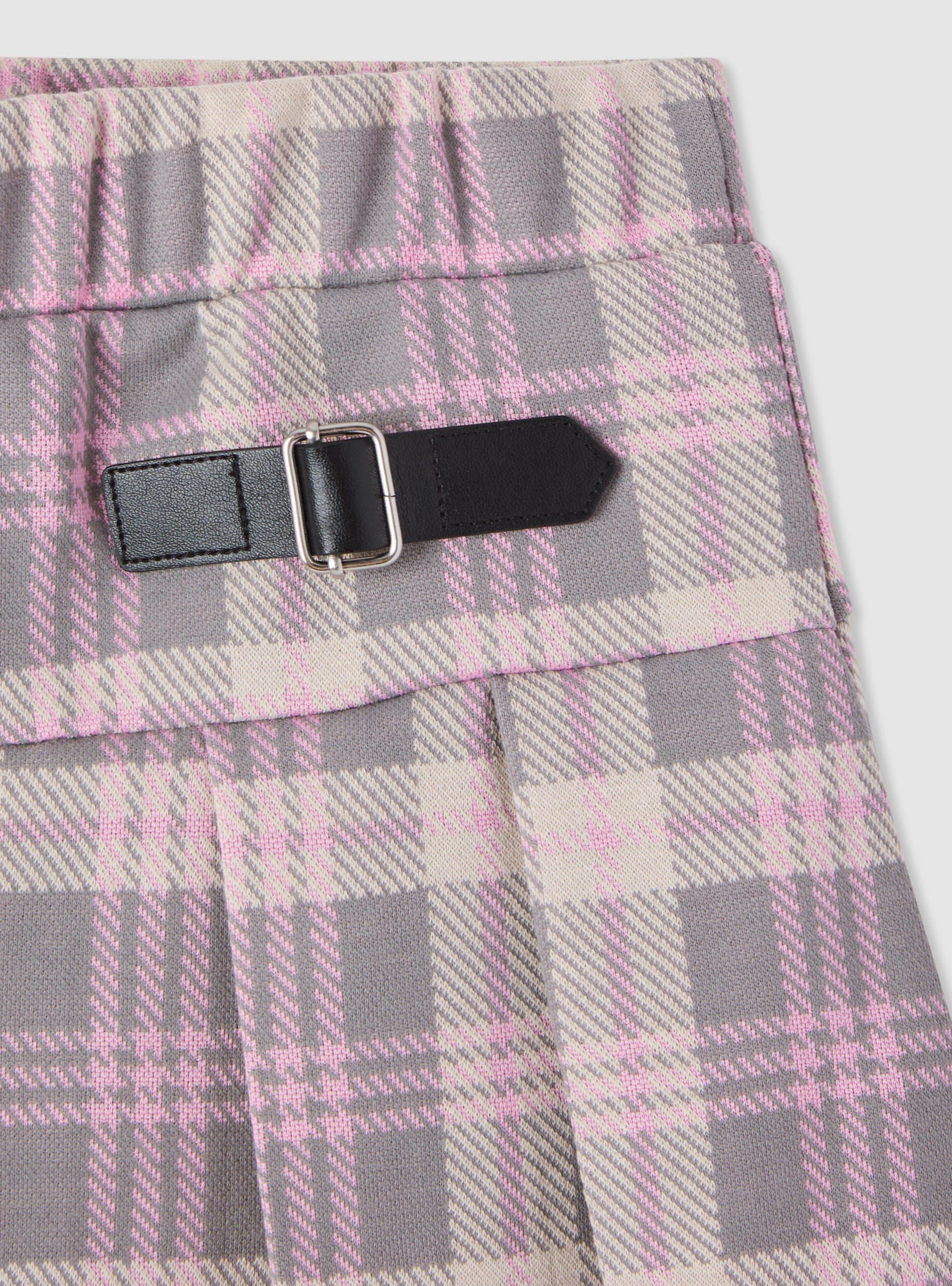 Gonna da bambina con design a pieghe e fantasia a quadri. Dotata di una fibbia decorativa sul lato, questa gonna offre un look casual e versatile. Perfetta per abbinamenti con magliette o camicie per un outfit comodo e alla moda. Ideale per diverse occasioni, garantisce una vestibilità confortevole e uno stile unico.Dettagli