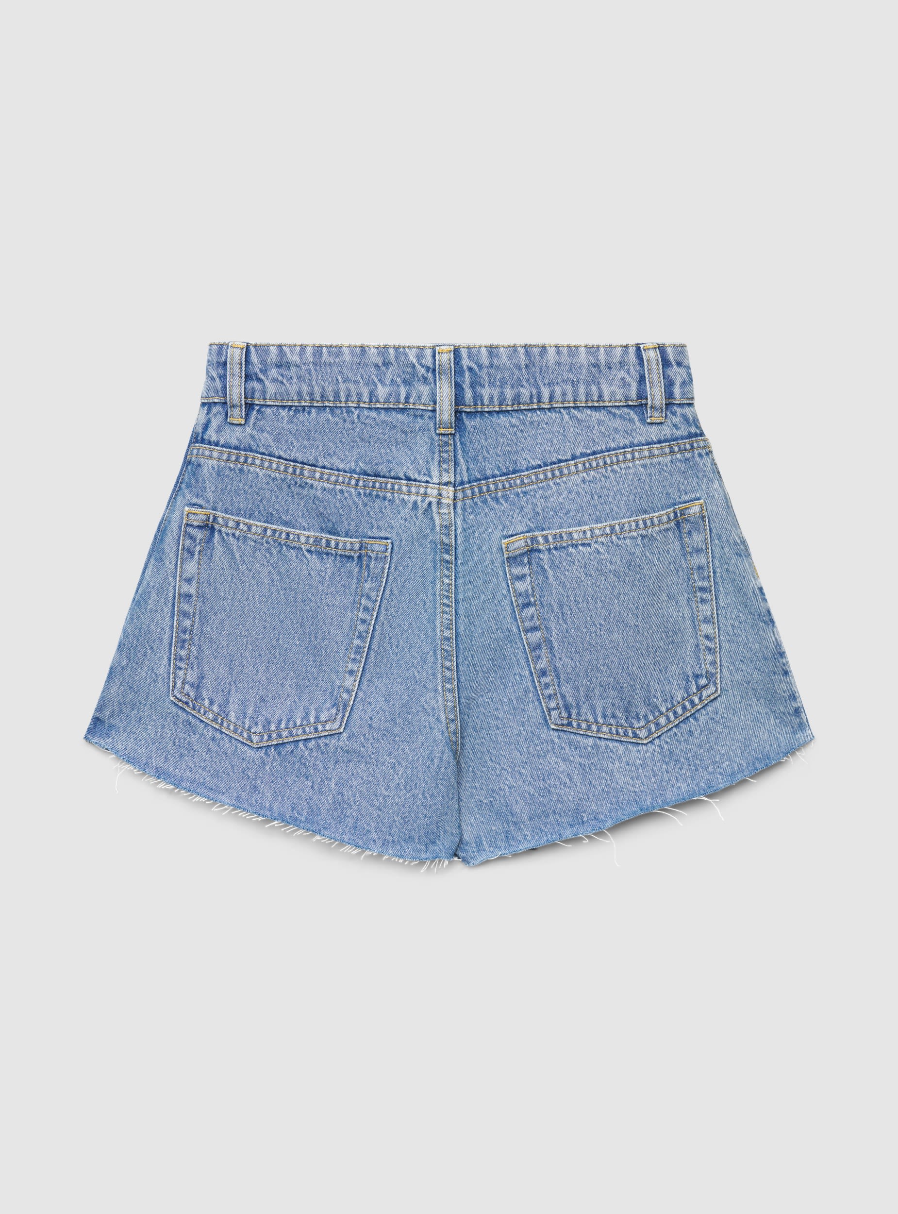 Pantaloncini-gonna da donna in denim, ideale per look casual e urban. Modello mini con orlo a vivo e design asimmetrico sul davanti, chiusura con bottone e passanti per cintura. Cinque tasche e vestibilità regular pensata per valorizzare la silhouette. Perfetto con maglietta grafica e sneakers per il tempo libero, o con camicia e sandali per uscite serali. Fantasia tinta unita.Dettagli