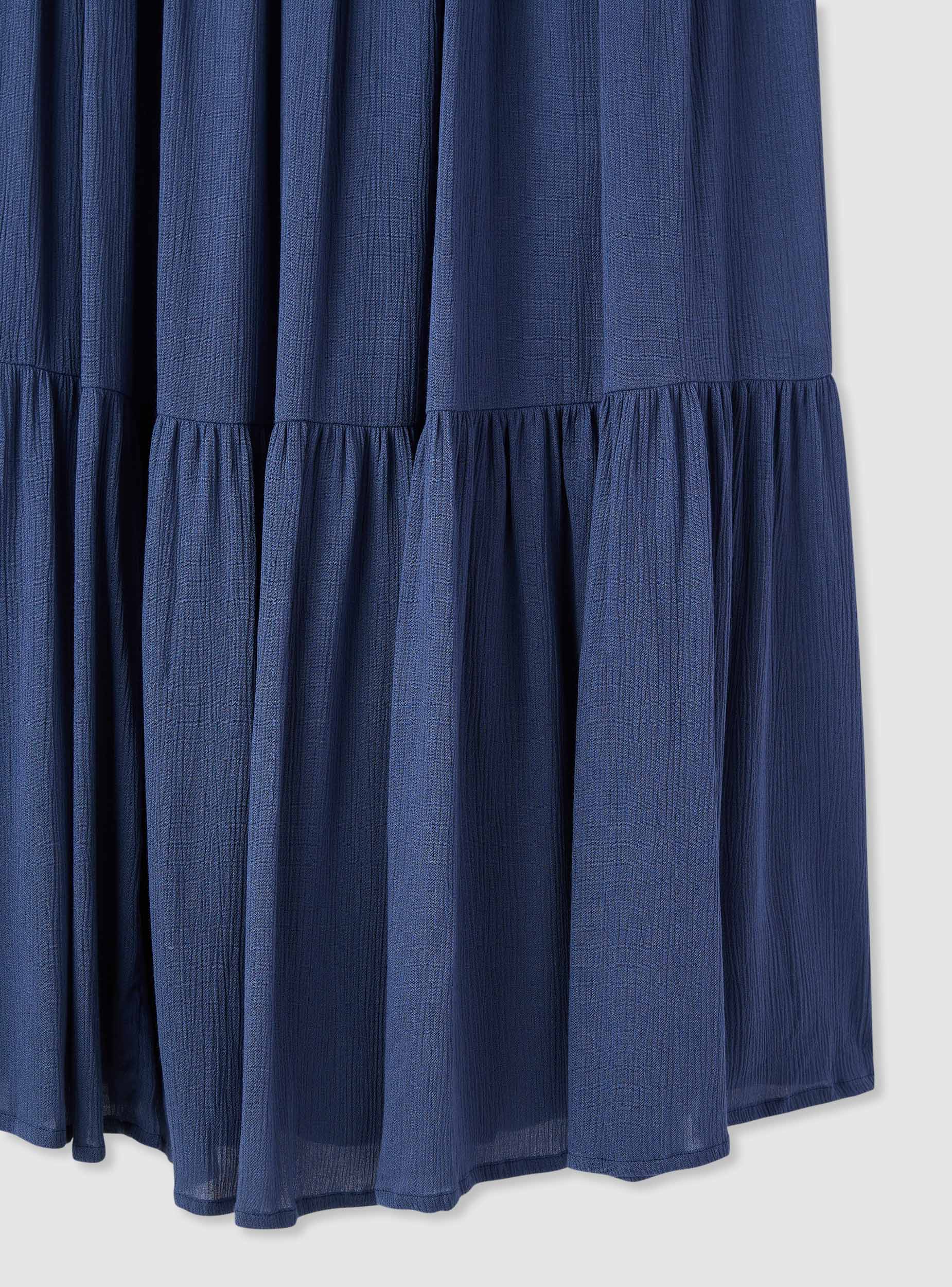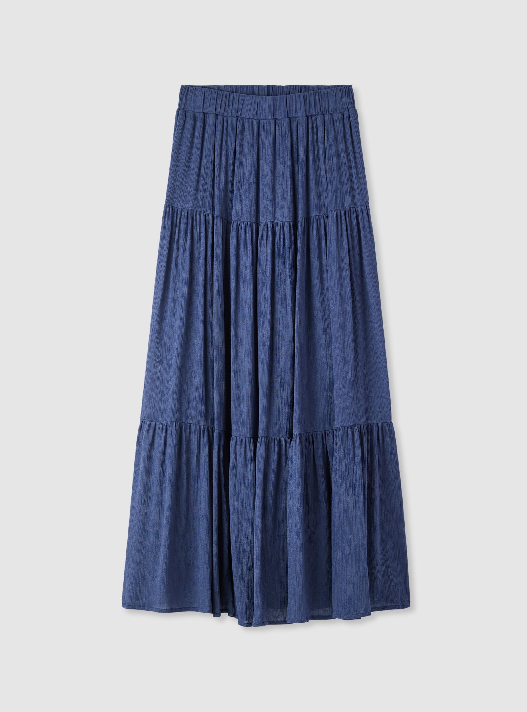 Gonna da donna lunga a tinta unita, dal design a balze che crea movimento fluido. Vita con elastico per una vestibilità confortevole e facile da indossare. Linea svasata e leggera, ideale per il tempo libero o per uscite serali con camicie, top o magliette infilate in vita.Dettagli