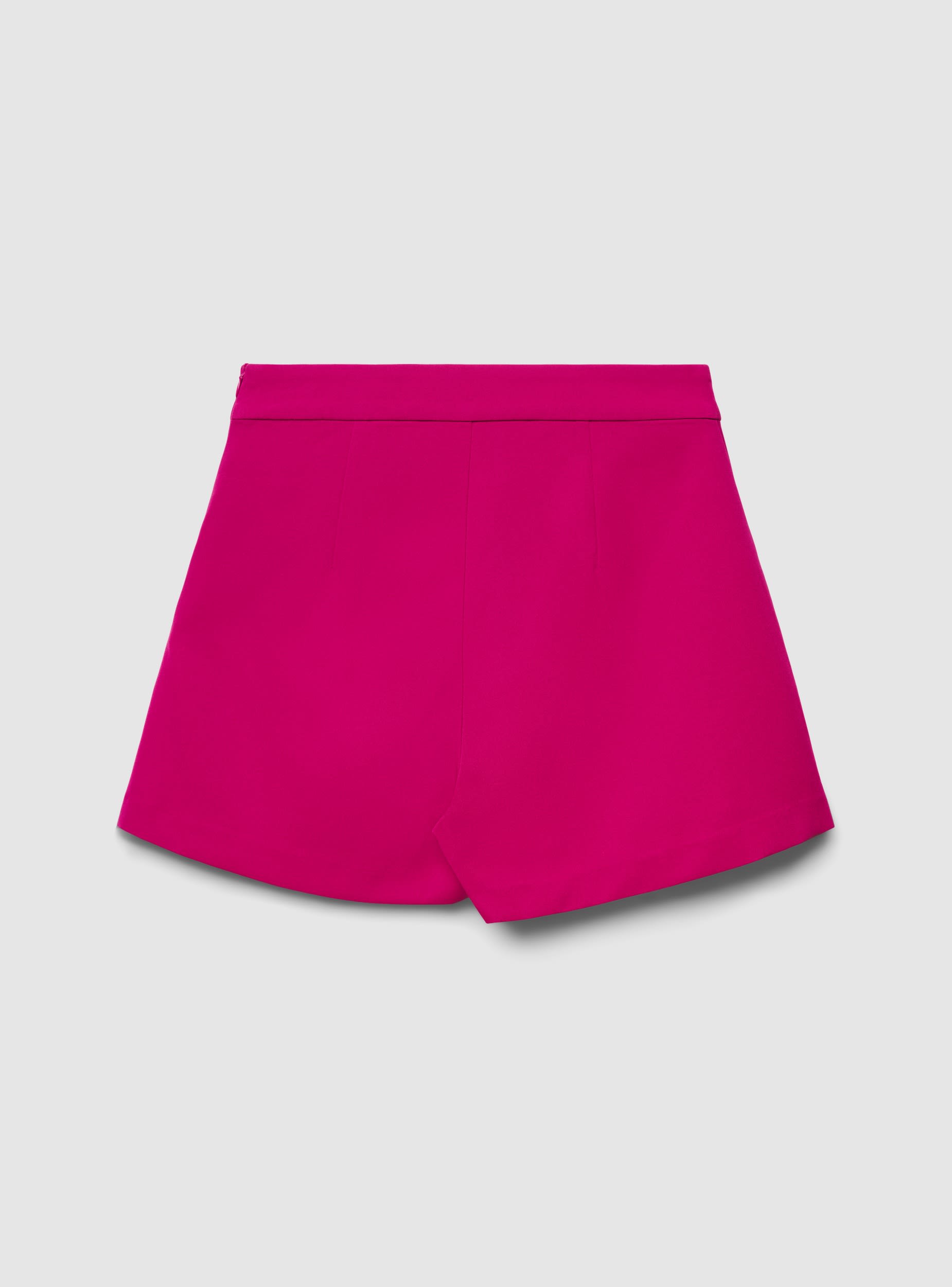 Gonna-pantalone da donna in tinta unita con pannello frontale asimmetrico che crea l’effetto gonna. Vita media e lunghezza mini, perfetti per look urbani e serate estive. Chiusura laterale con zip invisibile. Indossali con una camicia morbida e sandali o con top aderente e blazer per un outfit curato.Dettagli