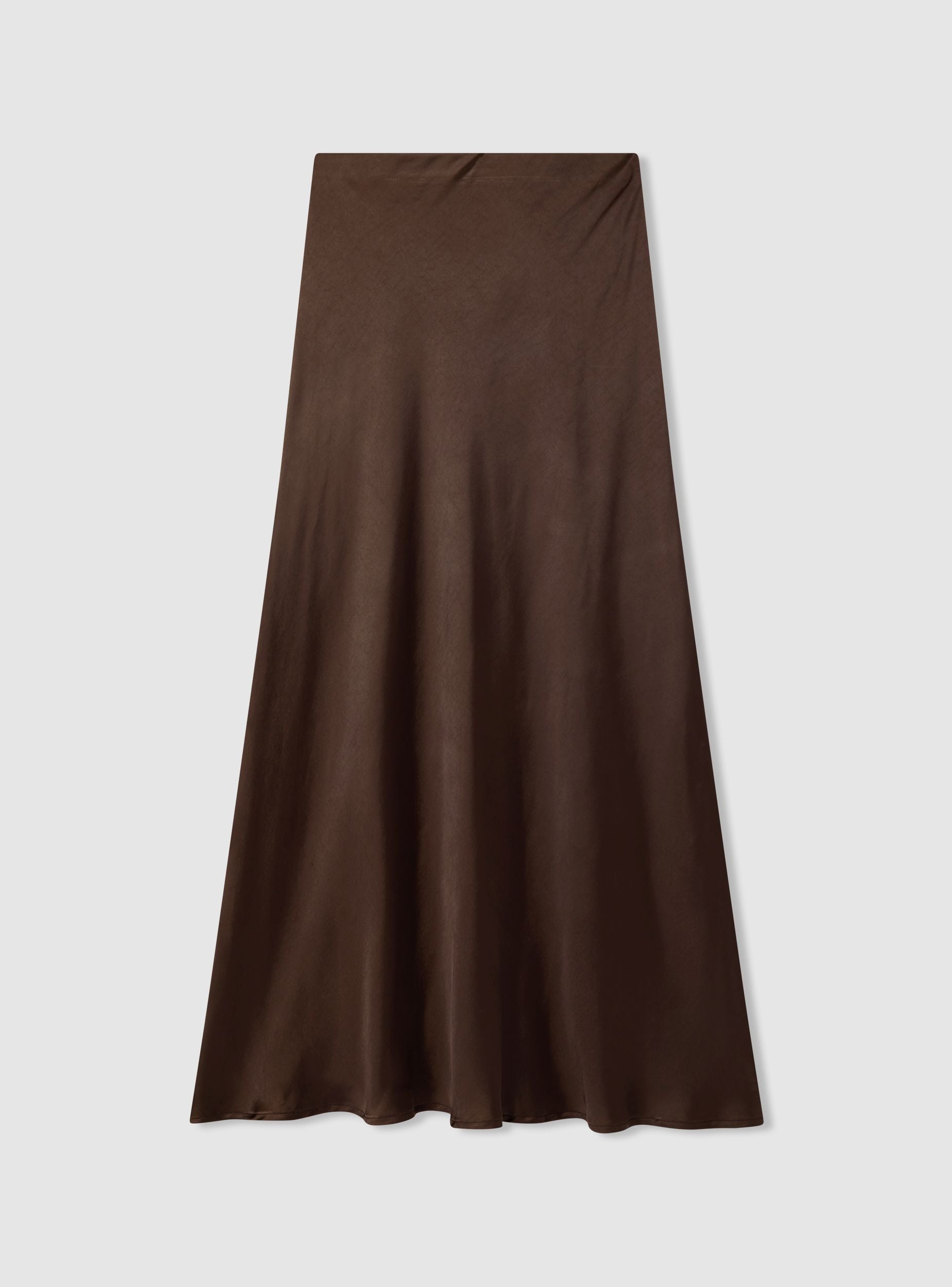 Gonna da donna lunga a tinta unita con linea svasata e vita liscia. Il tessuto effetto raso scivola morbido seguendo la figura con una vestibilità regular, ideale per look da sera o occasioni speciali con camicie e top, ma perfetta anche con maglioncini e stivaletti per il giorno. Design minimal senza tasche per un profilo pulito e femminile.Dettagli