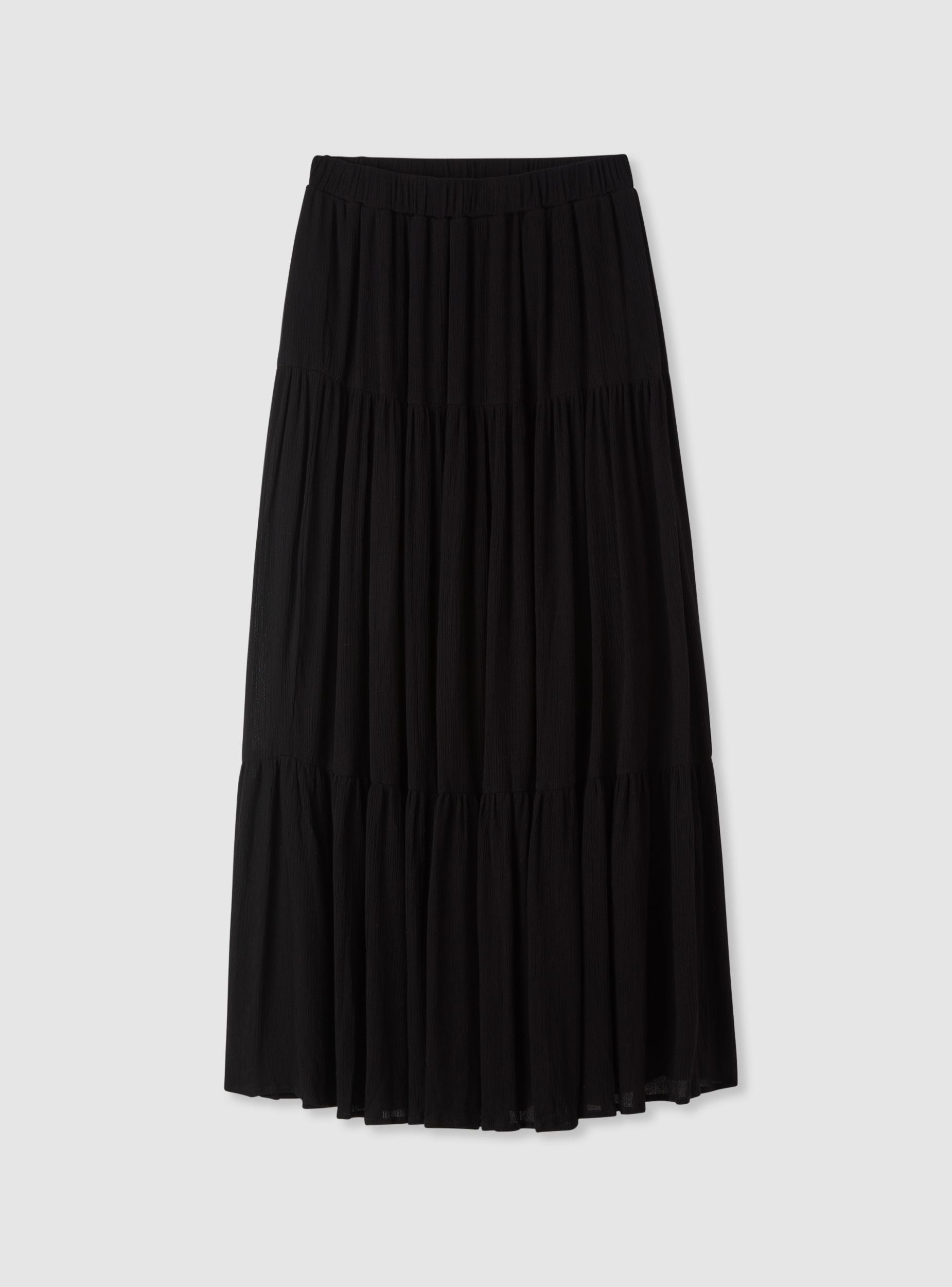 Gonna da donna lunga a tinta unita, dal design a balze che crea movimento fluido. Vita con elastico per una vestibilità confortevole e facile da indossare. Linea svasata e leggera, ideale per il tempo libero o per uscite serali con camicie, top o magliette infilate in vita.Dettagli