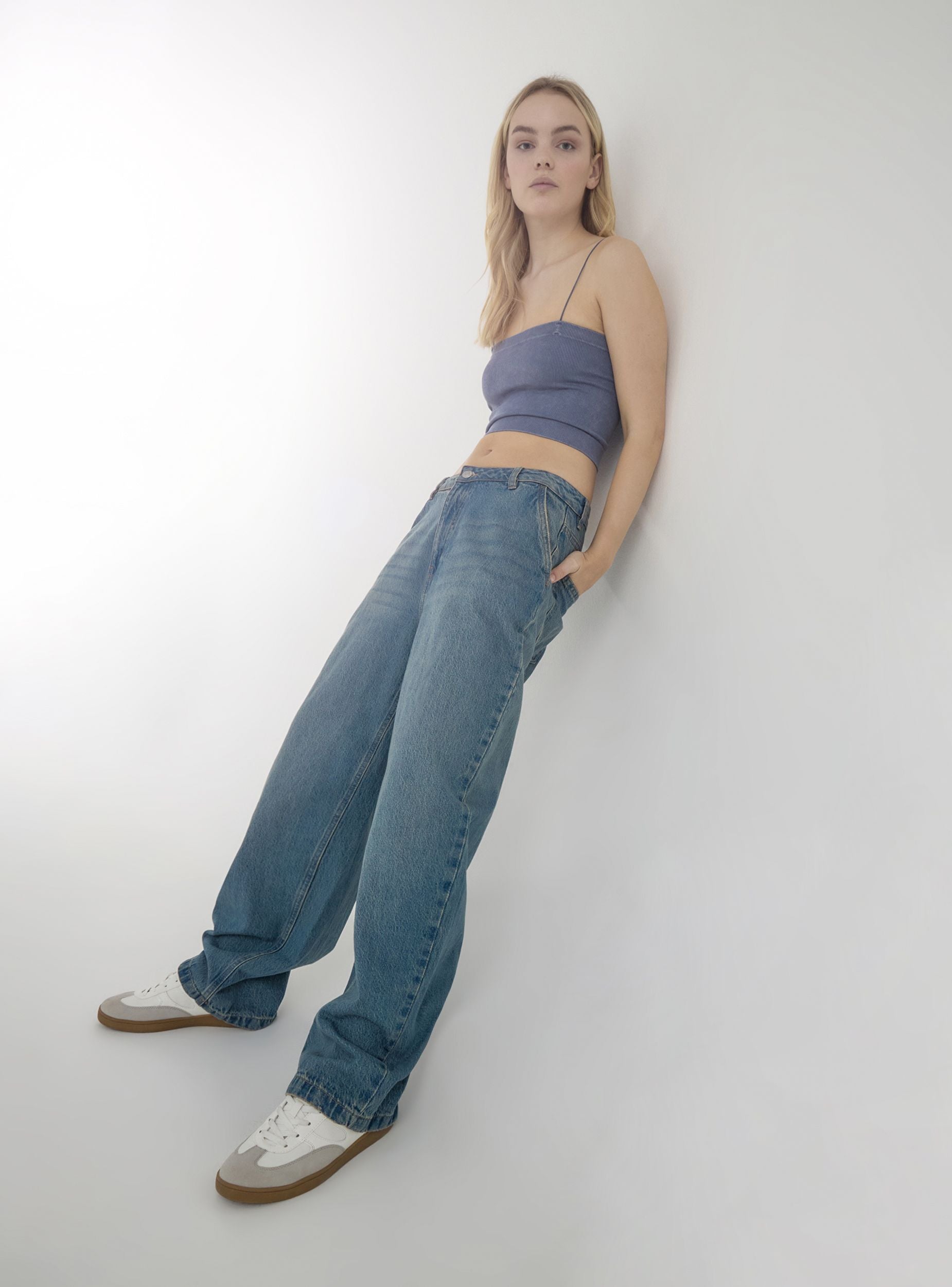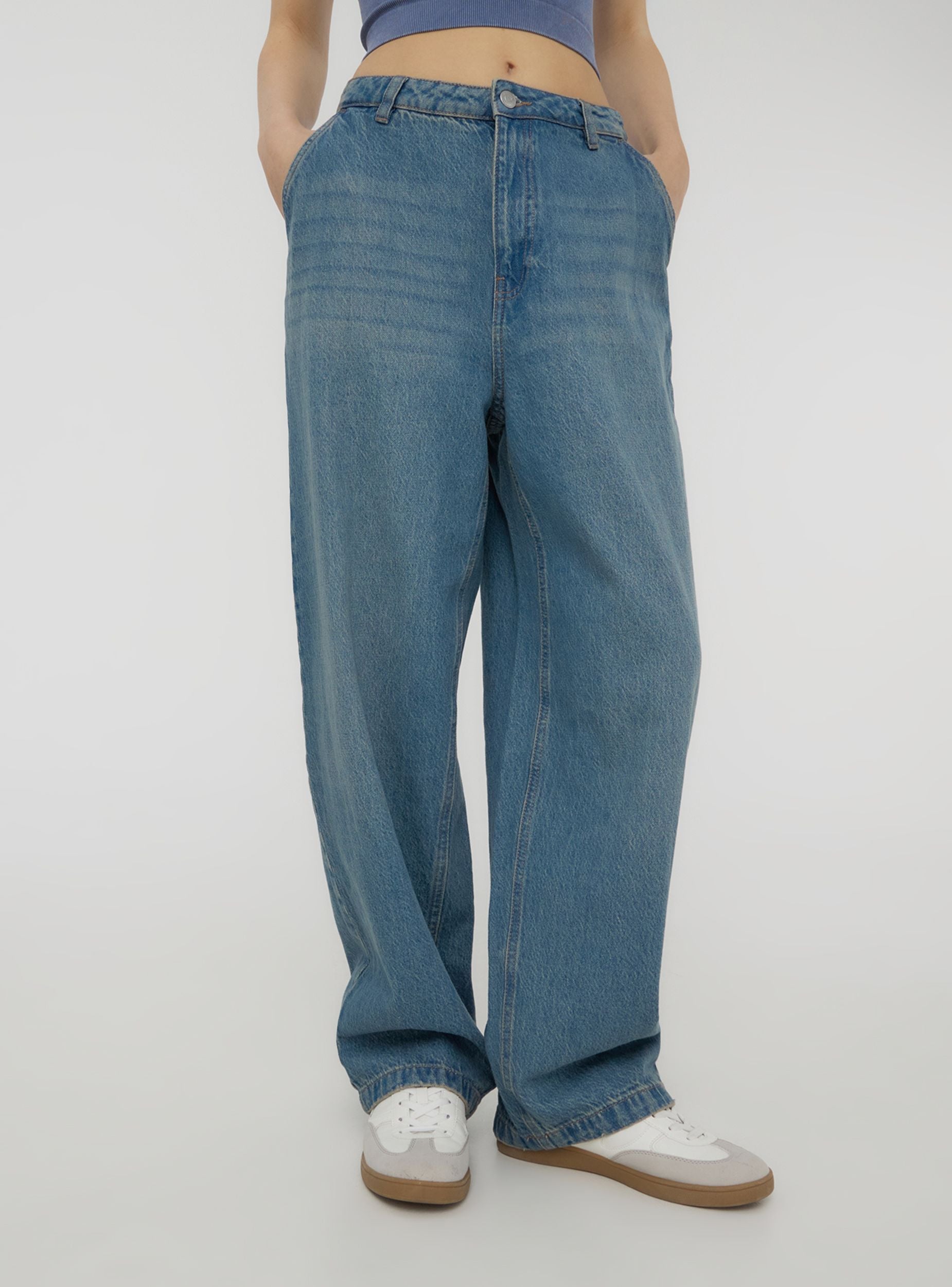 Jeans da donna dal taglio baggy, perfetti per un look rilassato e contemporaneo. Dotati di passanti in vita, tasche alla francese, chiusura con bottone e zip, si distinguono per il lavaggio denim medio che li rende versatili e alla moda. Ideali da abbinare a t-shirt oversize e sneakers per un outfit casual o a crop top e sandali per un tocco estivo e dinamico. Adatti a occasioni informali e quotidiane.Dettagli