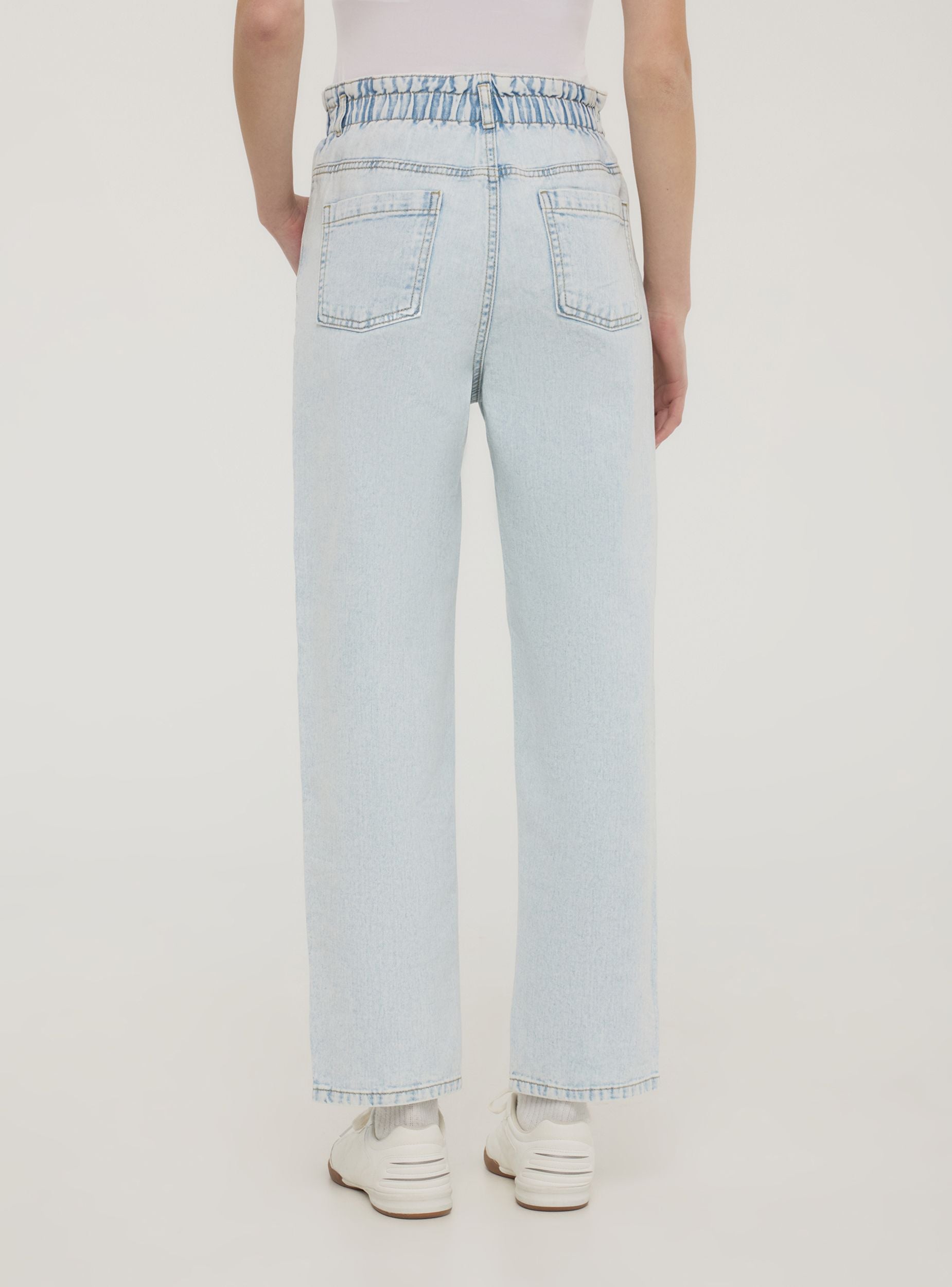 Jeans da donna paperbag, perfetti per un look fresco e alla moda. Caratterizzati da passanti in vita, chiusura con bottone e zip e cinque tasche, si distinguono per il lavaggio denim chiaro con effetto acid wash, che aggiunge un tocco originale. Ideali da abbinare a top aderenti e sandali per un outfit estivo o a maglie oversize e sneakers per un look casual e dinamico. Adatti a occasioni informali e versatili.Dettagli