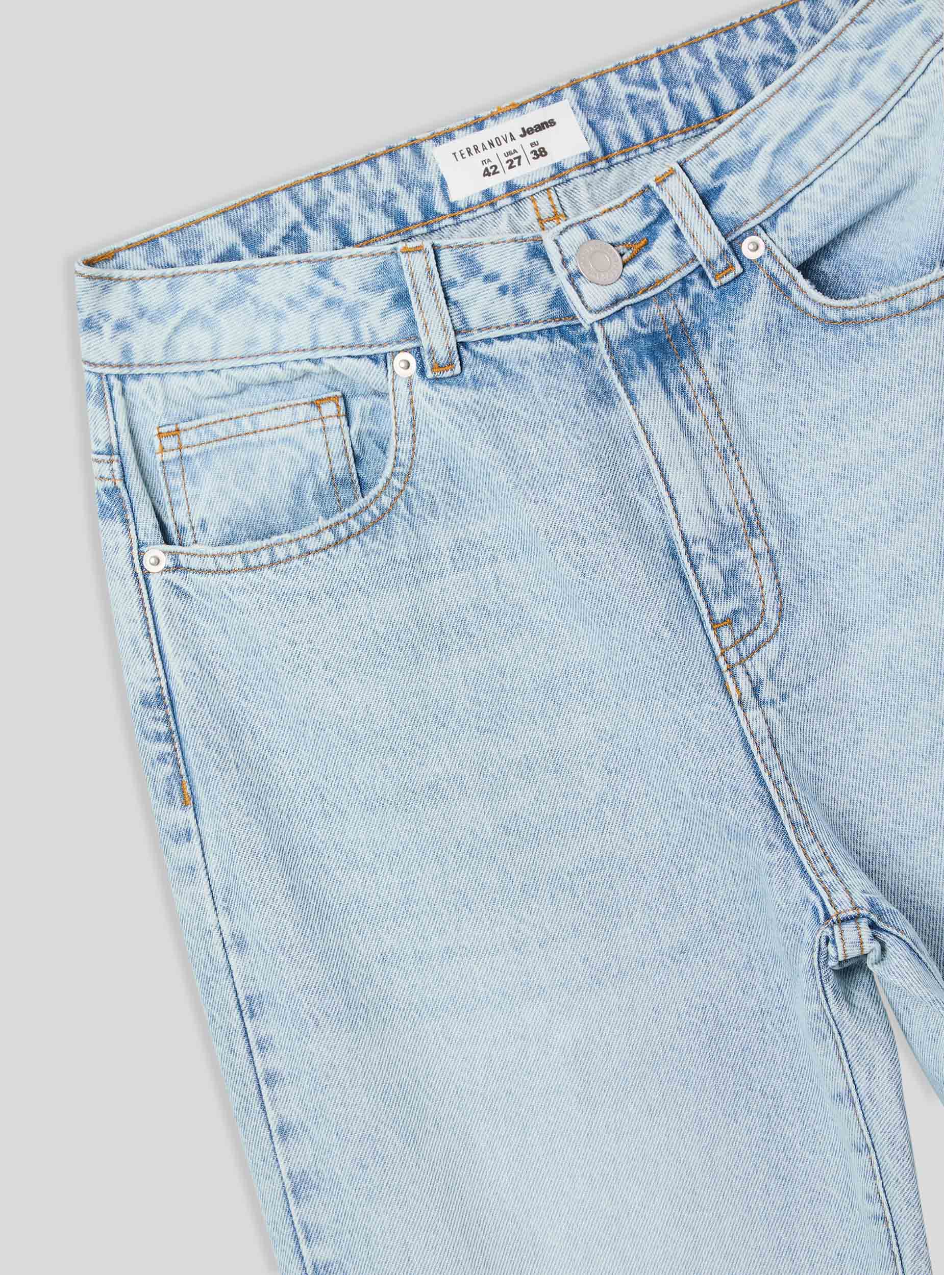 Jeans da donna ideali per un look casual e moderno, perfetti per il tempo libero o per una giornata informale. Presentano un taglio straight che valorizza la silhouette, lavaggio chiaro acid wash per uno stile alla moda, passanti in vita, cinque tasche e chiusura con bottone e zip. Combinano praticità e tendenza per ogni occasione.Dettagli