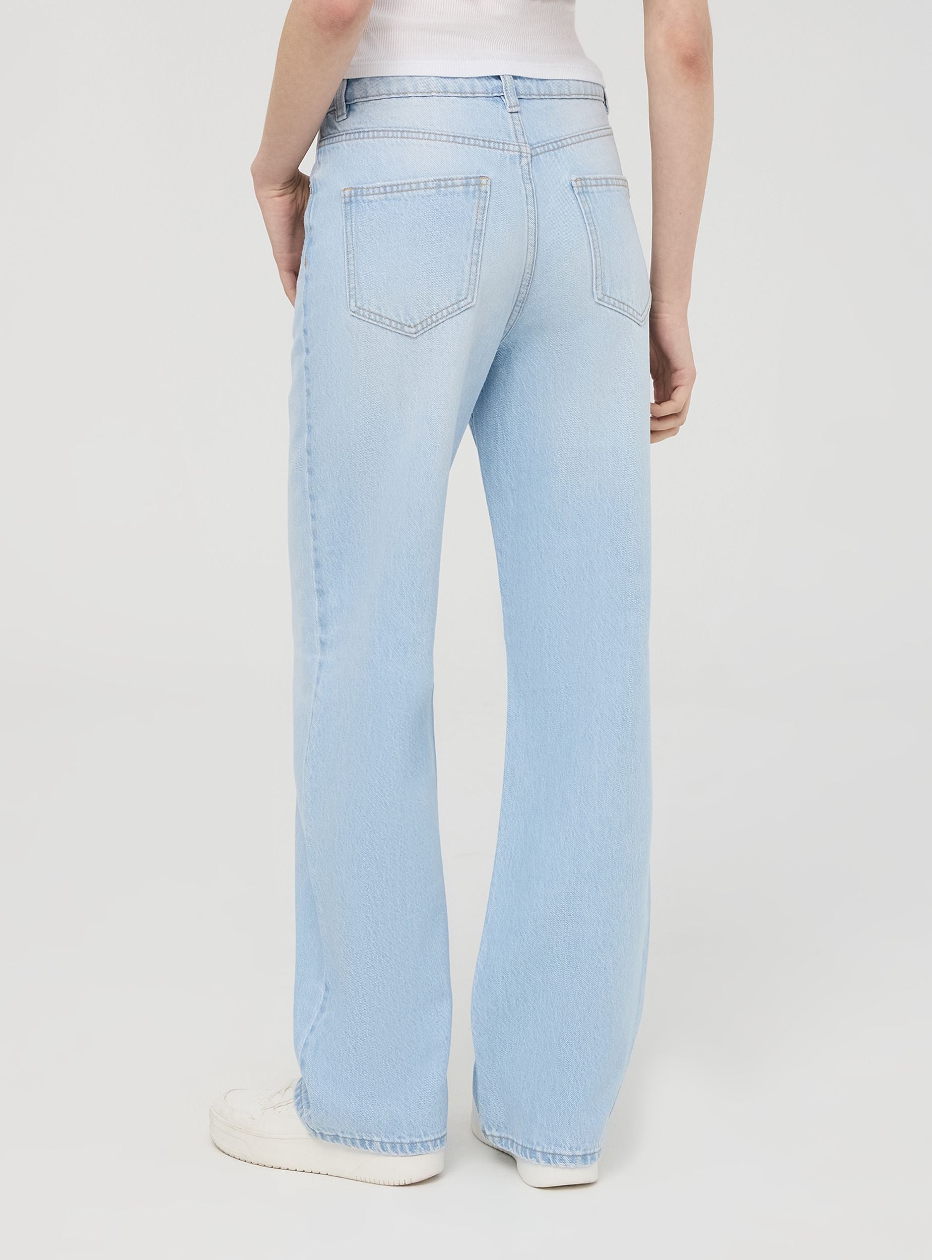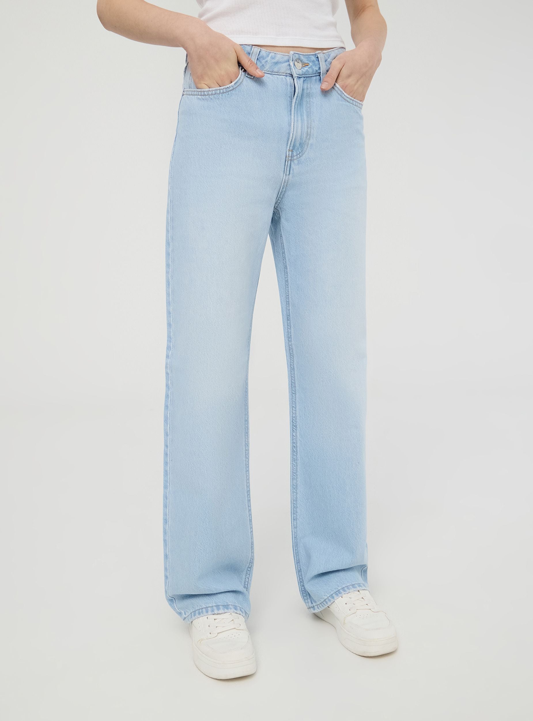 Jeans da donna perfetti per un look casual o per il tempo libero. Presentano un taglio wide leg che garantisce comodità e stile, passanti in vita per personalizzare l'outfit con una cintura, cinque tasche funzionali e una pratica chiusura con bottone e zip. Il lavaggio chiaro aggiunge un tocco fresco e moderno al design.Dettagli